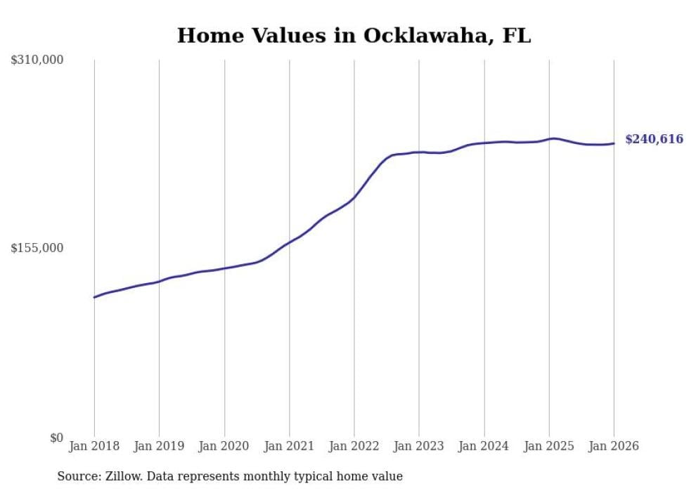 Stacker compiled a list of cities with the most expensive homes in the Ocala, FL metro area using data from Zillow. Charts show the monthly typical home value since January 2018.