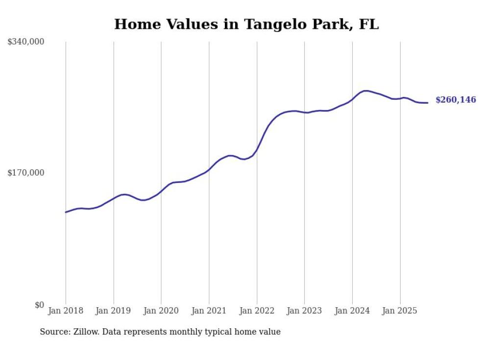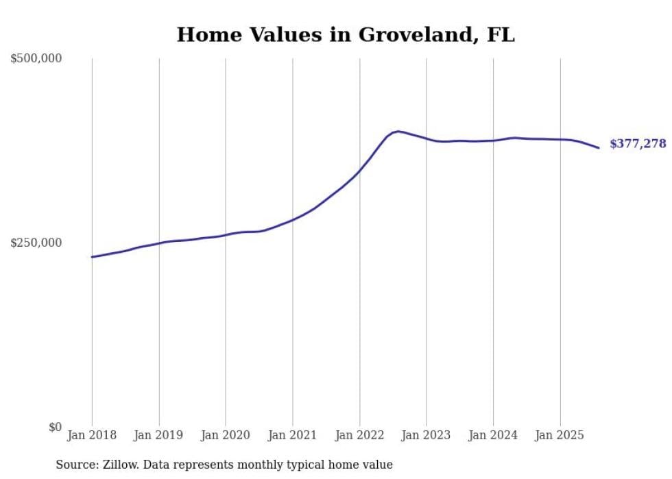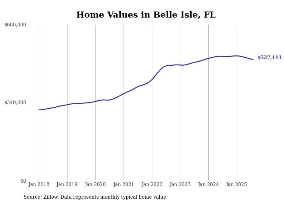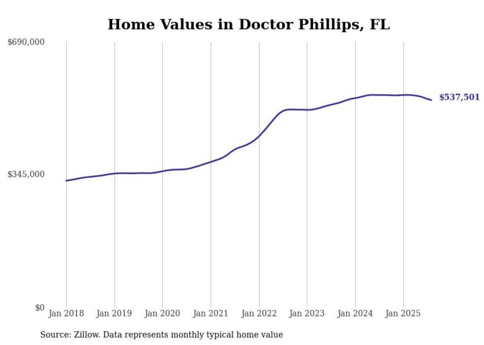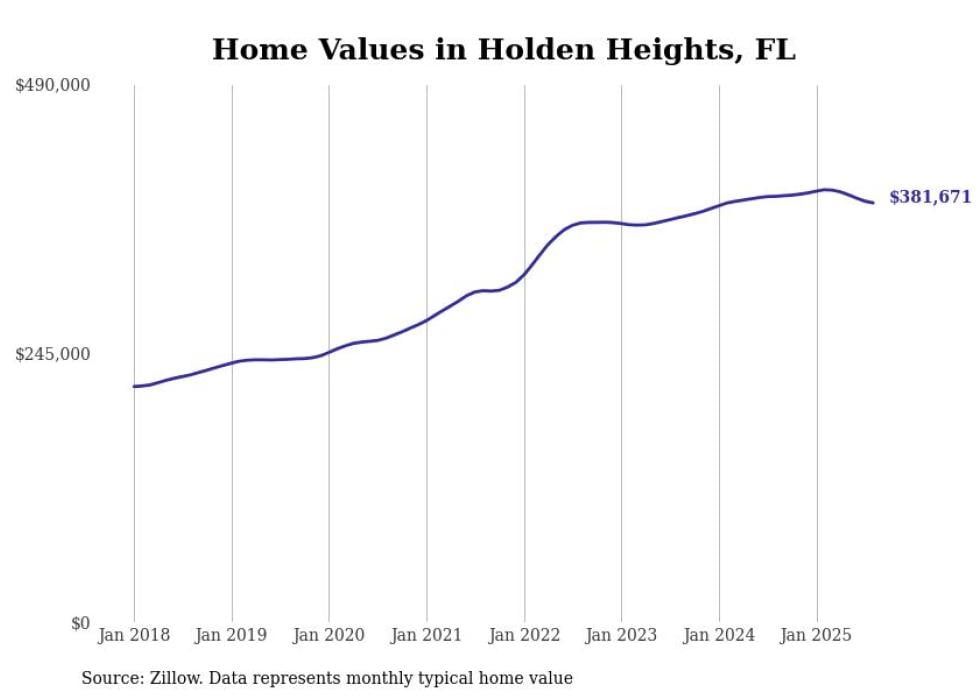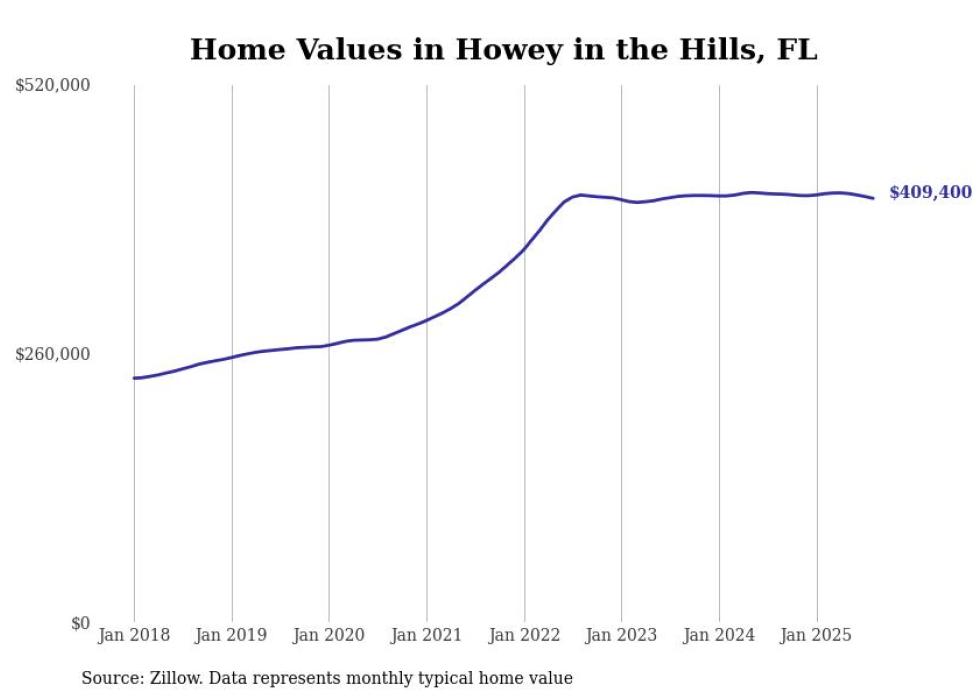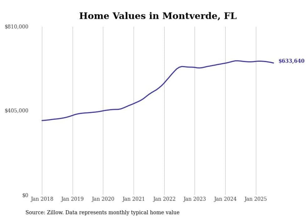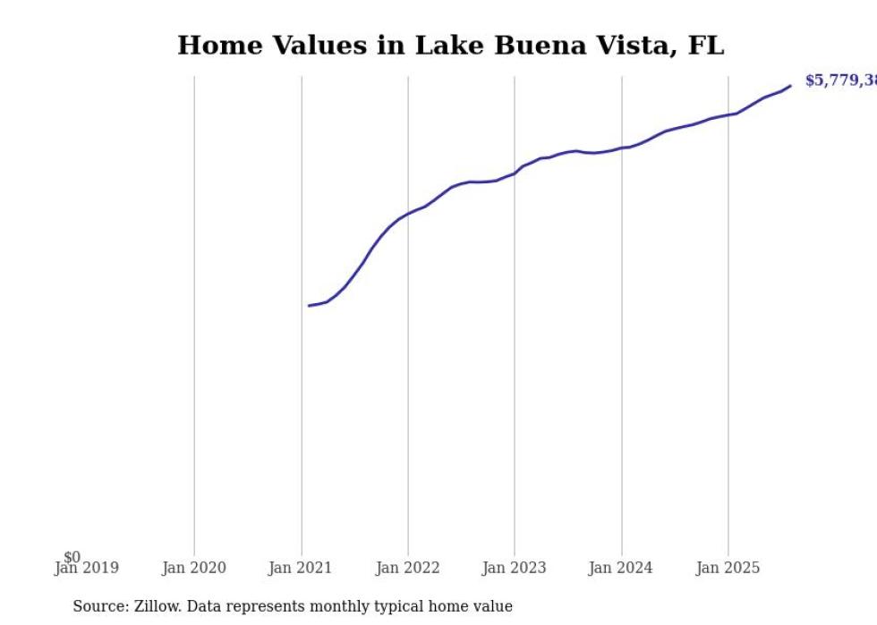Stacker compiled a list of cities with the most expensive homes in the Orlando-Kissimmee-Sanford, FL metro area using data from Zillow. Charts show the monthly typical home value since January 2018.
