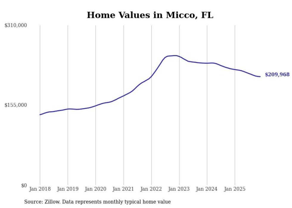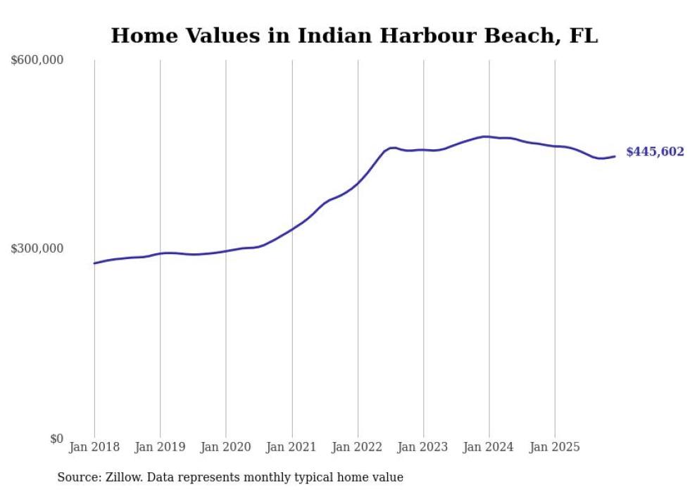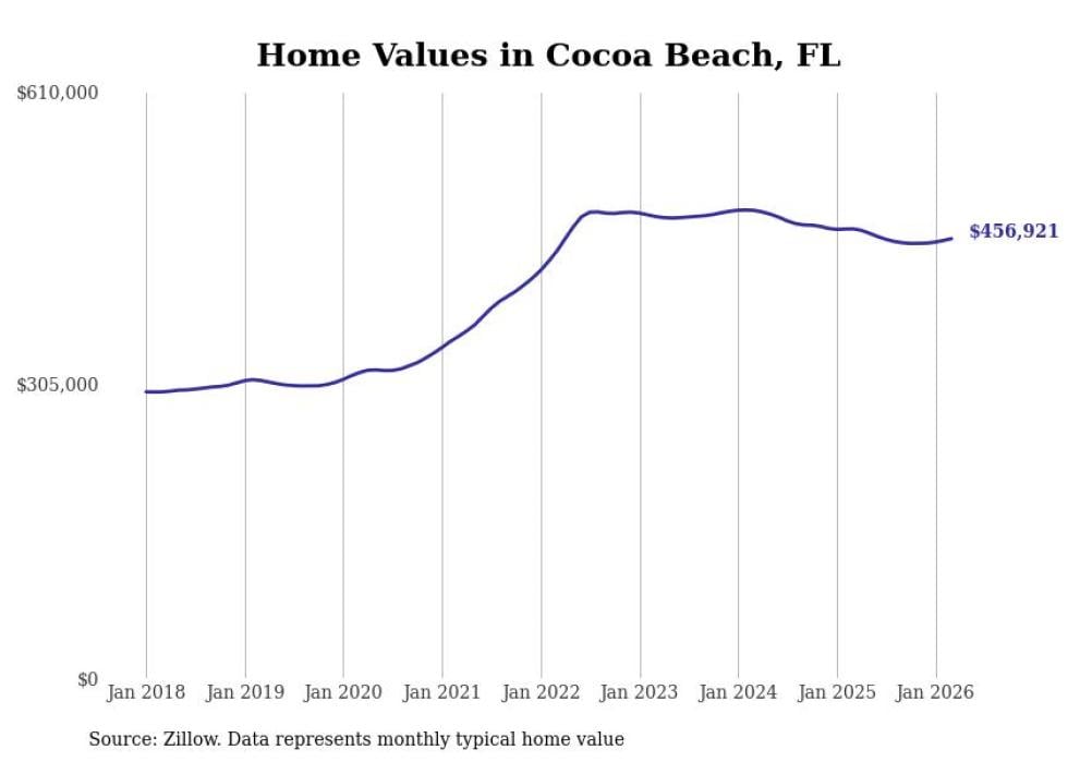 Stacker compiled a list of cities with the most expensive homes in the Palm Bay-Melbourne-Titusville, FL metro area using data from Zillow. Charts show the monthly typical home value since January 2018.