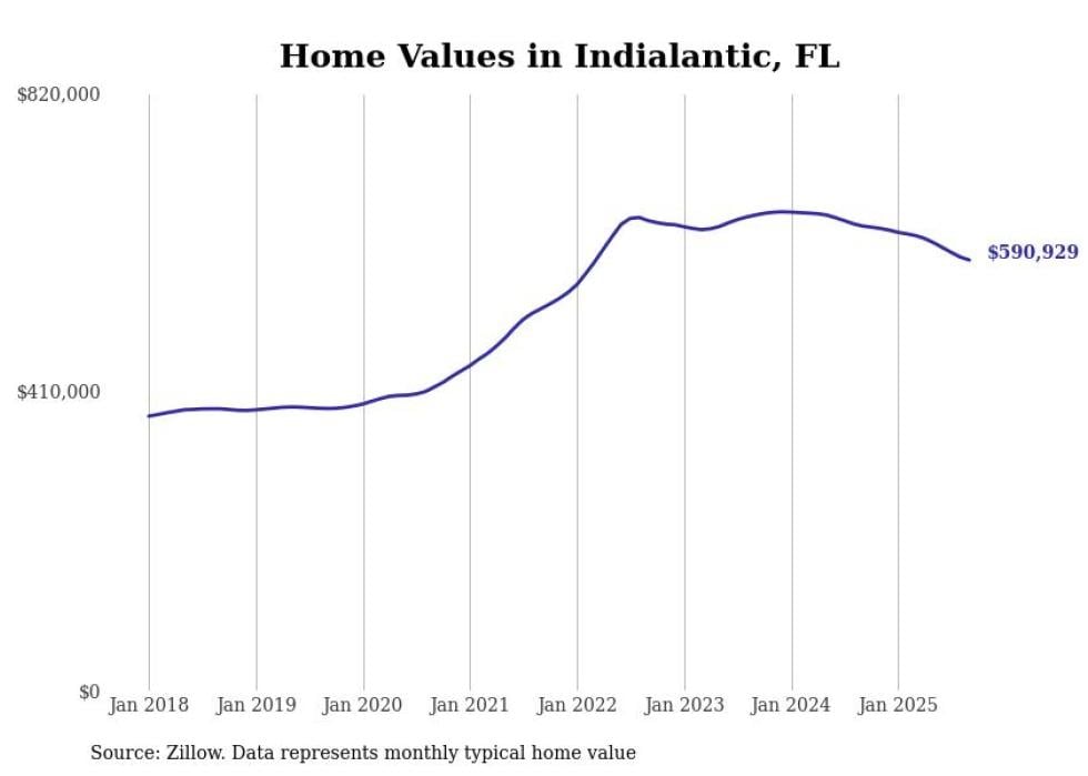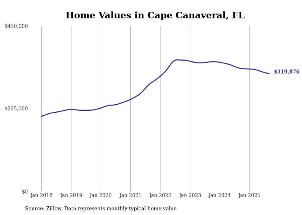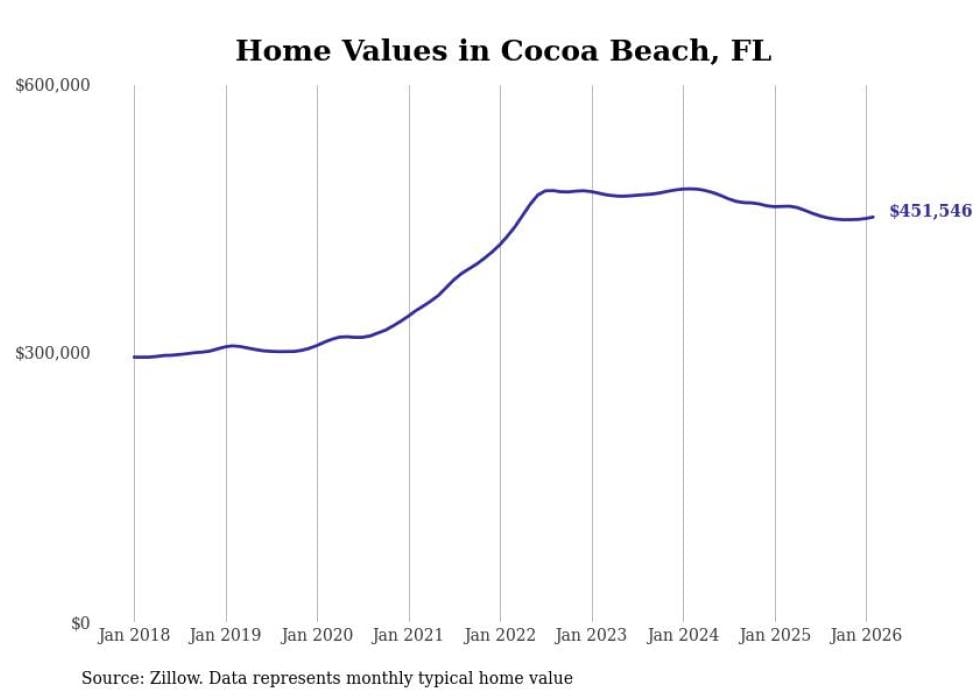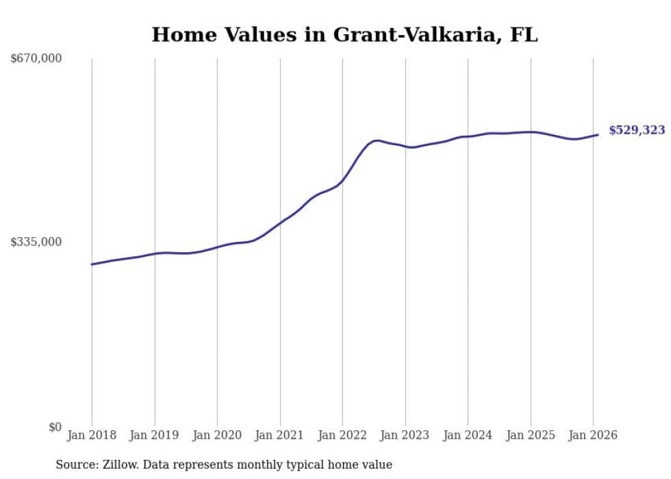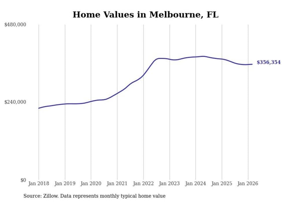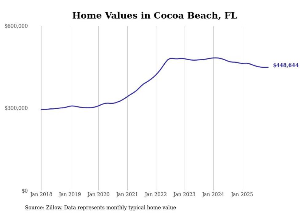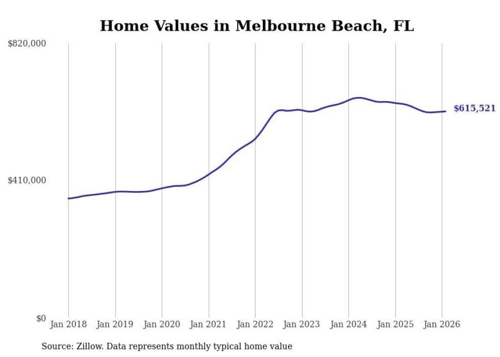 Stacker compiled a list of cities with the most expensive homes in the Palm Bay metro area using data from Zillow. Charts show the monthly typical home value since January 2018. All 19 cities and towns with data available were included in the list.