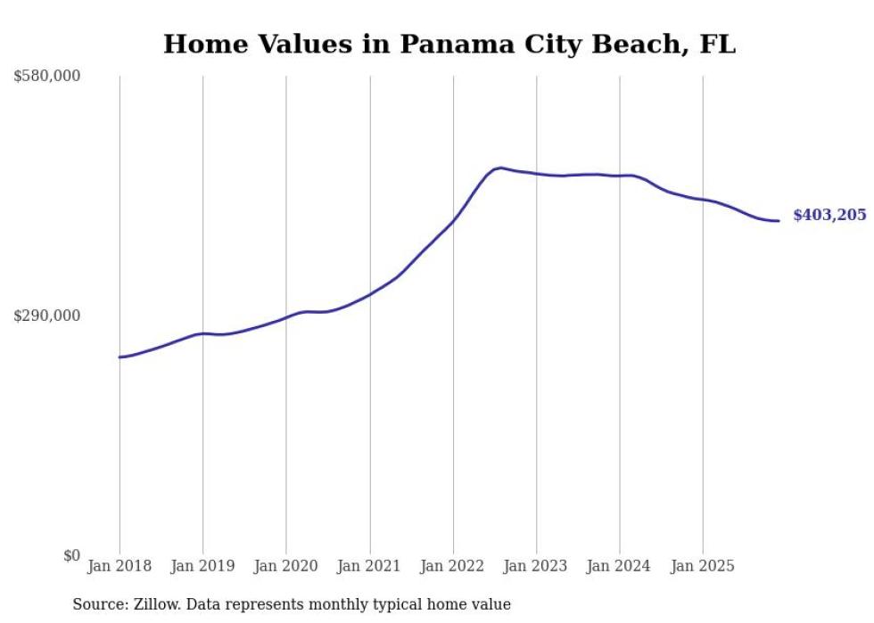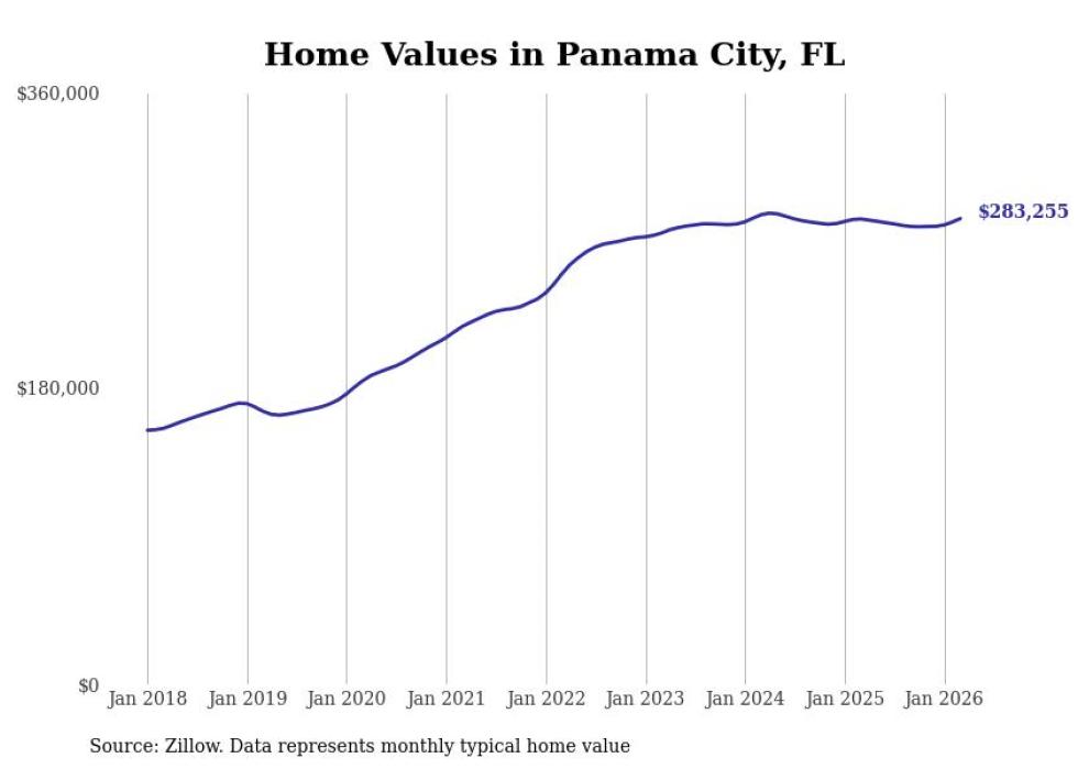 Stacker compiled a list of cities with the most expensive homes in the Panama City, FL metro area using data from Zillow. Charts show the monthly typical home value since January 2018.
