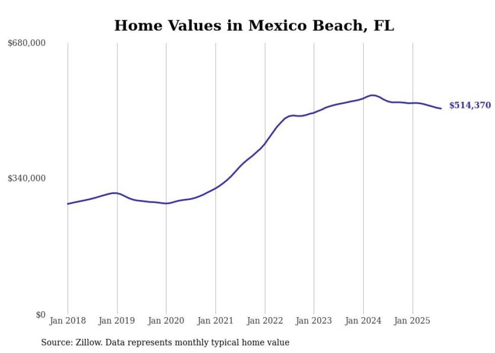 Stacker compiled a list of cities with the most expensive homes in the Panama City metro area using data from Zillow. Charts show the monthly typical home value since January 2018. All 10 cities and towns with data available were included in the list.