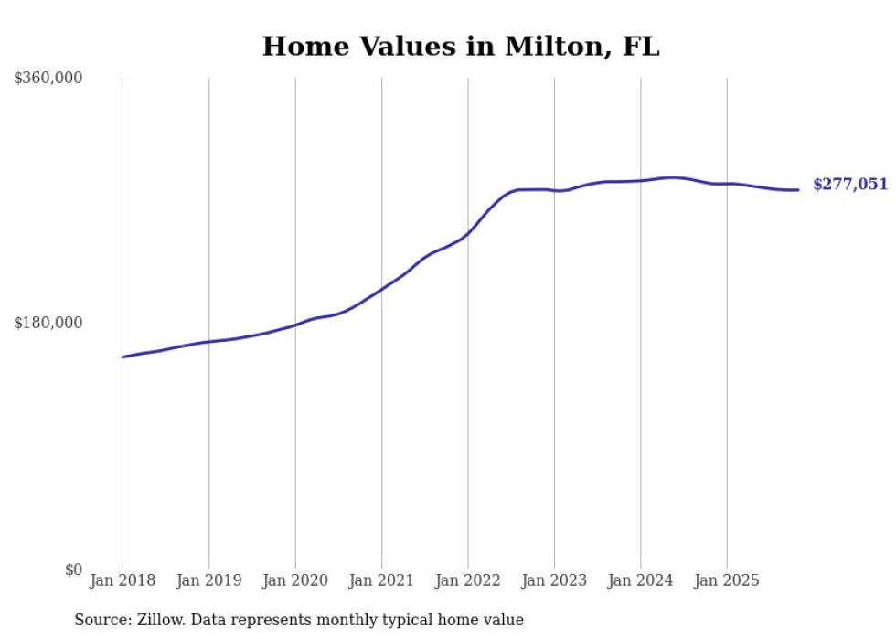 Cities with the fastest-growing home prices in the Pensacola metro area