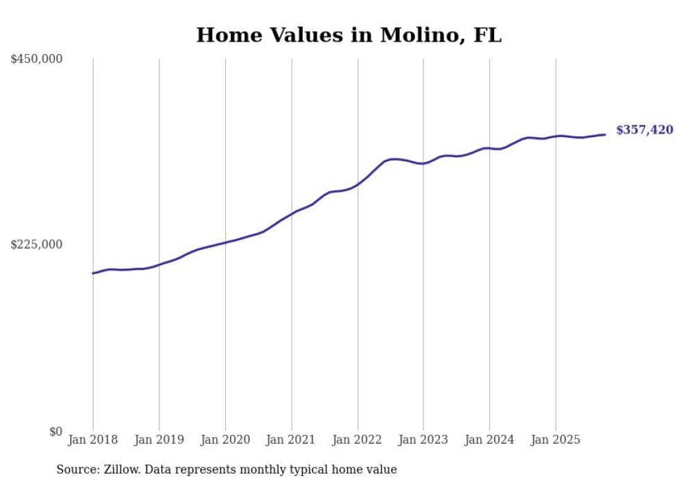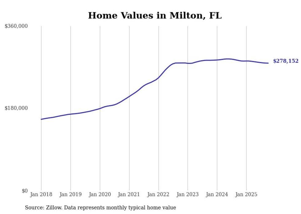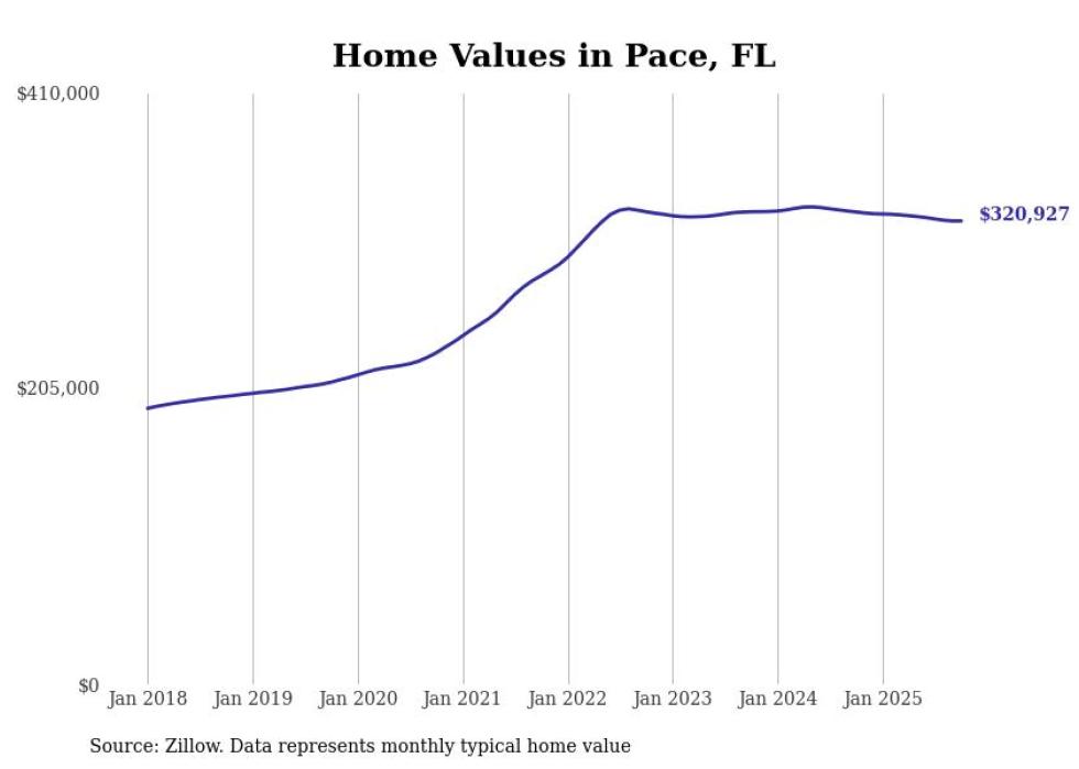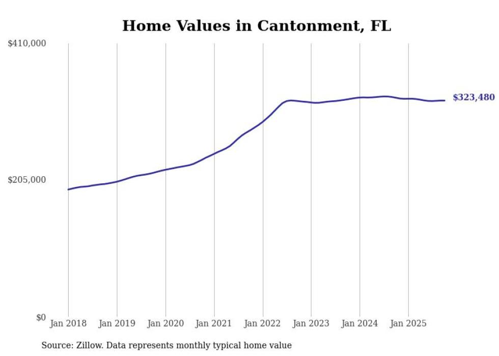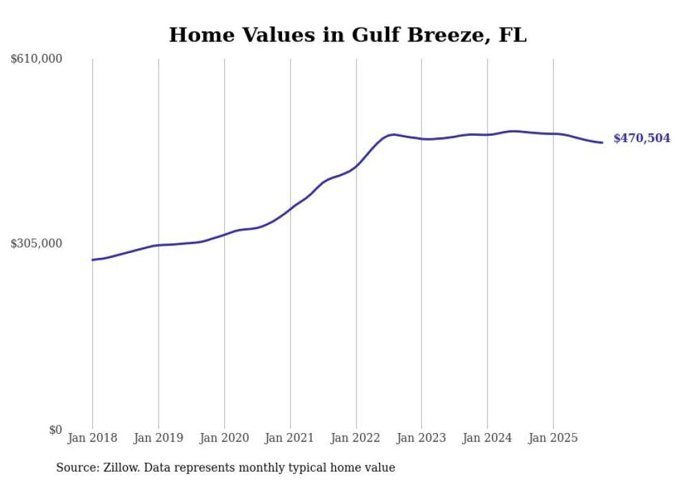 Stacker compiled a list of cities with the most expensive homes in the Pensacola metro area using data from Zillow. Charts show the monthly typical home value since January 2018. All 10 cities and towns with data available were included in the list.