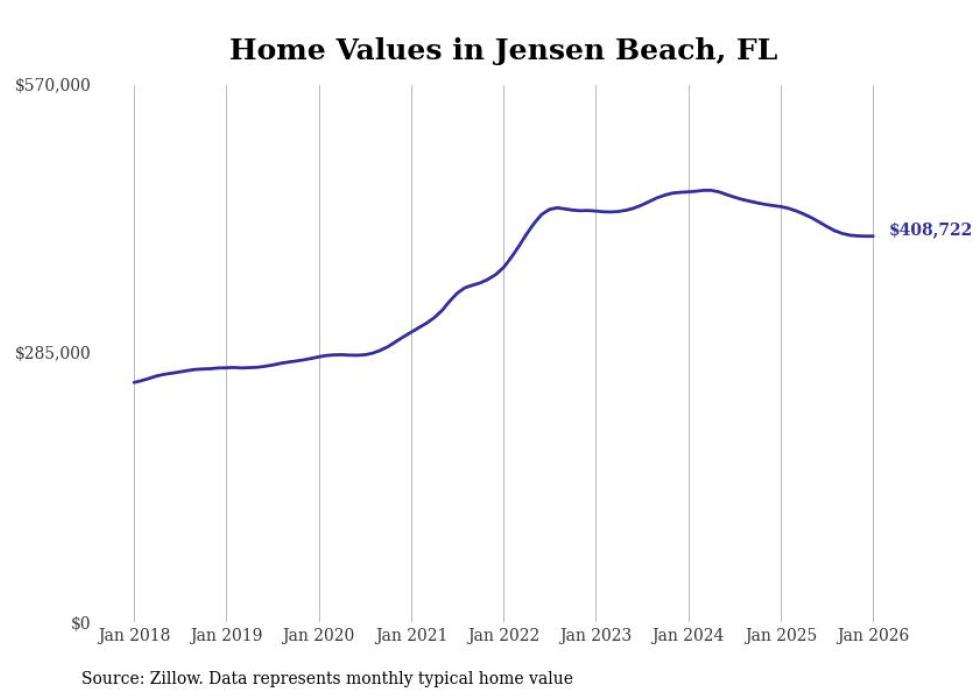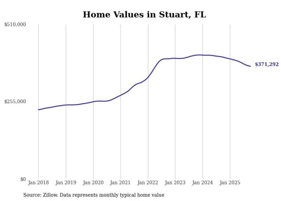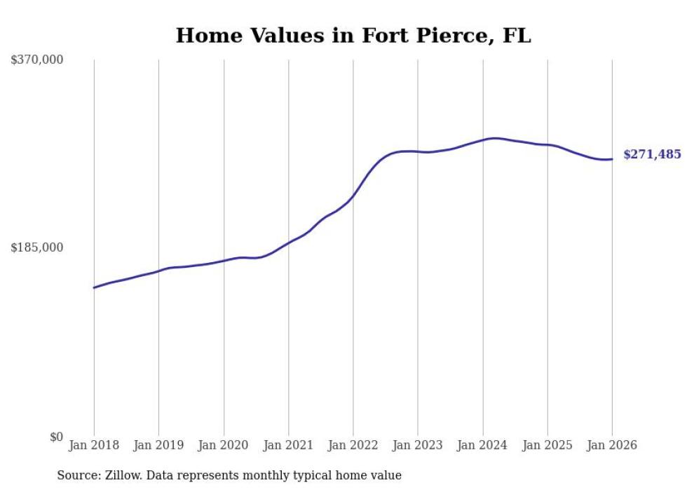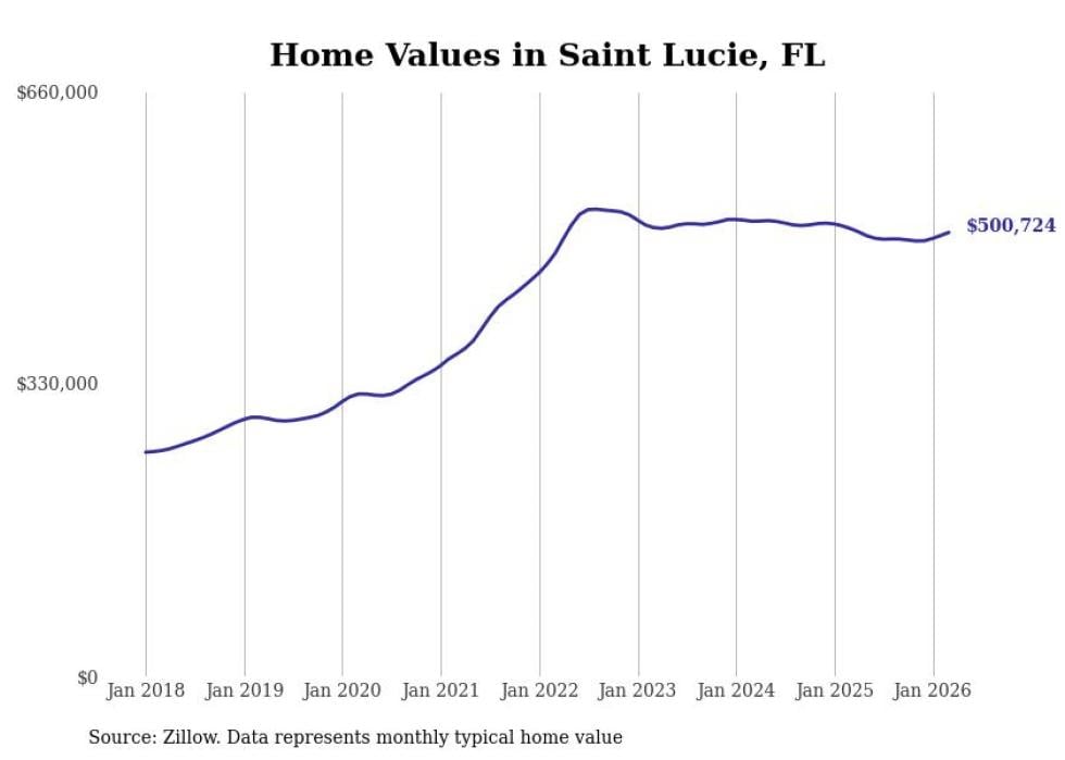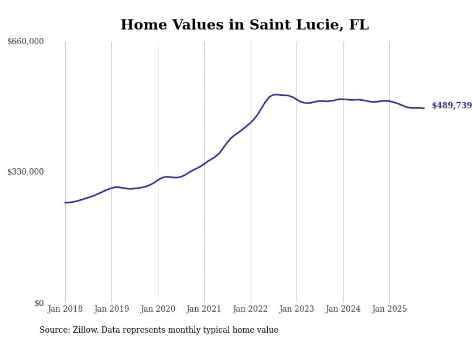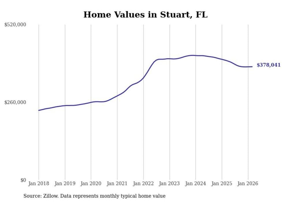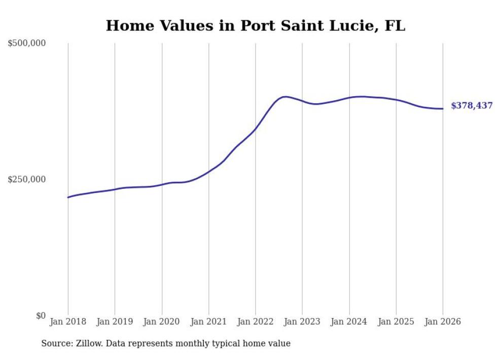 Stacker compiled a list of cities with the most expensive homes in the Port St. Lucie, FL metro area using data from Zillow. Charts show the monthly typical home value since January 2018.