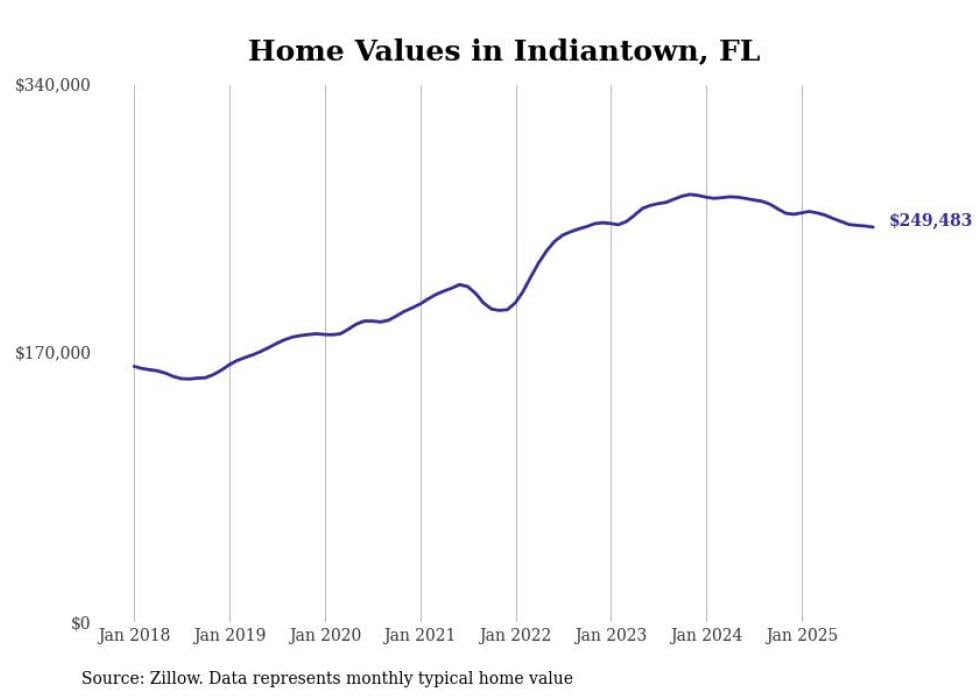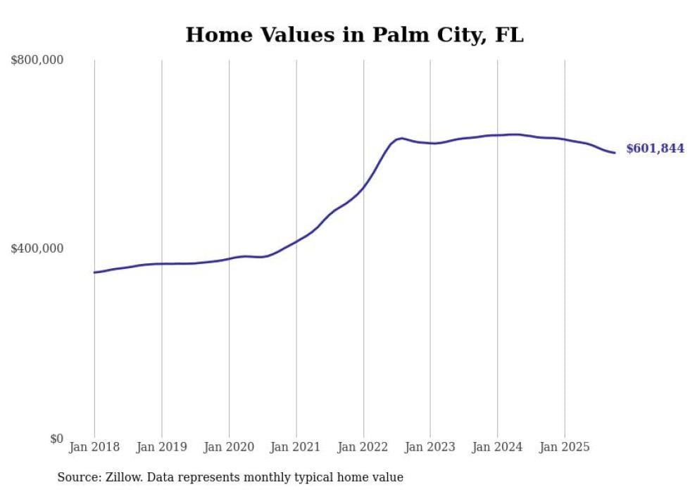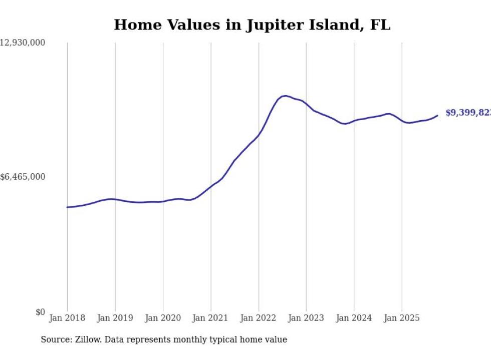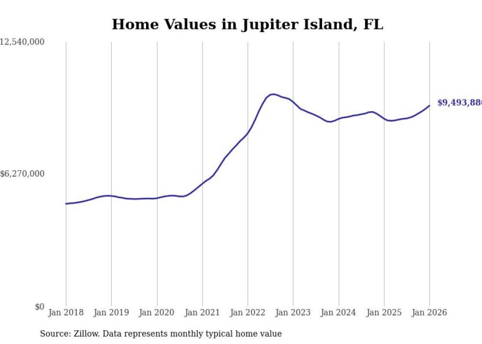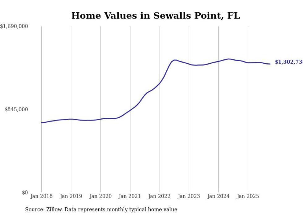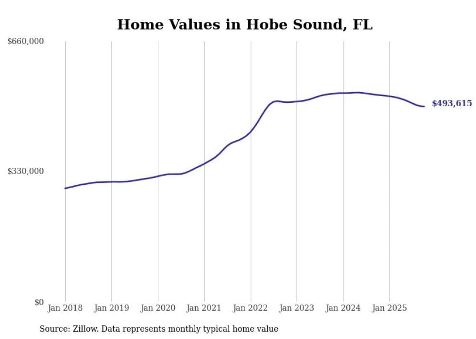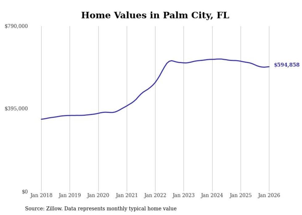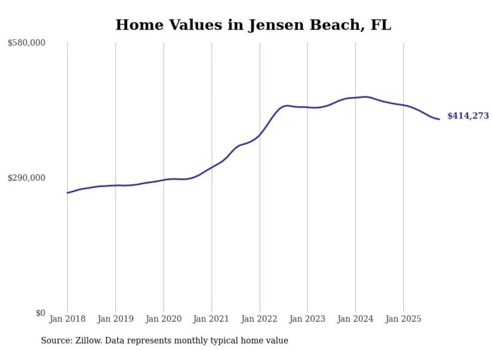 Stacker compiled a list of cities with the most expensive homes in the Port St. Lucie, FL metro area using data from Zillow. Charts show the monthly typical home value since January 2018.