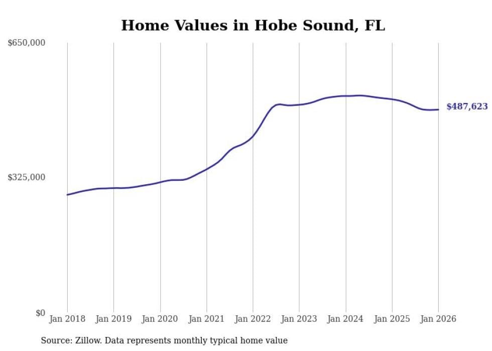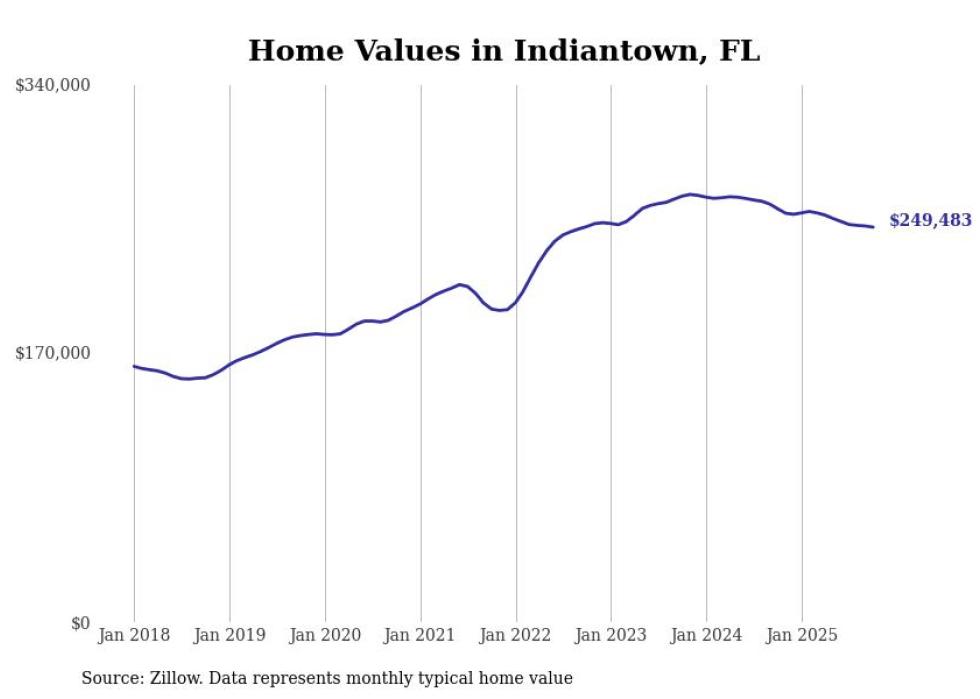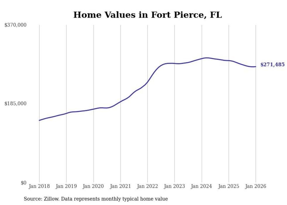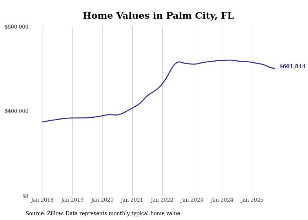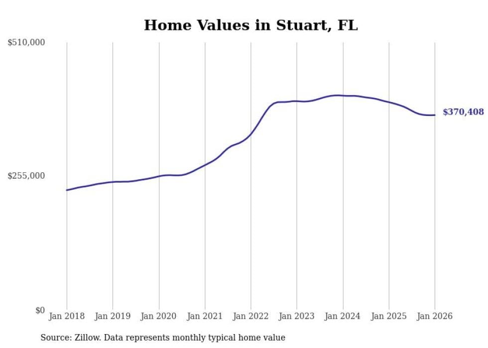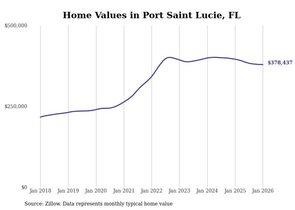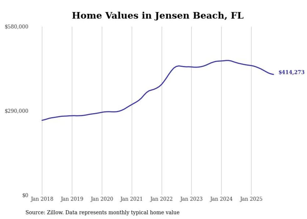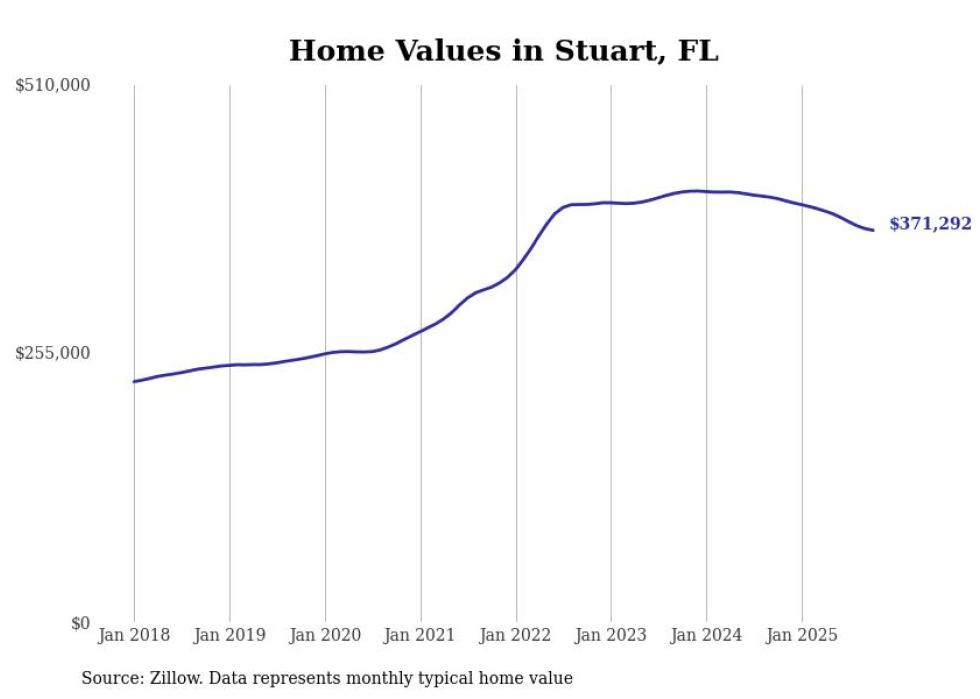 Stacker compiled a list of cities with the most expensive homes in the Port St. Lucie metro area using data from Zillow. Charts show the monthly typical home value since January 2018. All 10 cities and towns with data available were included in the list.