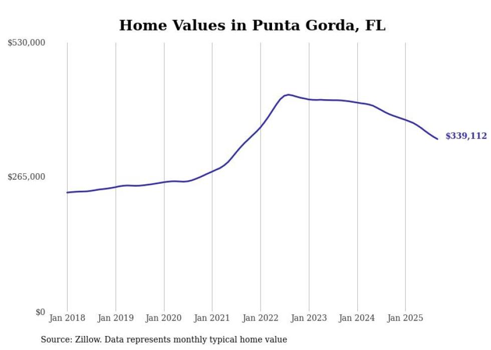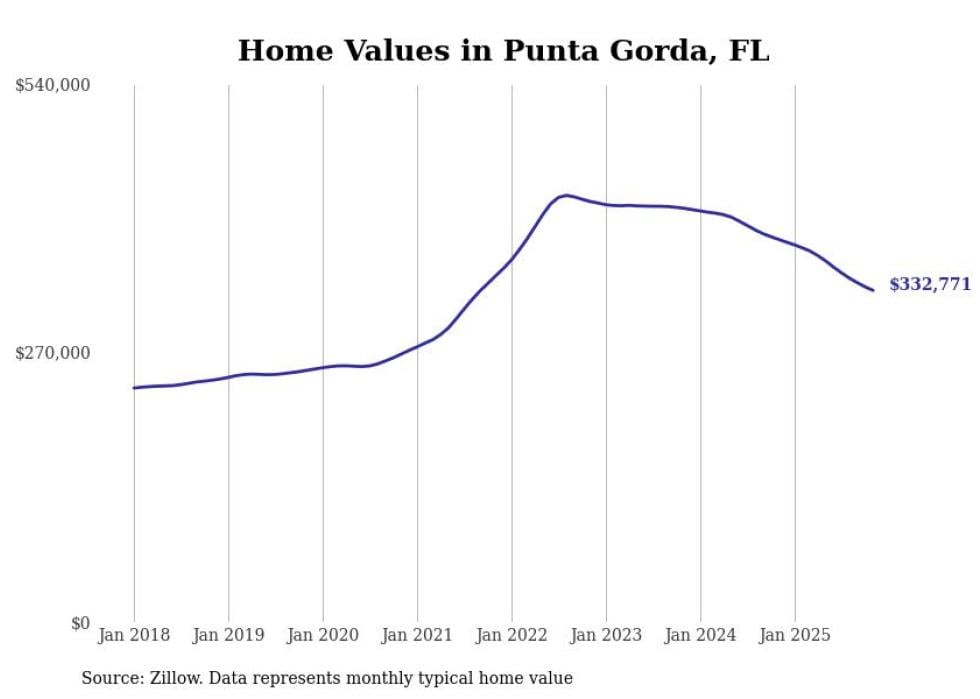 Stacker compiled a list of cities with the most expensive homes in the Punta Gorda metro area using data from Zillow. Charts show the monthly typical home value since January 2018. All 4 cities and towns with data available were included in the list.