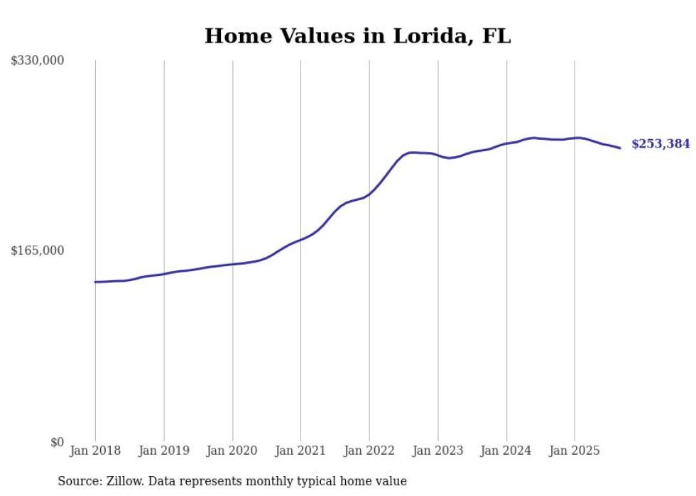 Stacker compiled a list of cities with the most expensive homes in the Sebring-Avon Park, FL metro area using data from Zillow. Charts show the monthly typical home value since January 2018.