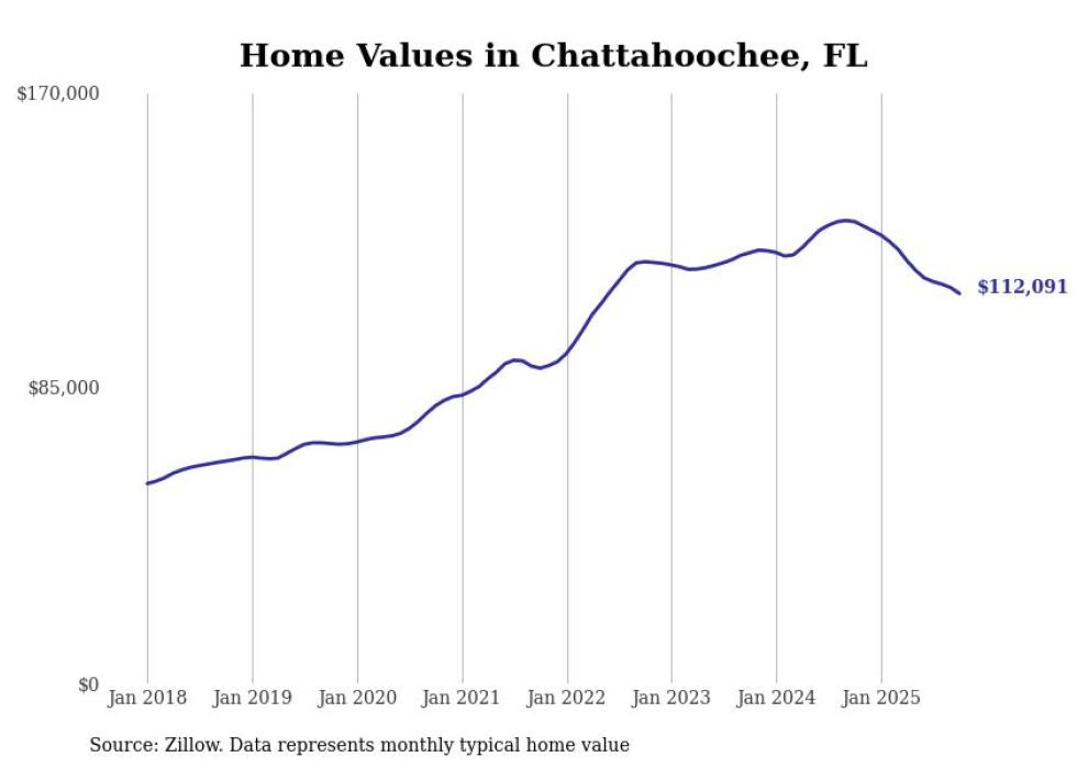 Stacker compiled a list of cities with the most expensive homes in the Tallahassee metro area using data from Zillow. Charts show the monthly typical home value since January 2018. All 11 cities and towns with data available were included in the list.