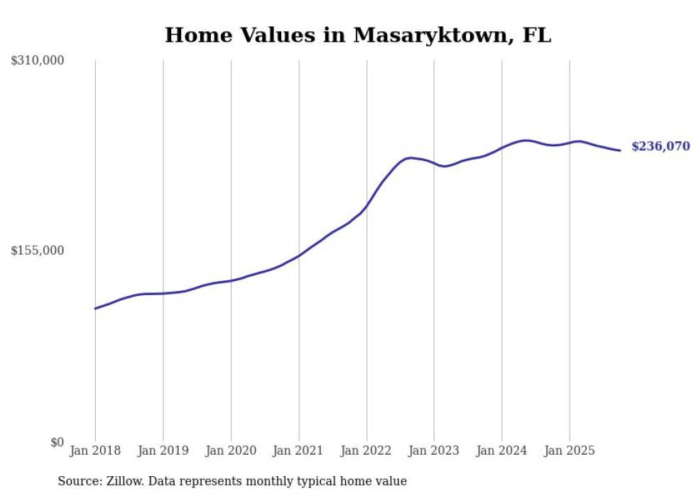 Stacker compiled a list of cities with the most expensive homes in the Tampa-St. Petersburg-Clearwater, FL metro area using data from Zillow. Charts show the monthly typical home value since January 2018.