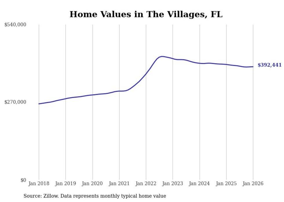 Stacker compiled a list of cities with the most expensive homes in the The Villages, FL metro area using data from Zillow. Charts show the monthly typical home value since January 2018.