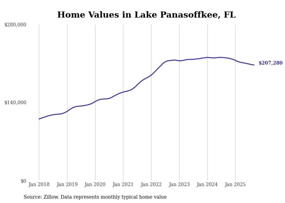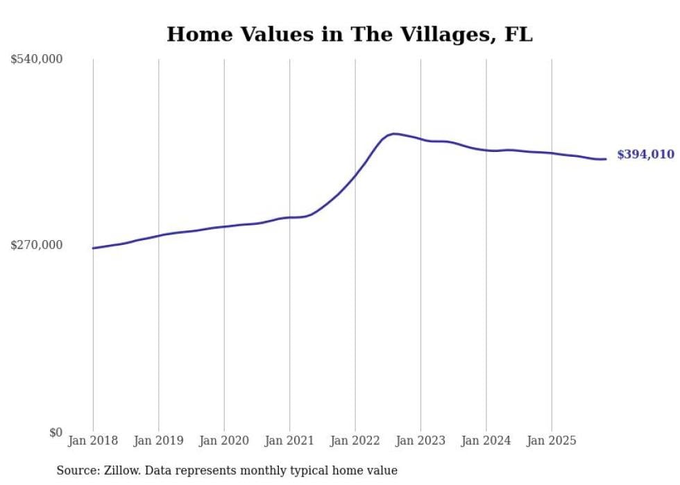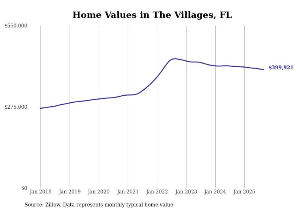 Stacker compiled a list of cities with the most expensive homes in the The Villages metro area using data from Zillow. Charts show the monthly typical home value since January 2018. All 8 cities and towns with data available were included in the list.