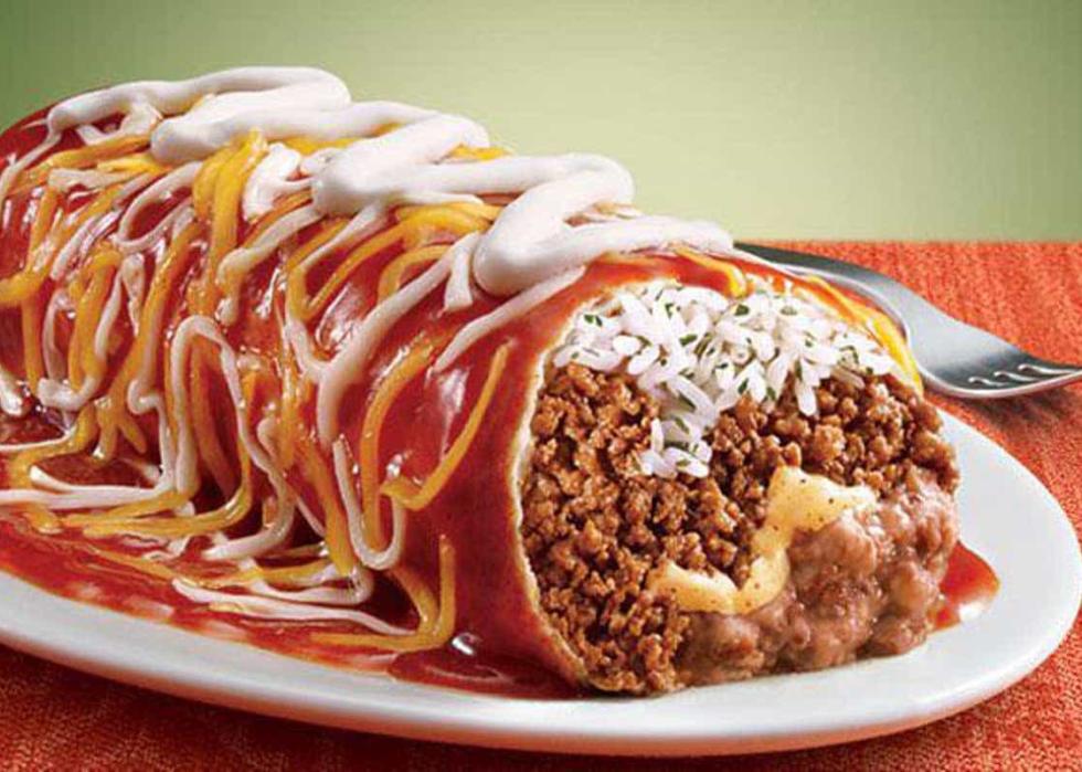 A large flour tortilla filled with seasoned beef, rice, and beans, then covered in red sauce, nacho cheese, and sour cream, it was meant to capture the same smothered-enchilada energy as the item it replaced.
