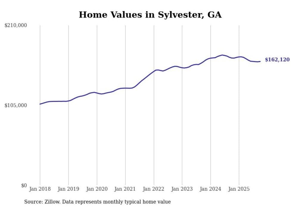 Stacker compiled a list of cities with the most expensive homes in the Albany, GA metro area using data from Zillow. Charts show the monthly typical home value since January 2018.