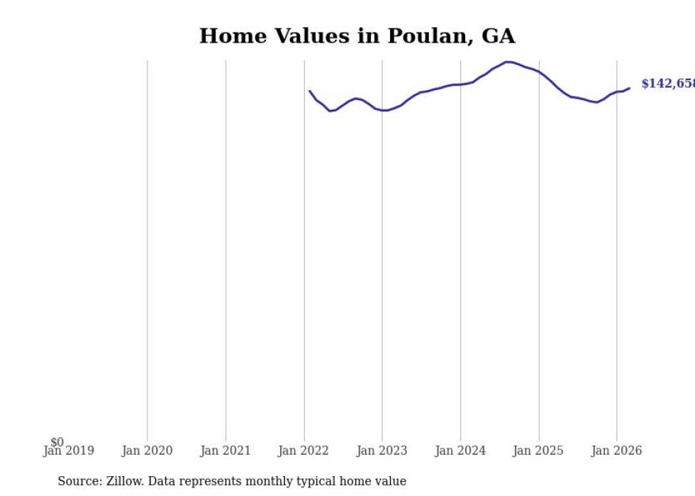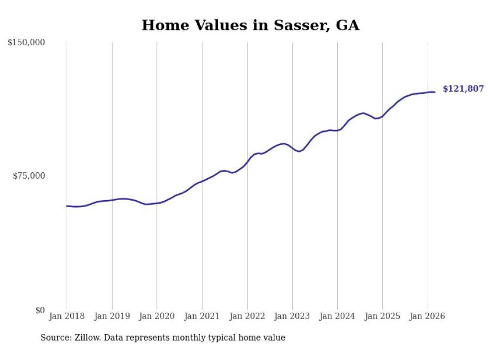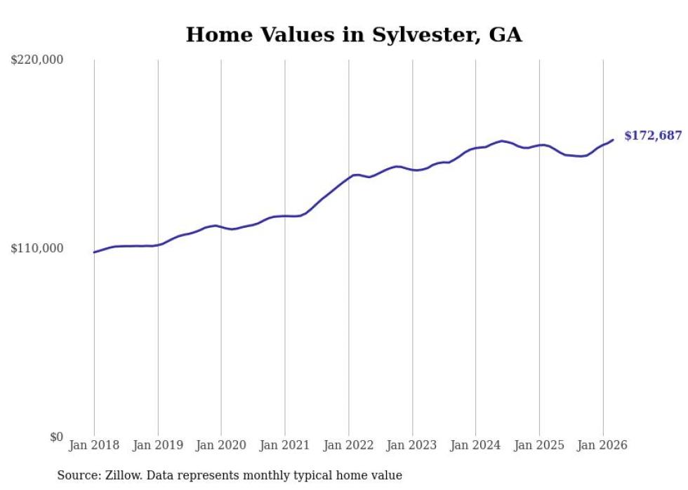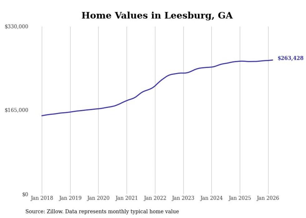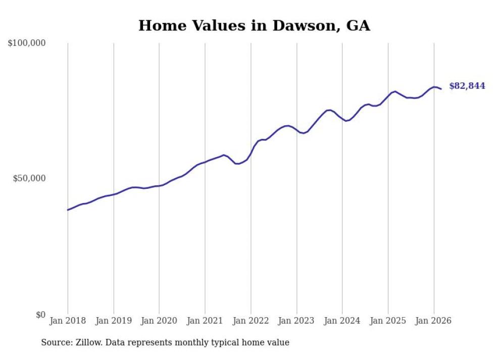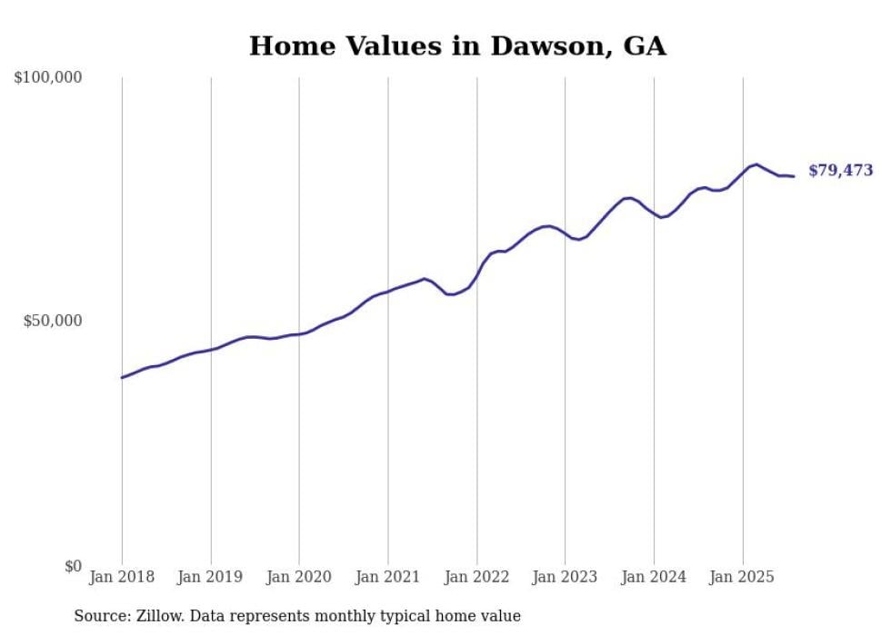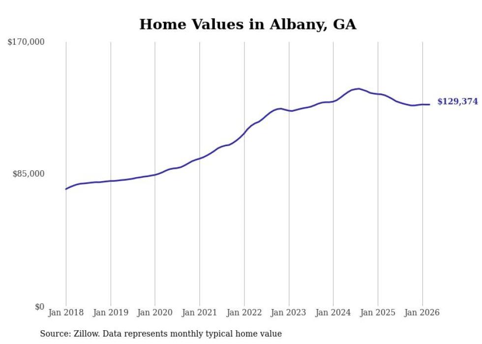 Stacker compiled a list of cities with the most expensive homes in the Albany, Georgia metro area using data from Zillow. Charts show the monthly typical home value since January 2018. All 13 cities and towns with data available were included in the list.