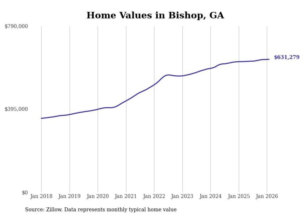 Stacker compiled a list of cities with the most expensive homes in the Athens-Clarke County, GA metro area using data from Zillow. Charts show the monthly typical home value since January 2018.