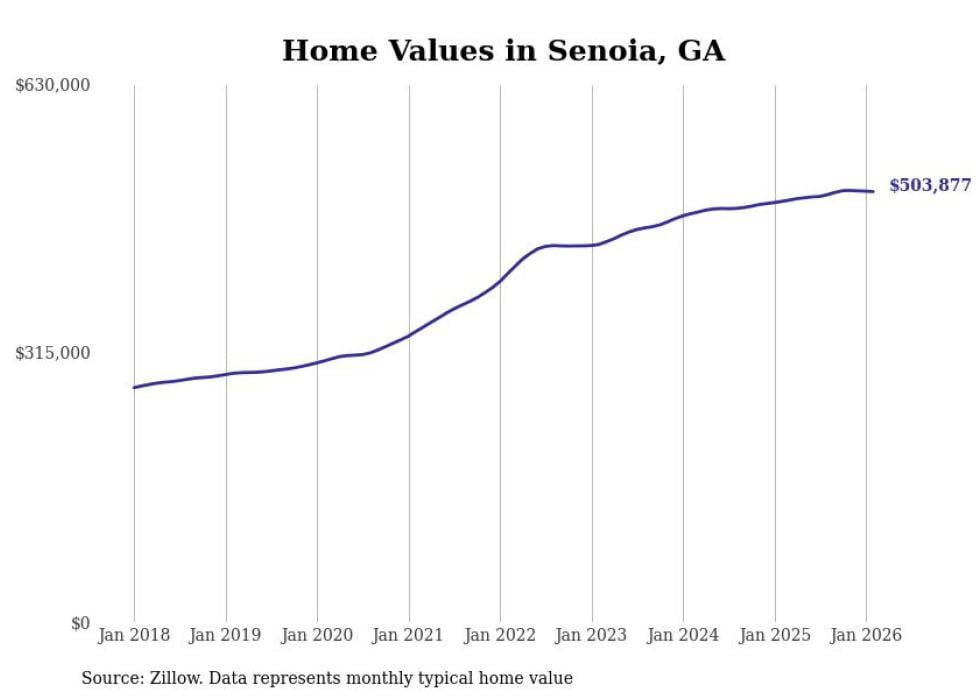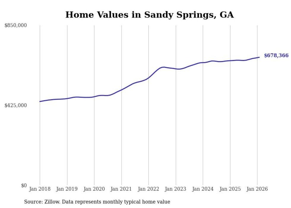 Stacker compiled a list of cities with the most expensive homes in the Atlanta-Sandy Springs-Alpharetta, GA metro area using data from Zillow. Charts show the monthly typical home value since January 2018.