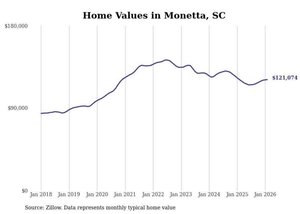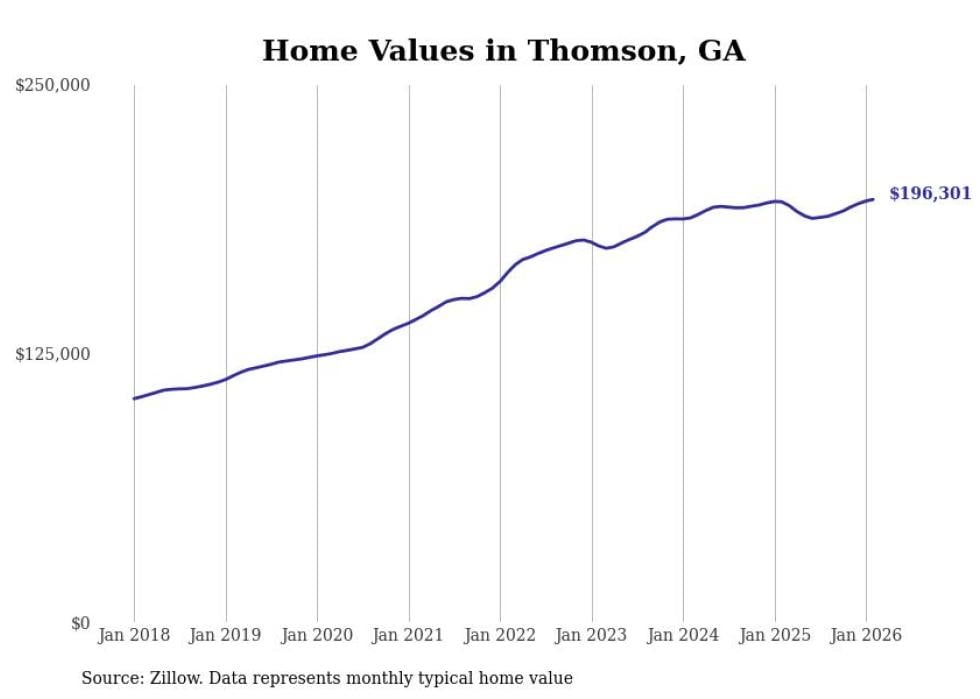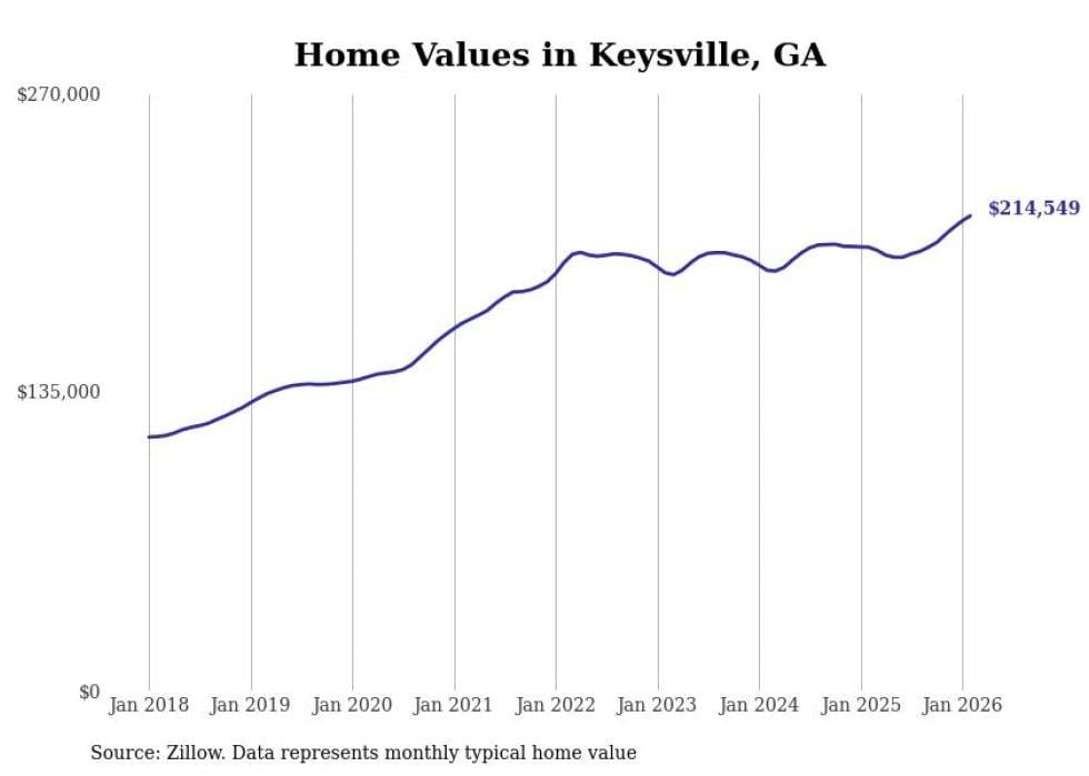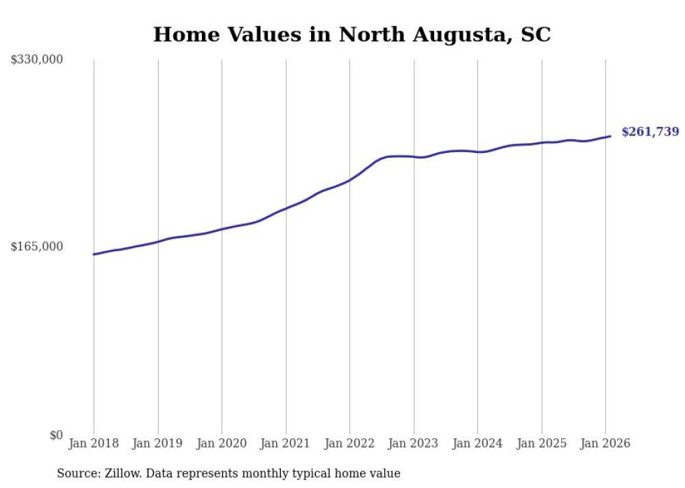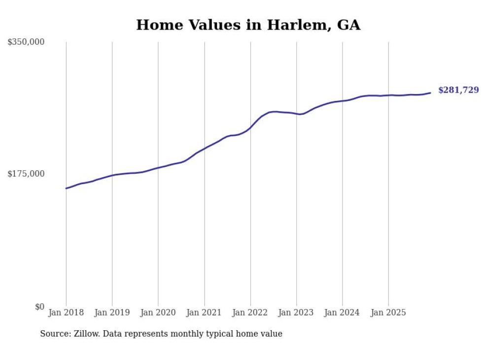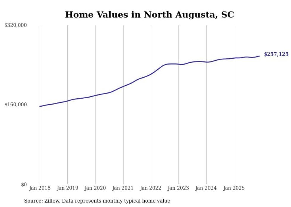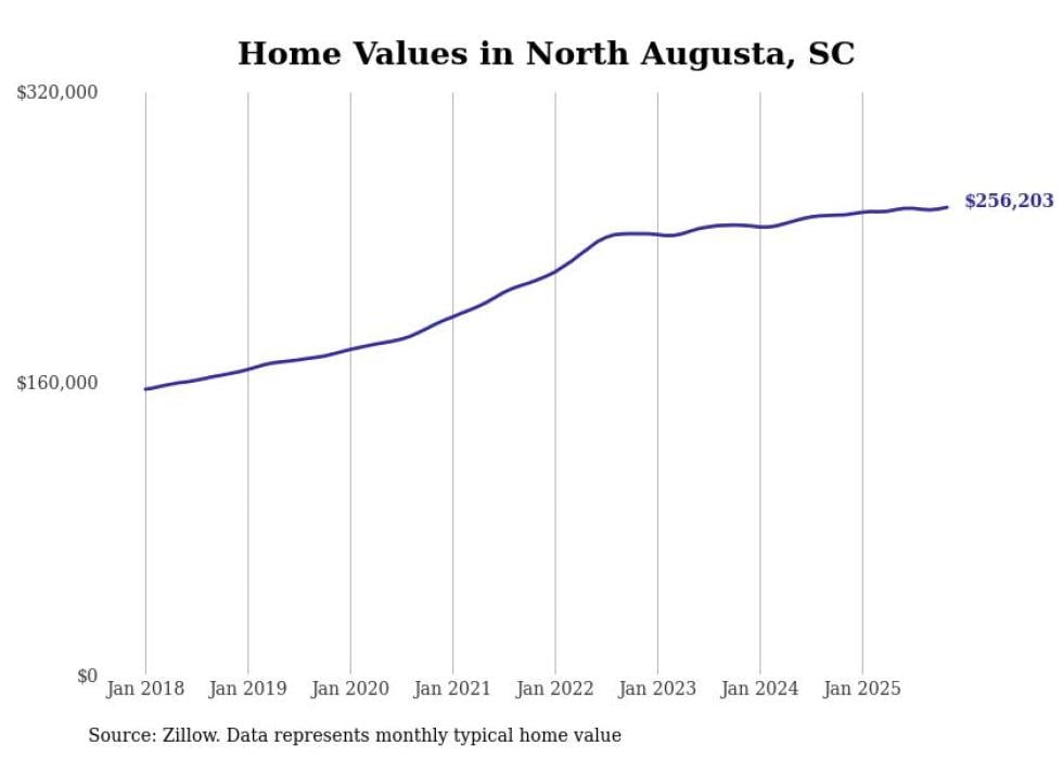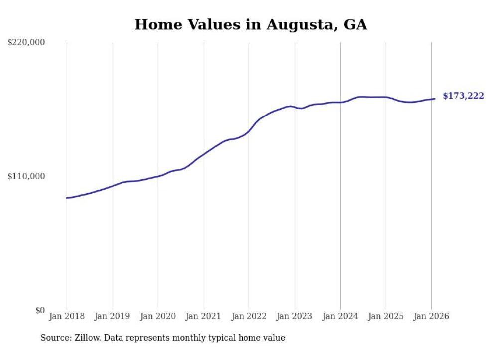 Stacker compiled a list of cities with the most expensive homes in the Augusta-Richmond County, GA-SC metro area using data from Zillow. Charts show the monthly typical home value since January 2018.