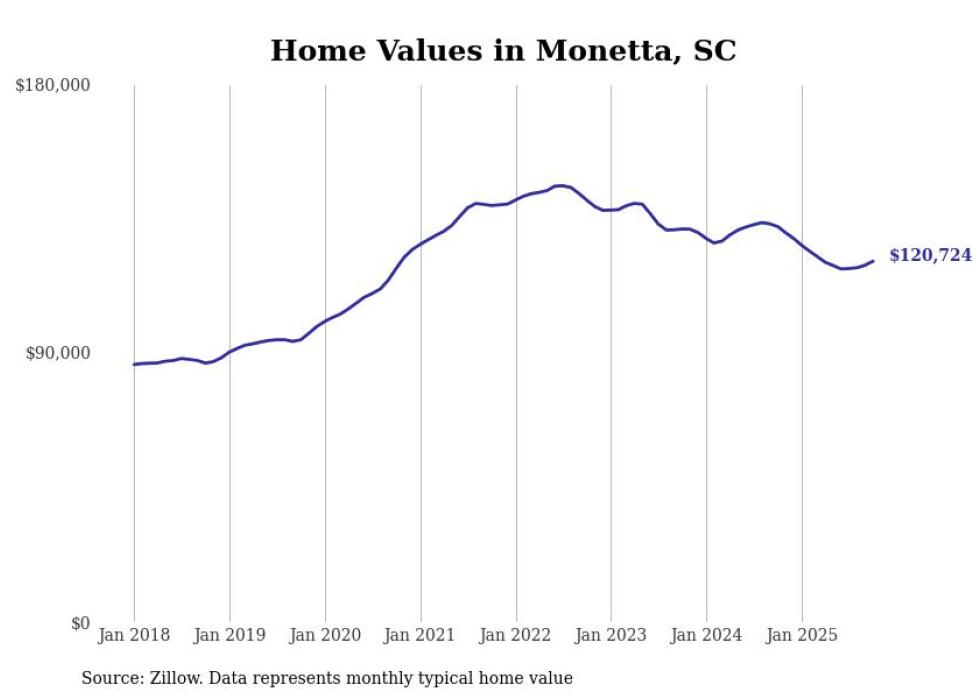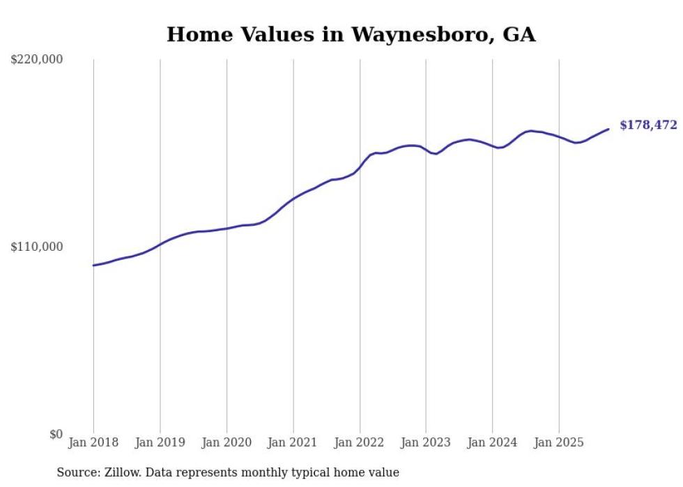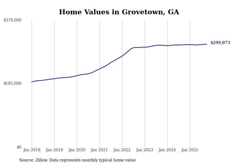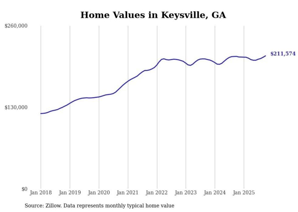 Stacker compiled a list of cities with the most expensive homes in the Augusta metro area using data from Zillow. Charts show the monthly typical home value since January 2018. Data was available for 34 cities and towns.