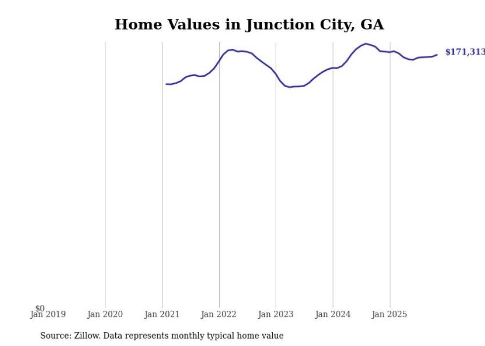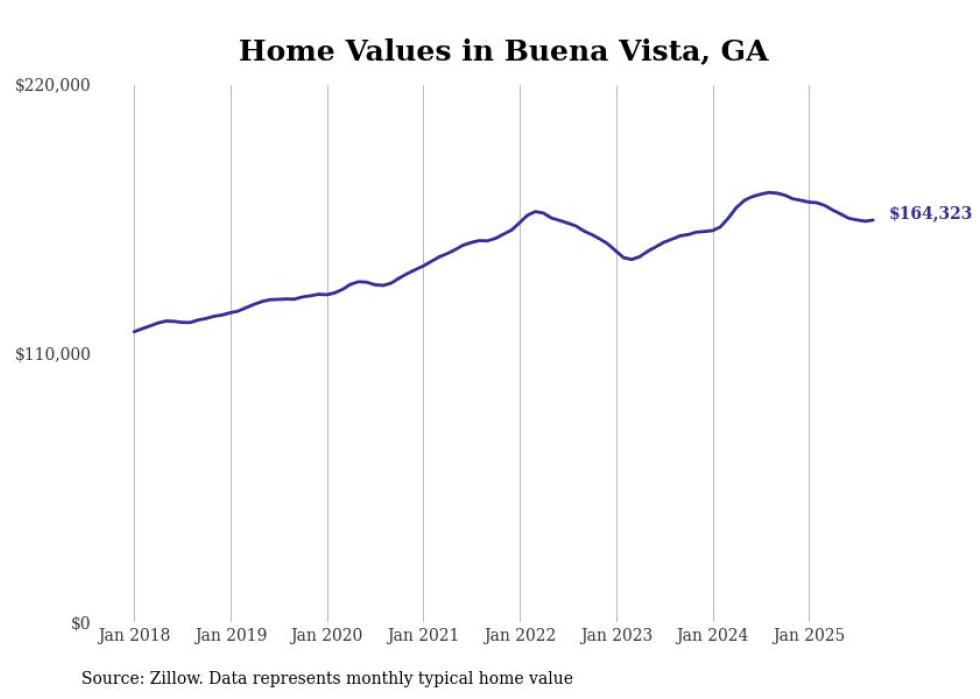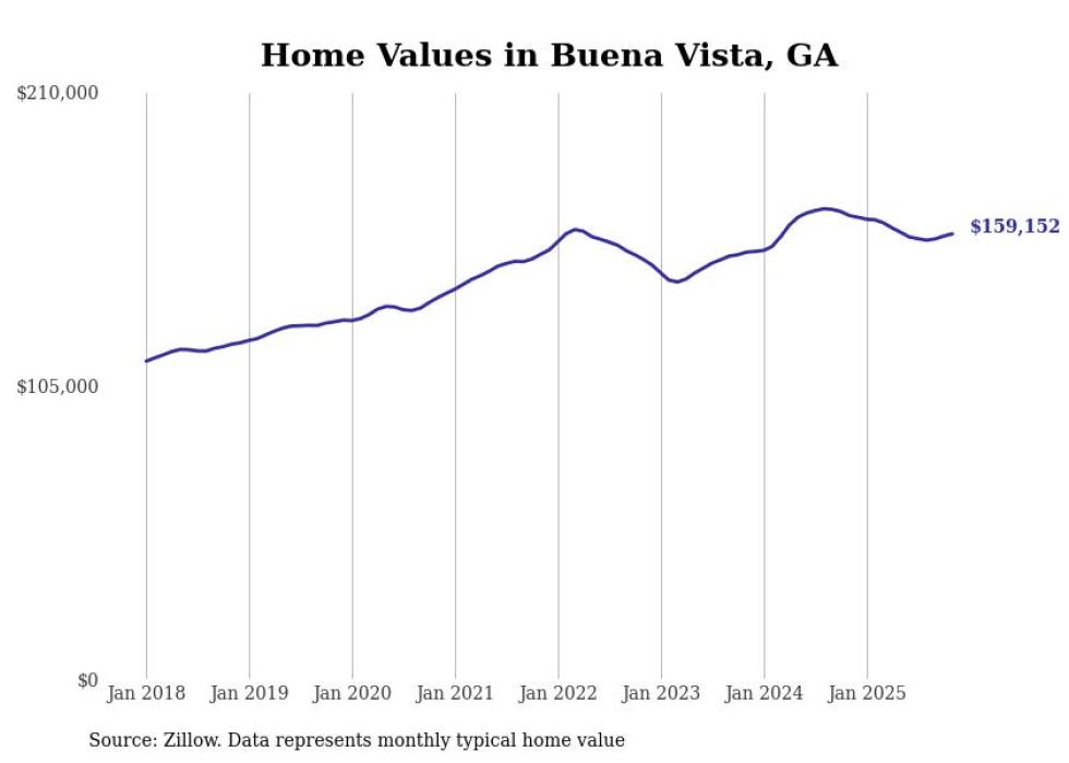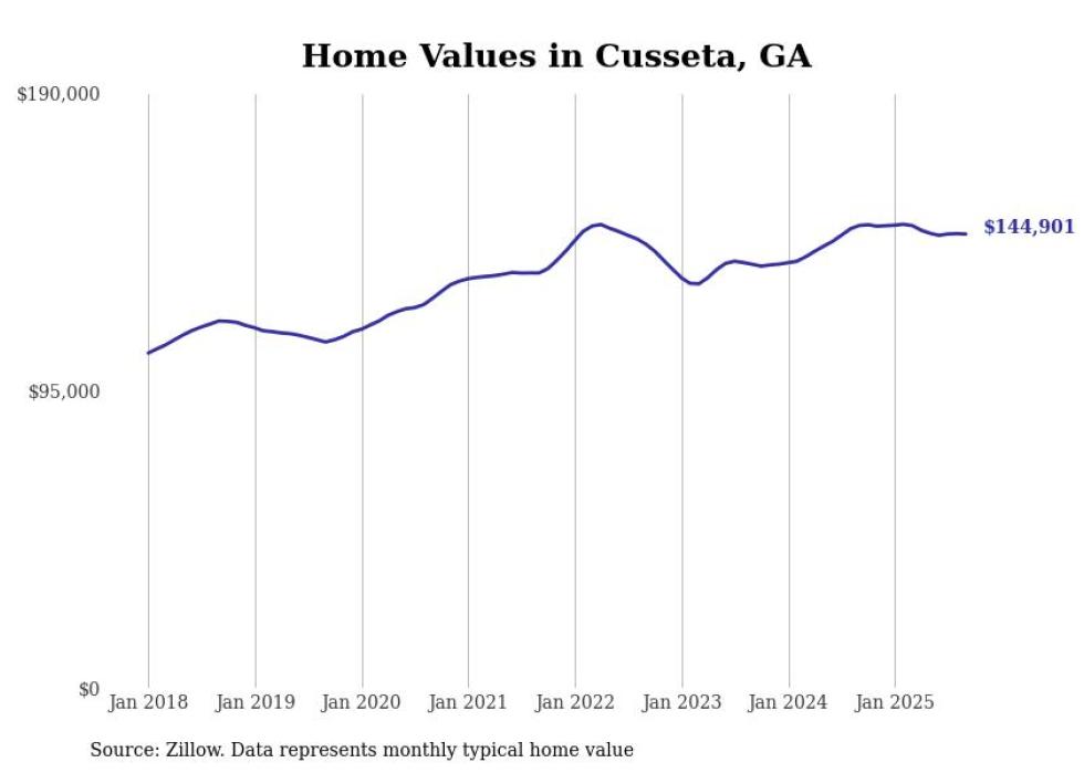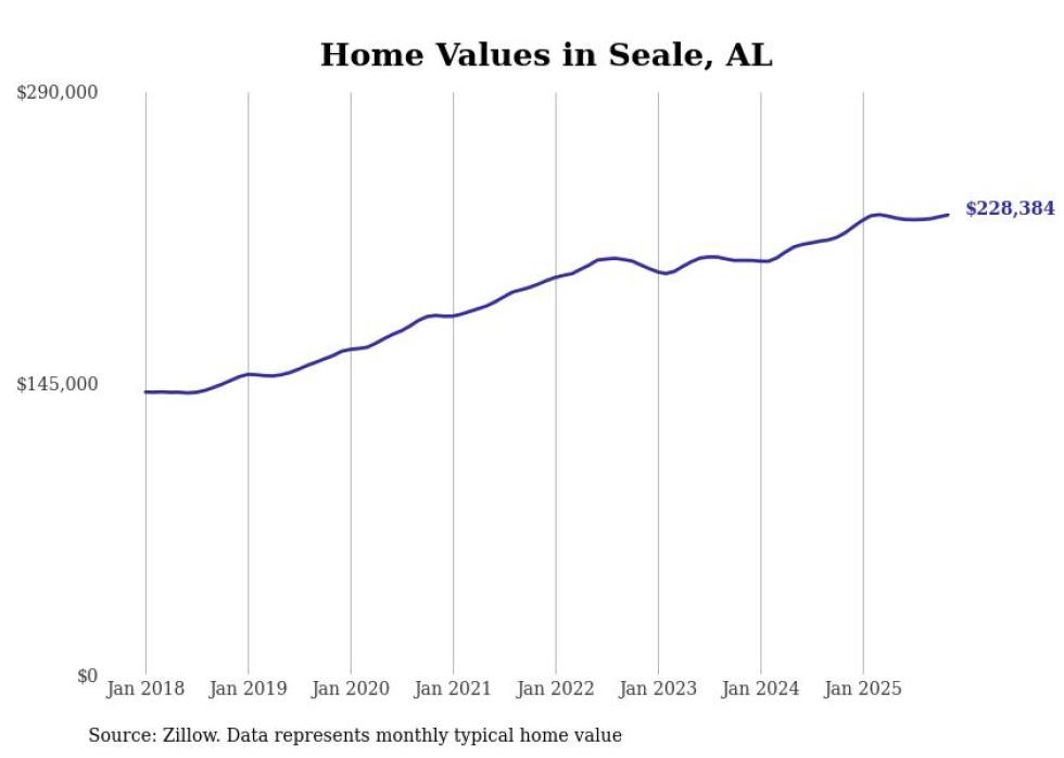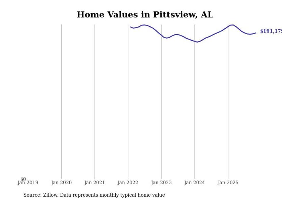 Stacker compiled a list of cities with the most expensive homes in the Columbus, GA-AL metro area using data from Zillow. Charts show the monthly typical home value since January 2018.