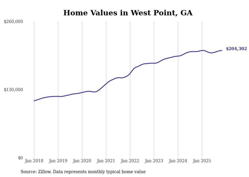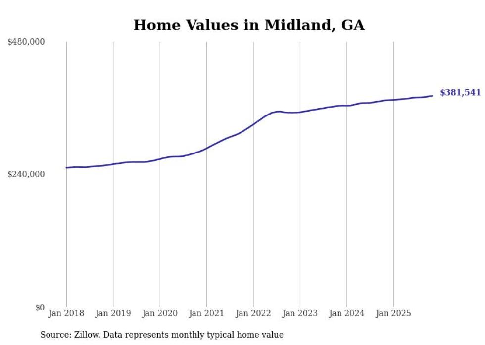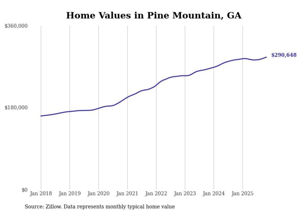Cities with the fastest-growing home prices in the Columbus, Georgia metro area