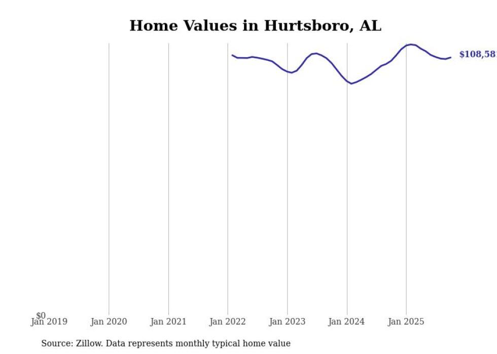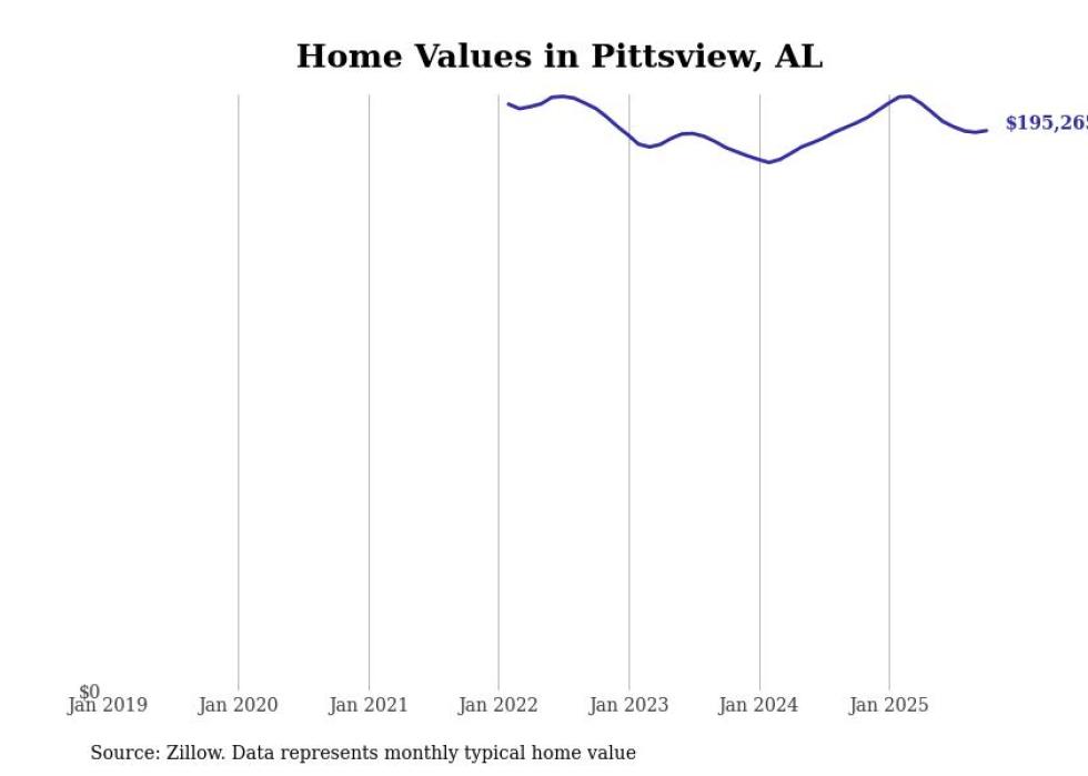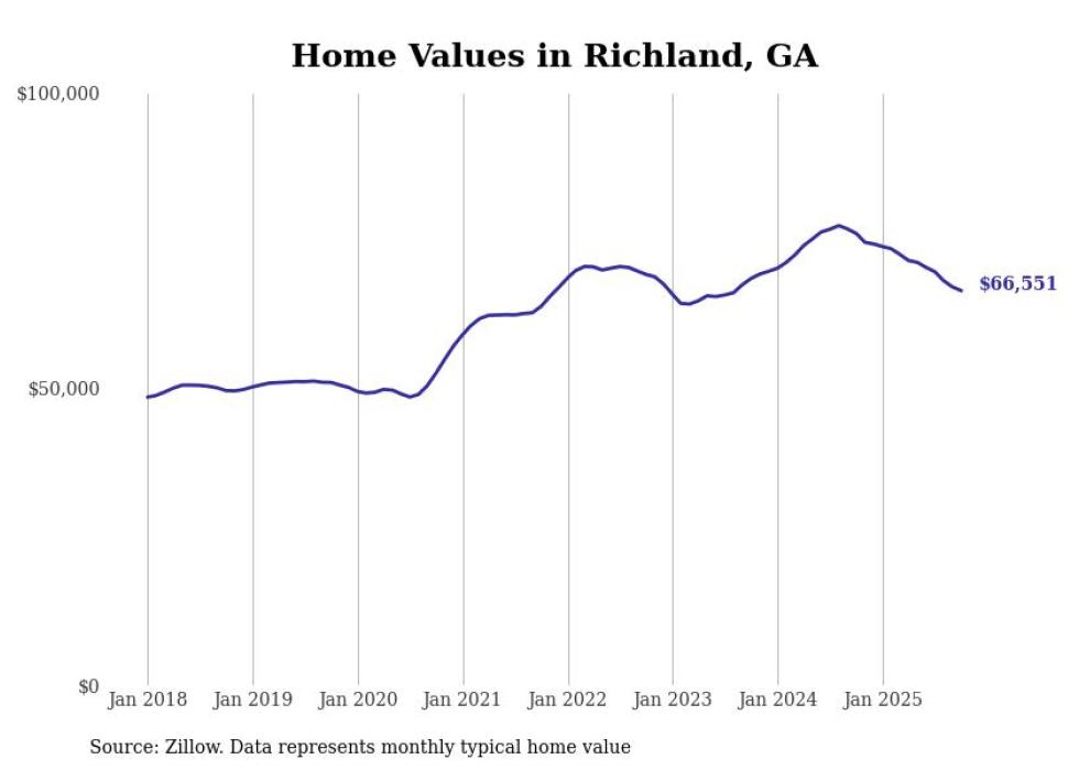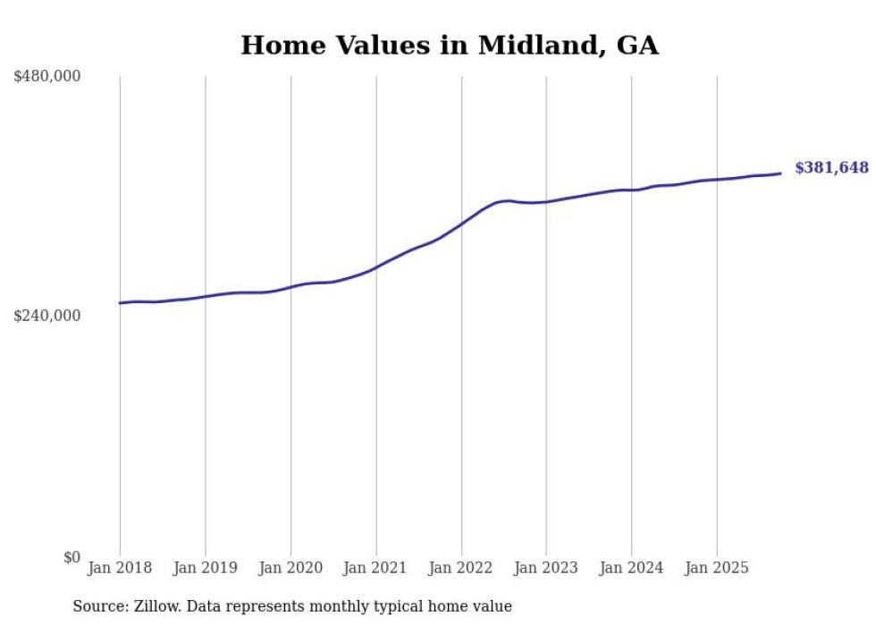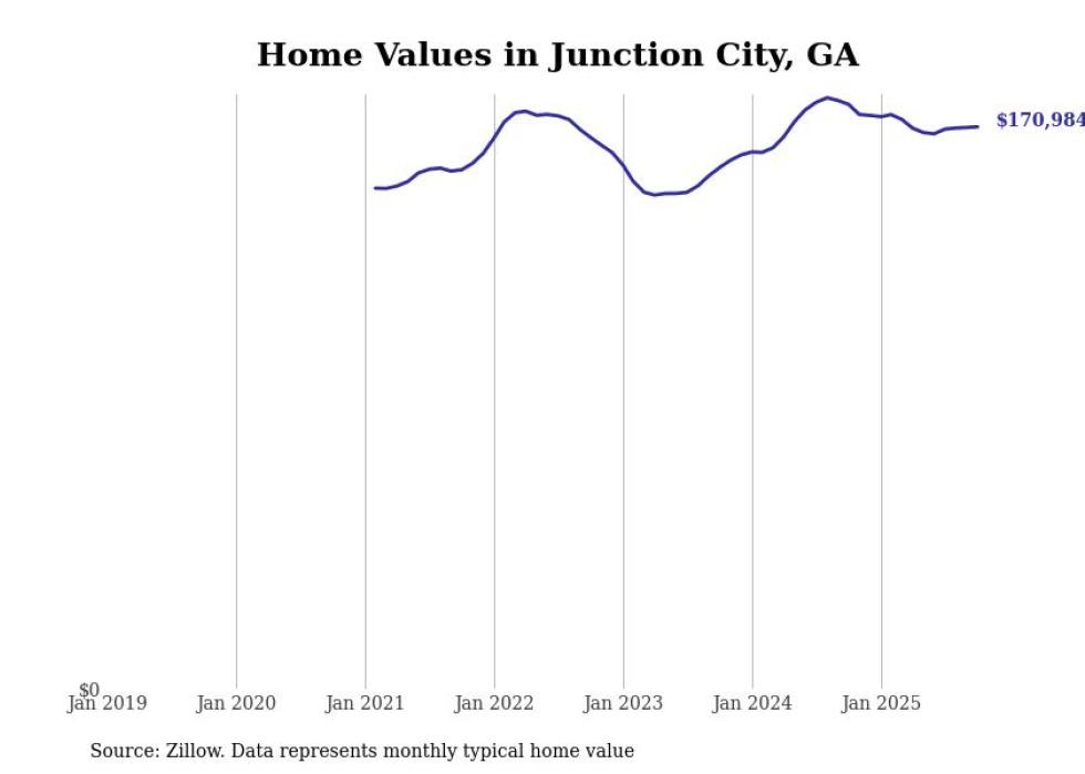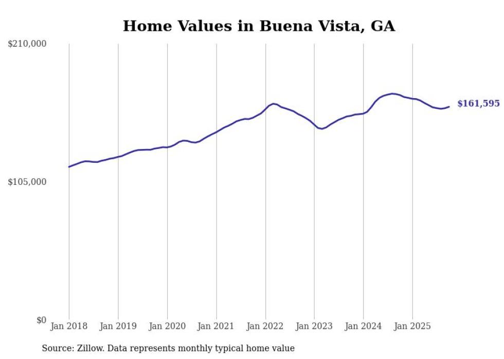 Stacker compiled a list of cities with the most expensive homes in the Columbus, Georgia metro area using data from Zillow. Charts show the monthly typical home value since January 2018. All 23 cities and towns with data available were included in the list.