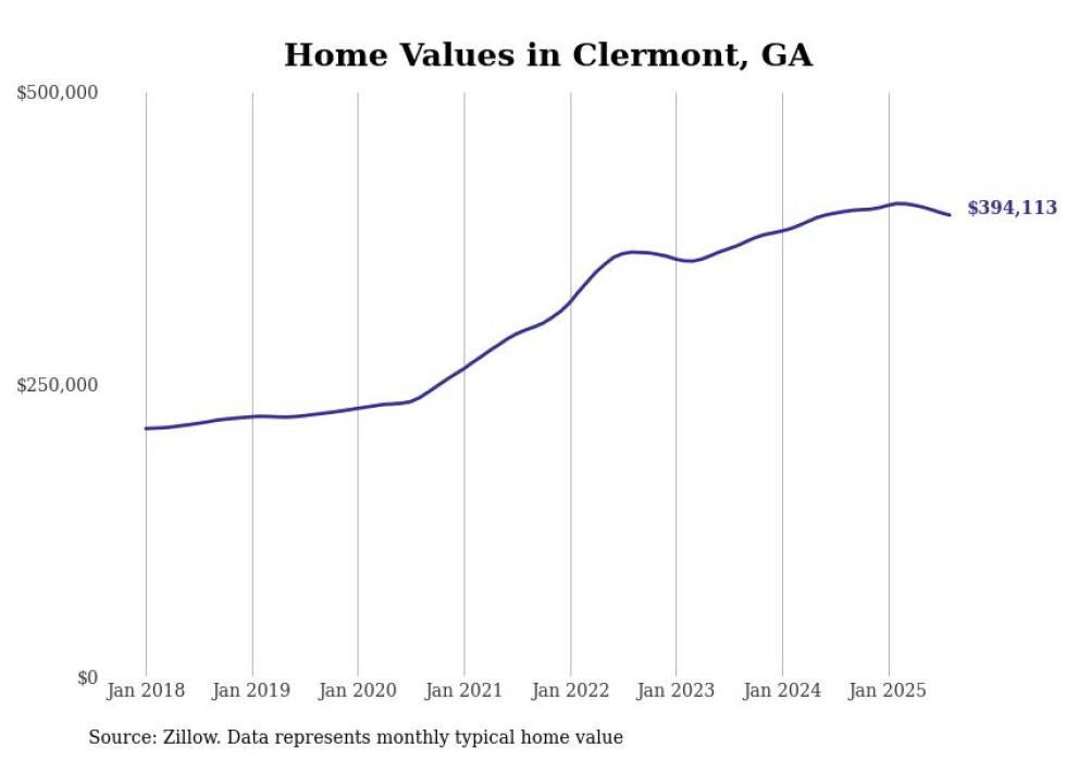 Stacker compiled a list of cities with the most expensive homes in the Gainesville, GA metro area using data from Zillow. Charts show the monthly typical home value since January 2018.