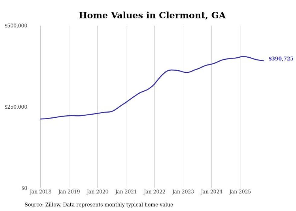 Stacker compiled a list of cities with the most expensive homes in the Gainesville, Georgia metro area using data from Zillow. Charts show the monthly typical home value since January 2018. All 7 cities and towns with data available were included in the list.