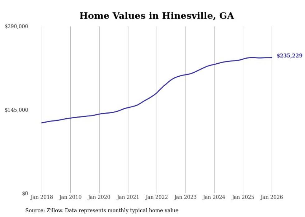 Cities with the fastest-growing home prices in the Hinesville metro area
