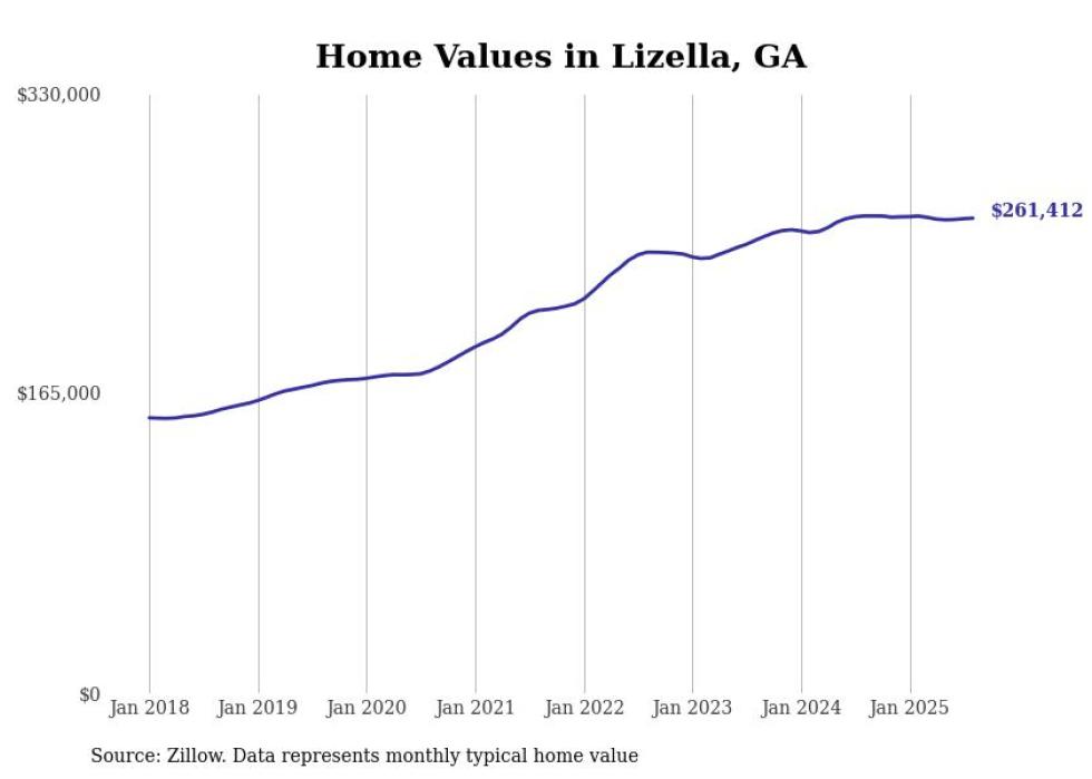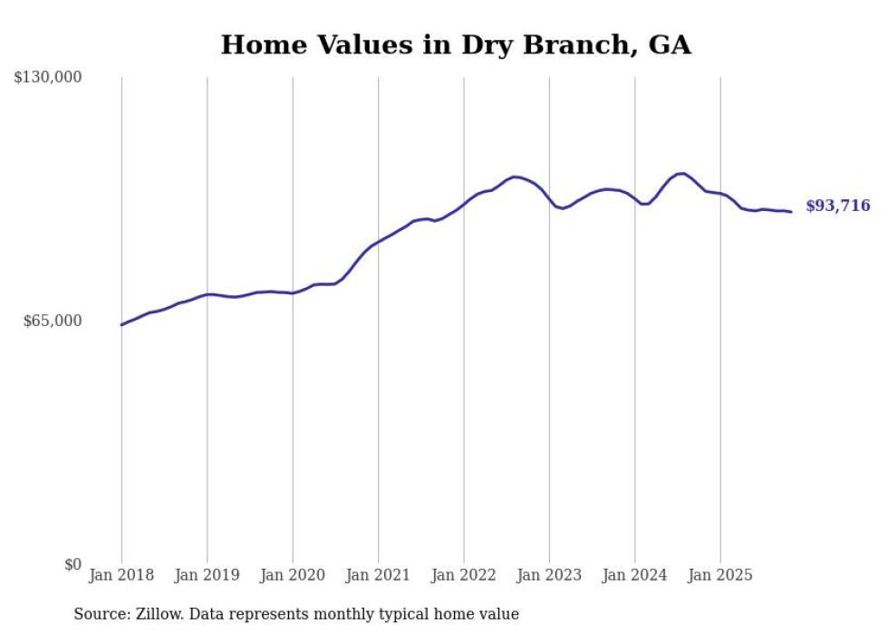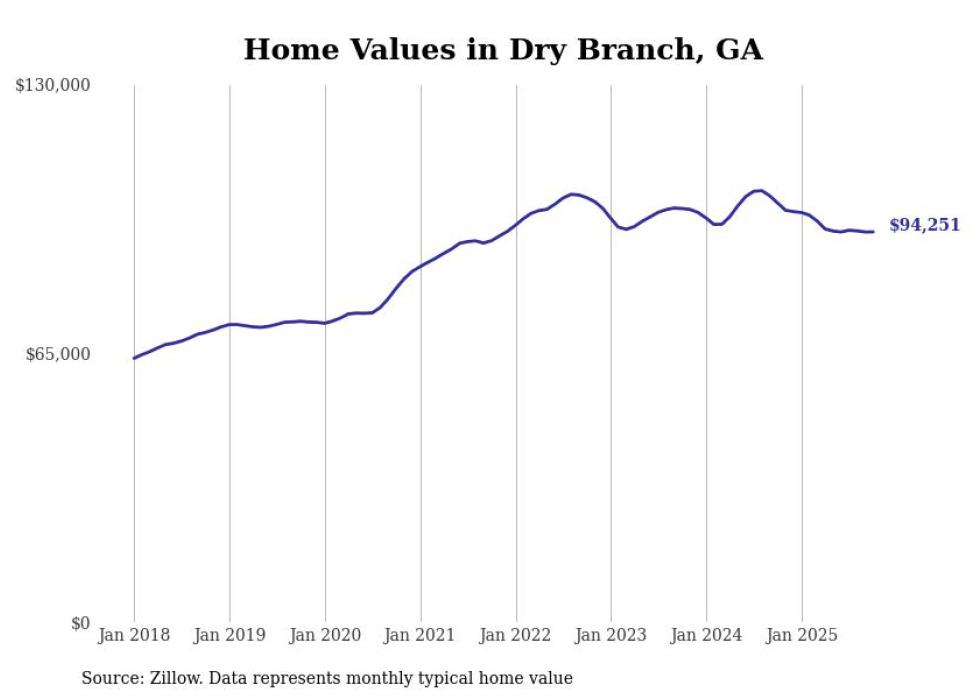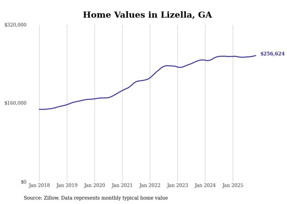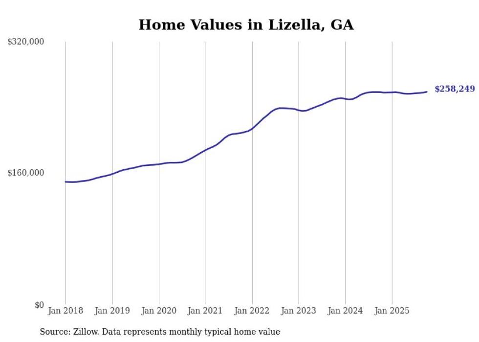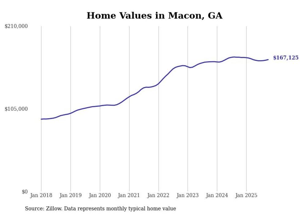 Stacker compiled a list of cities with the most expensive homes in the Macon-Bibb County, GA metro area using data from Zillow. Charts show the monthly typical home value since January 2018.