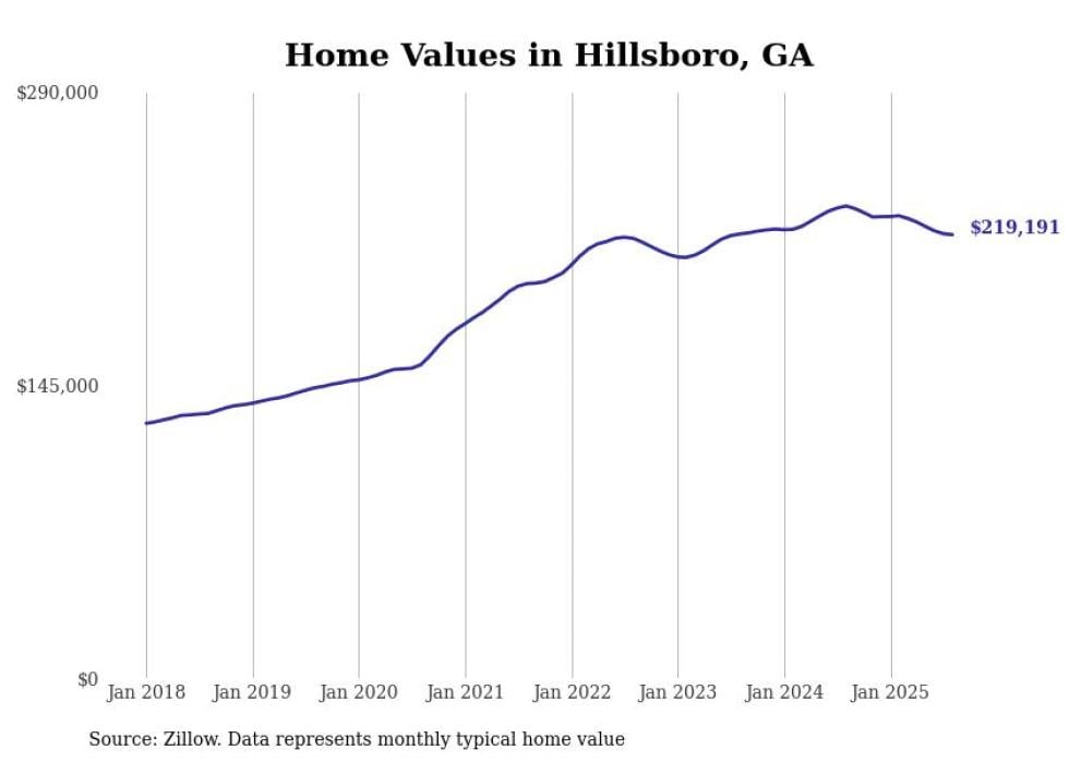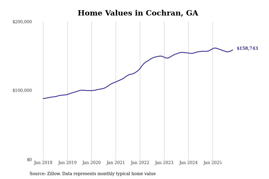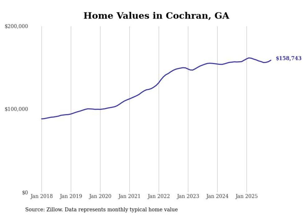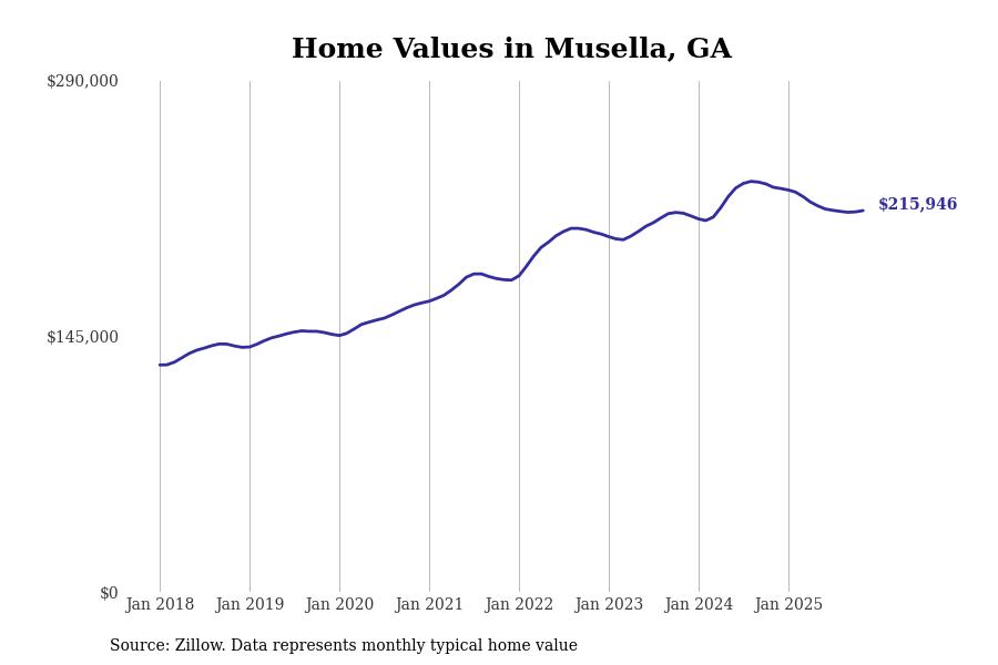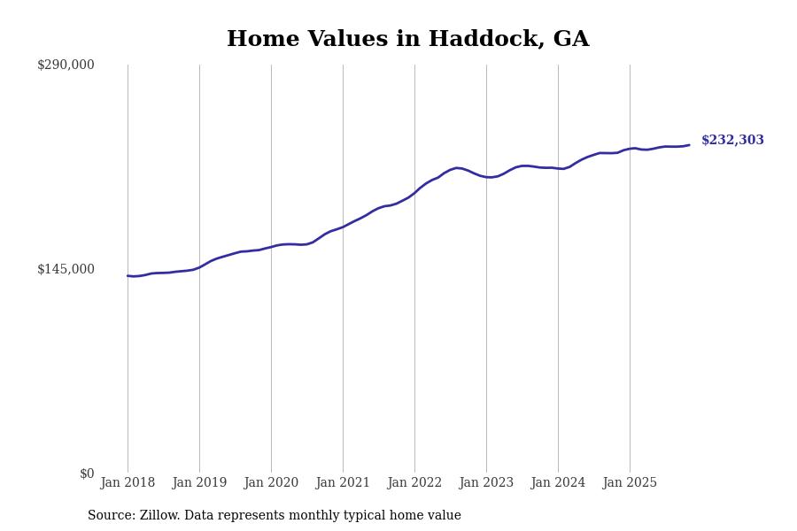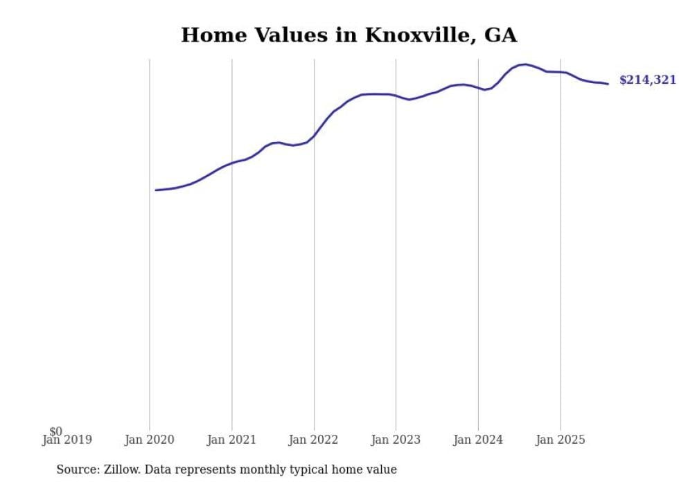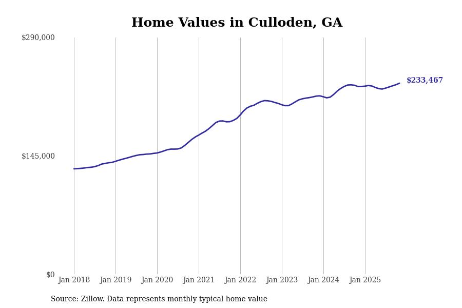Stacker compiled a list of cities with the most expensive homes in the Macon-Bibb County, GA metro area using data from Zillow. Charts show the monthly typical home value since January 2018.