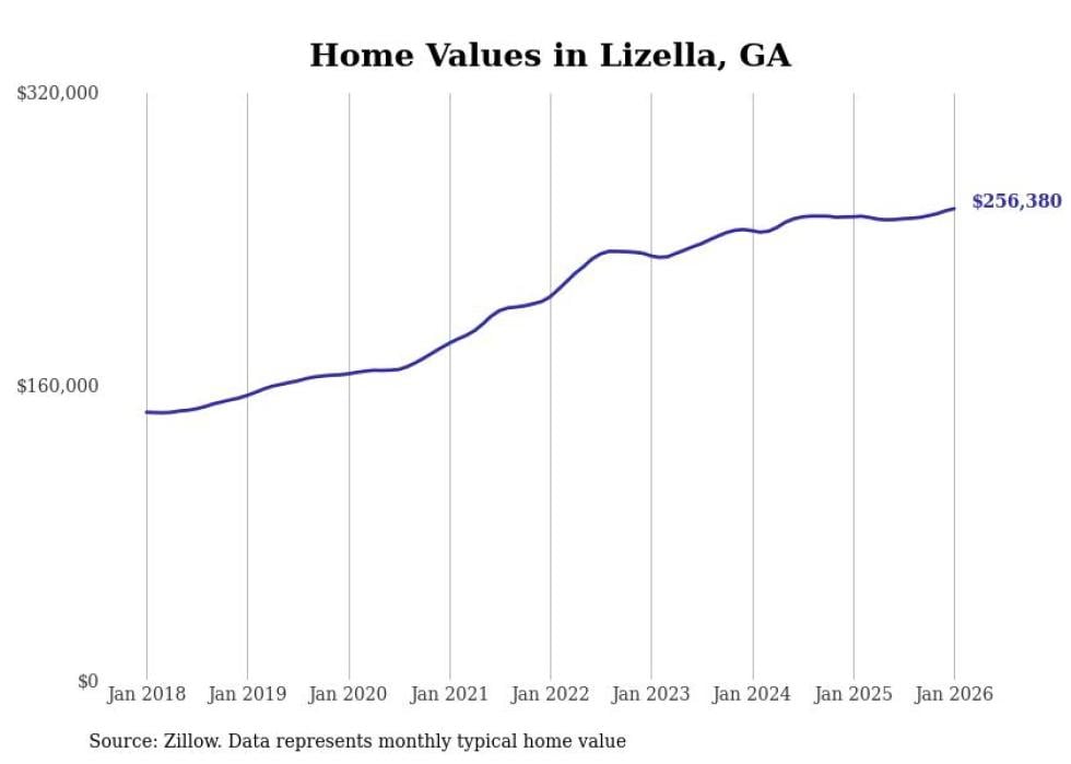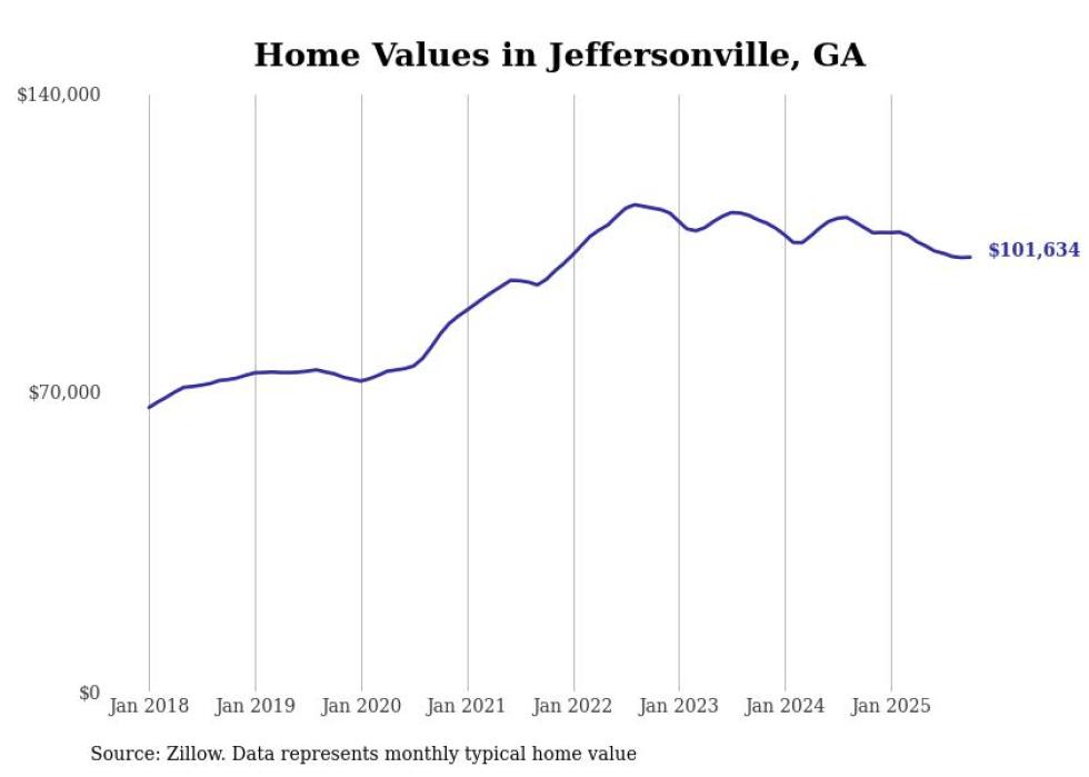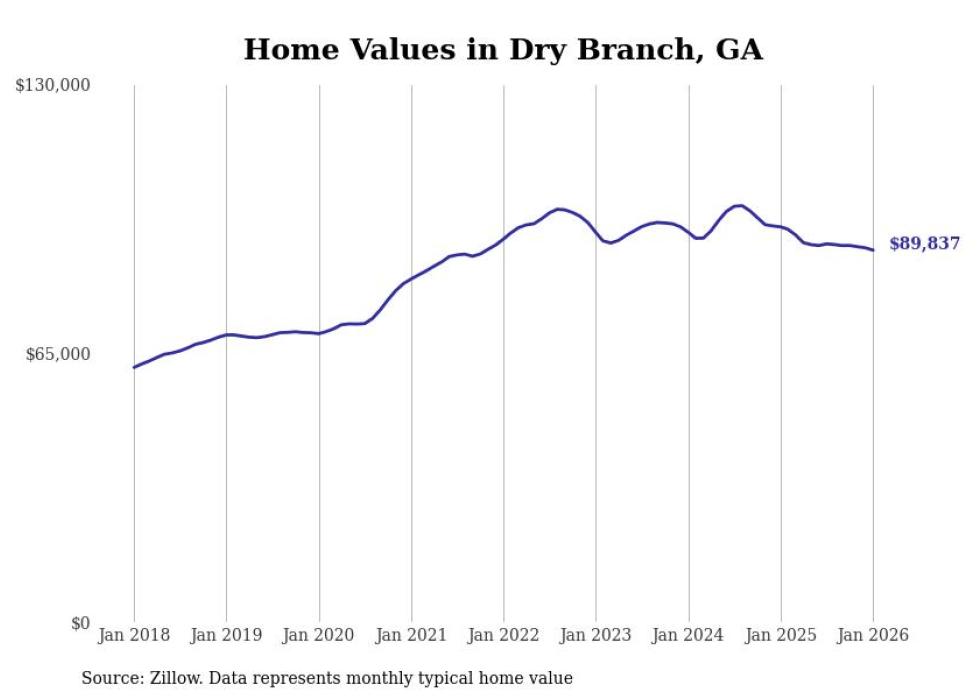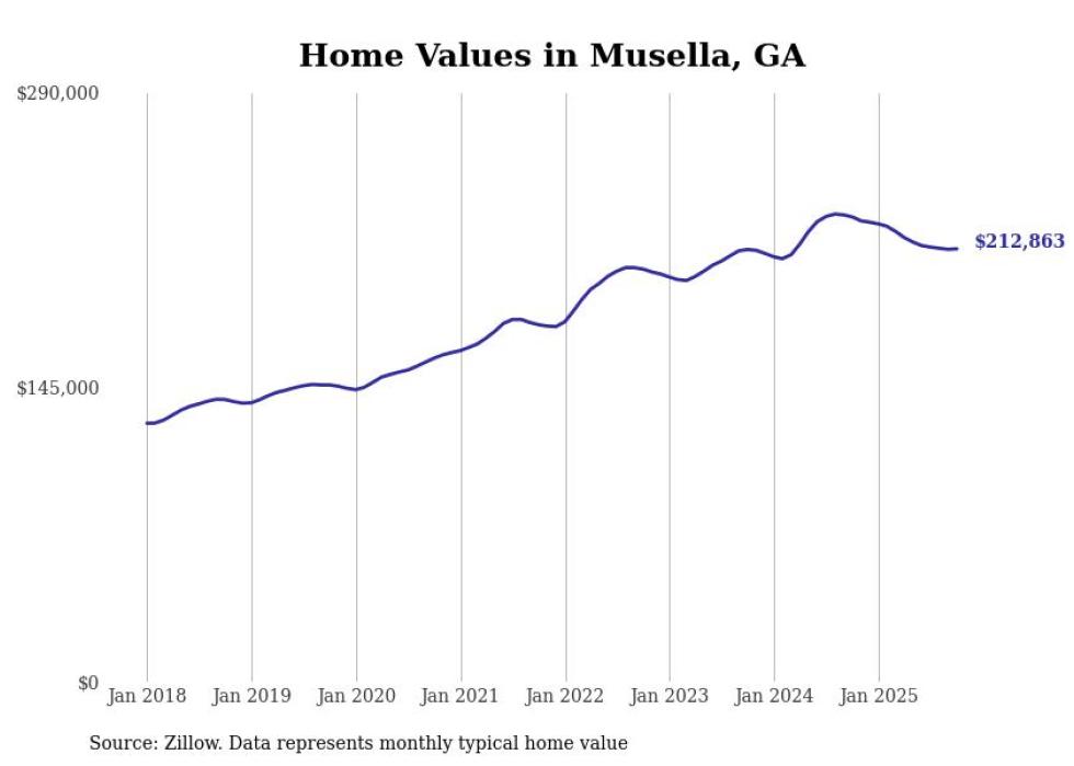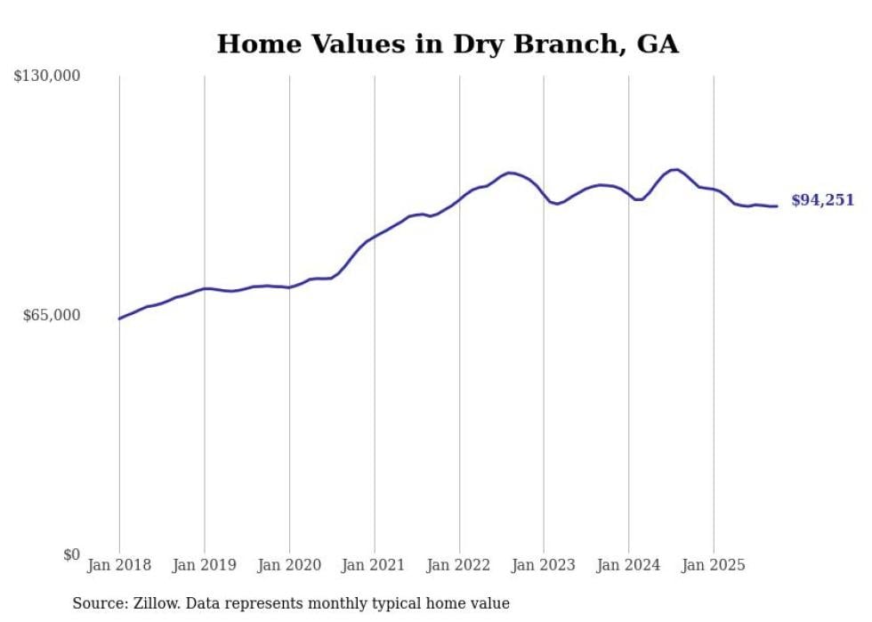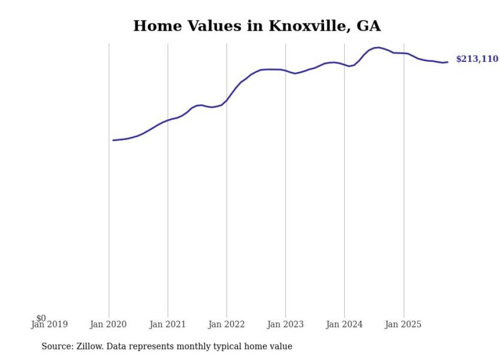 Stacker compiled a list of cities with the most expensive homes in the Macon metro area using data from Zillow. Charts show the monthly typical home value since January 2018. All 14 cities and towns with data available were included in the list.
