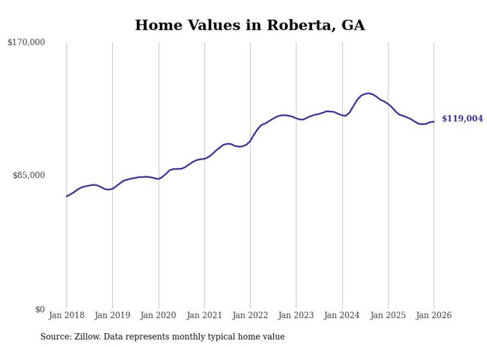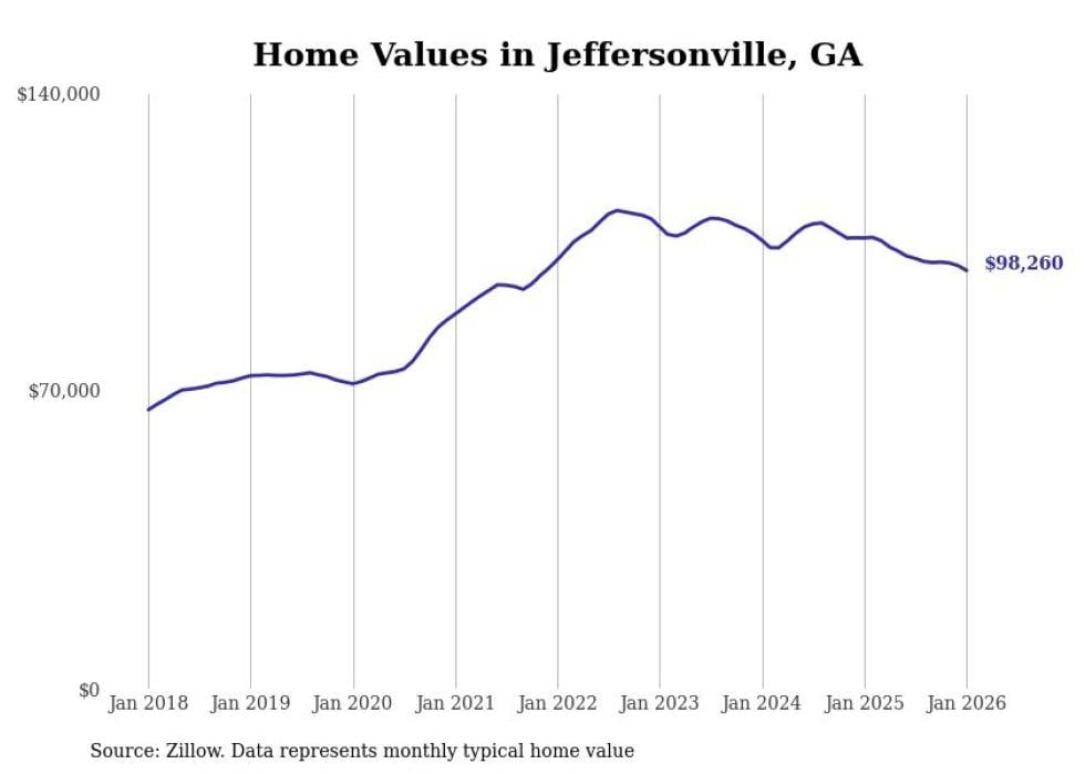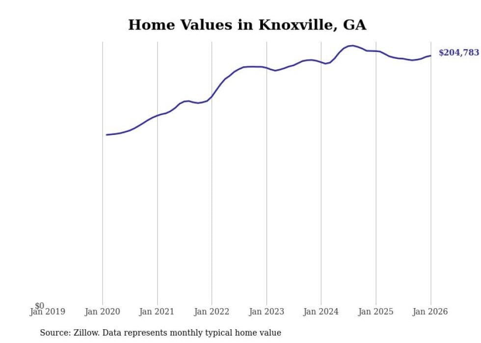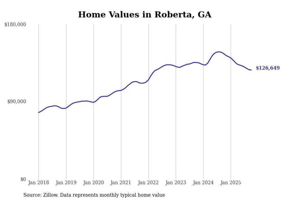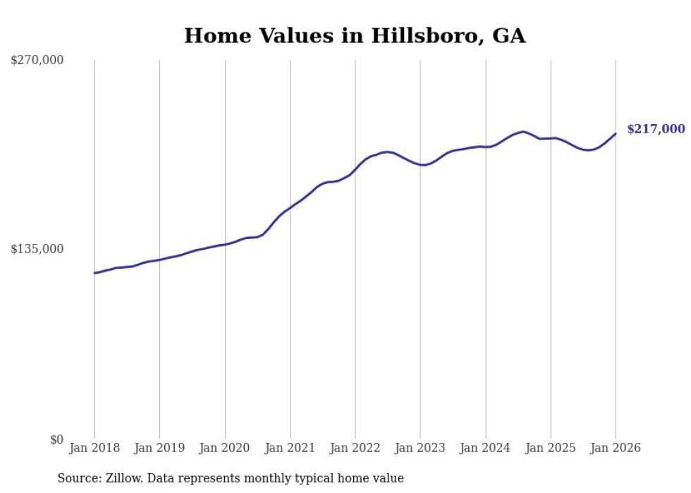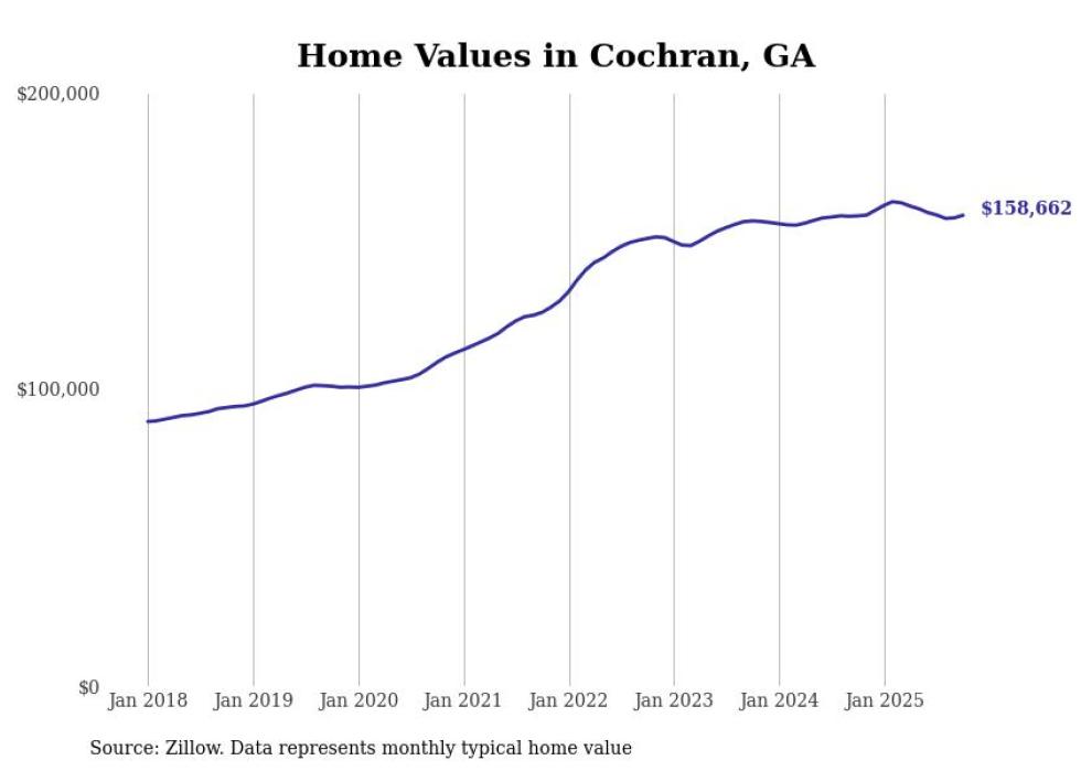 Stacker compiled a list of cities with the most expensive homes in the Macon metro area using data from Zillow. Charts show the monthly typical home value since January 2018. All 14 cities and towns with data available were included in the list.