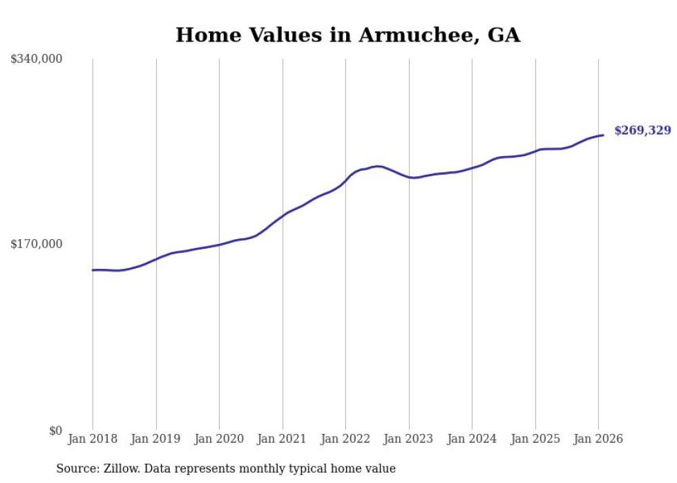 Stacker compiled a list of cities with the most expensive homes in the Rome, GA metro area using data from Zillow. Charts show the monthly typical home value since January 2018.