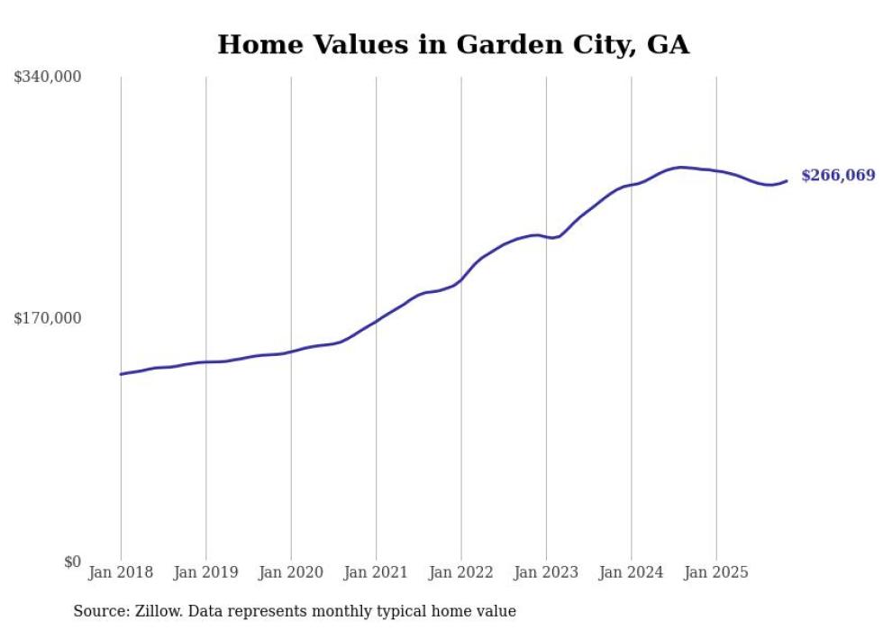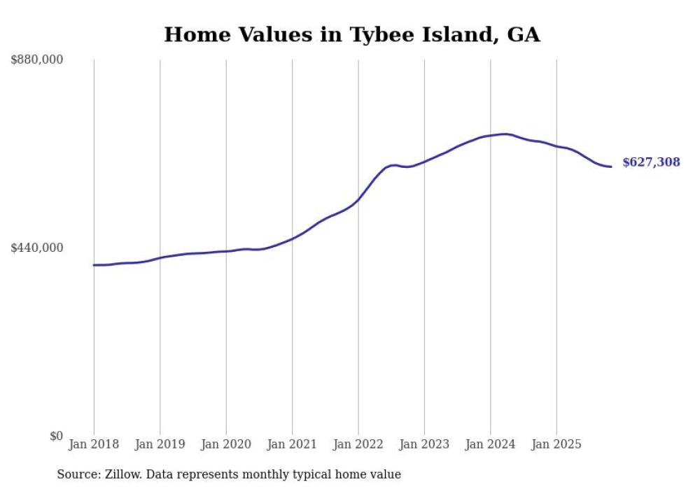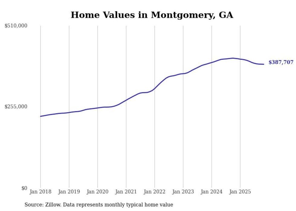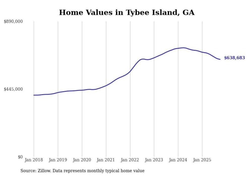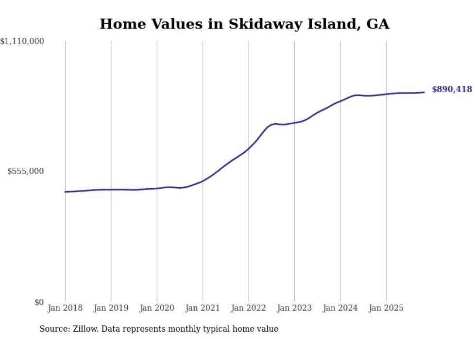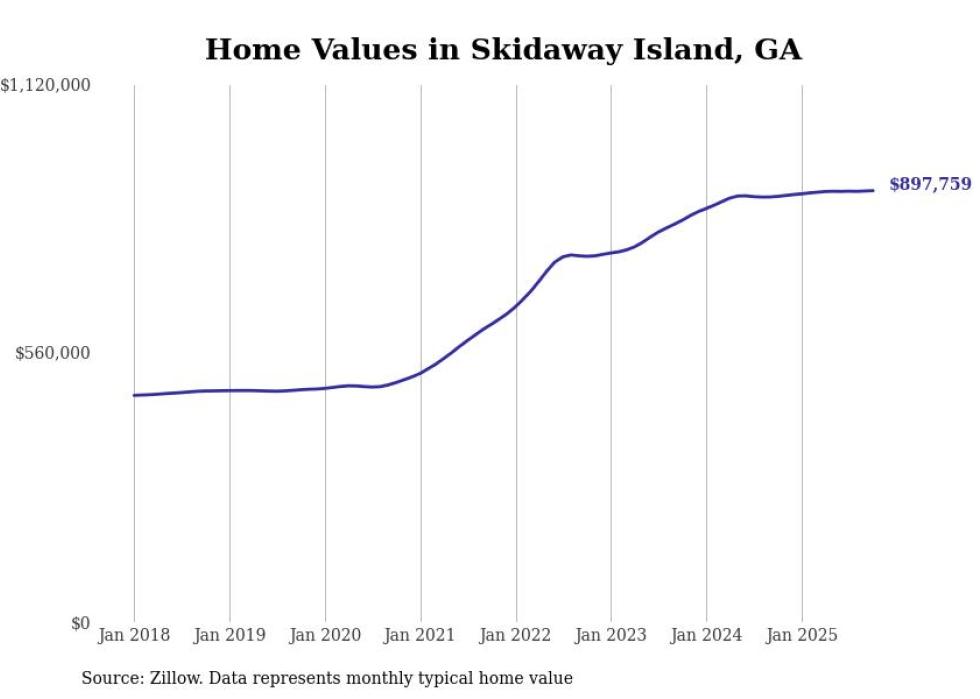 Stacker compiled a list of cities with the most expensive homes in the Savannah, GA metro area using data from Zillow. Charts show the monthly typical home value since January 2018.