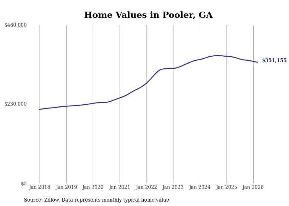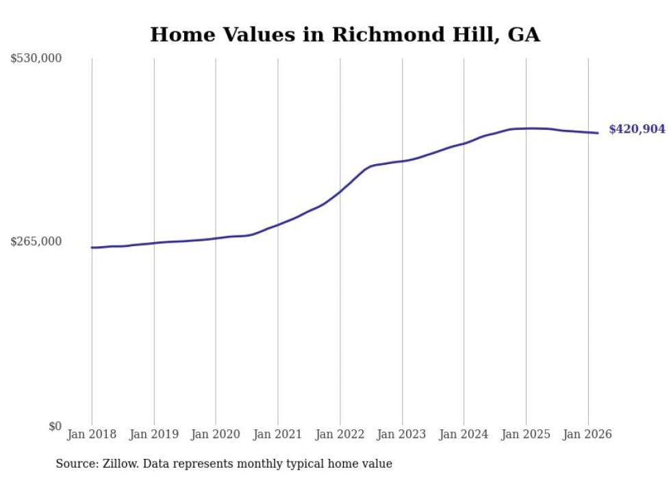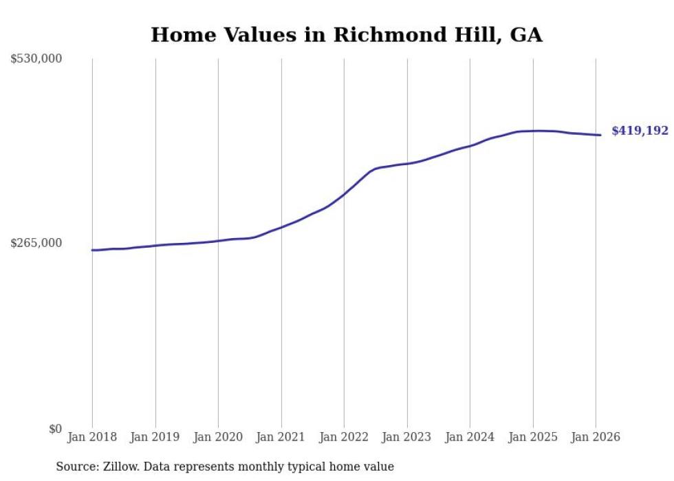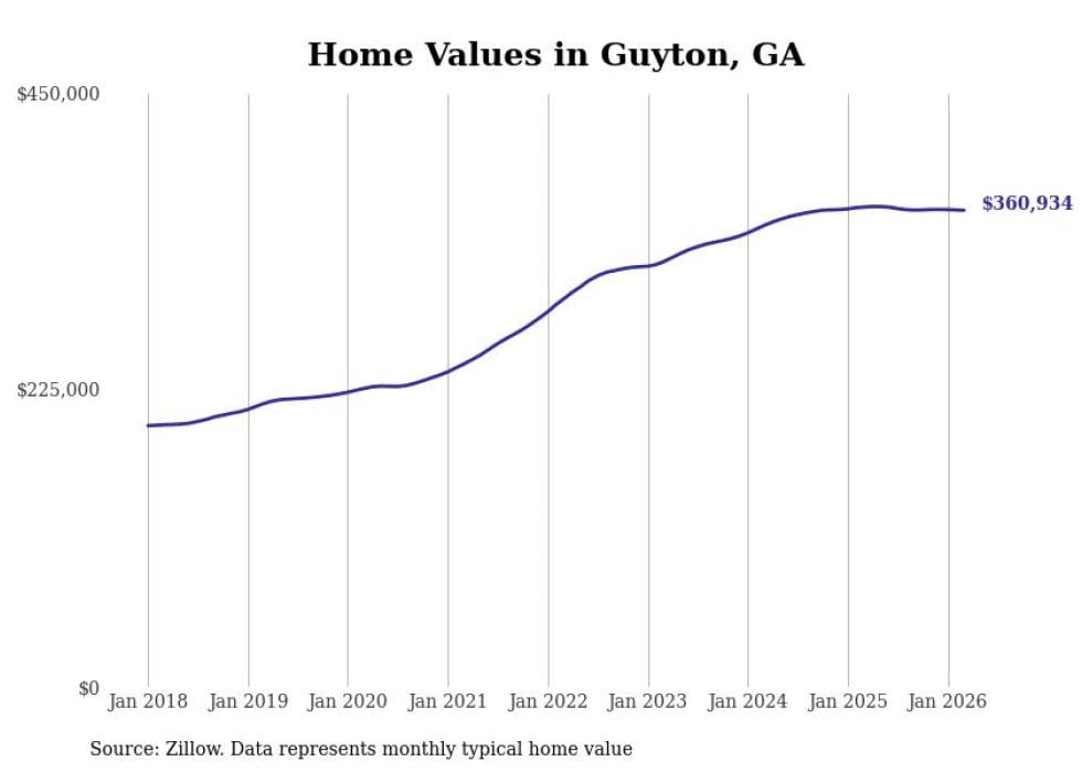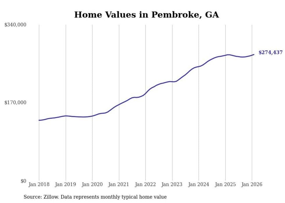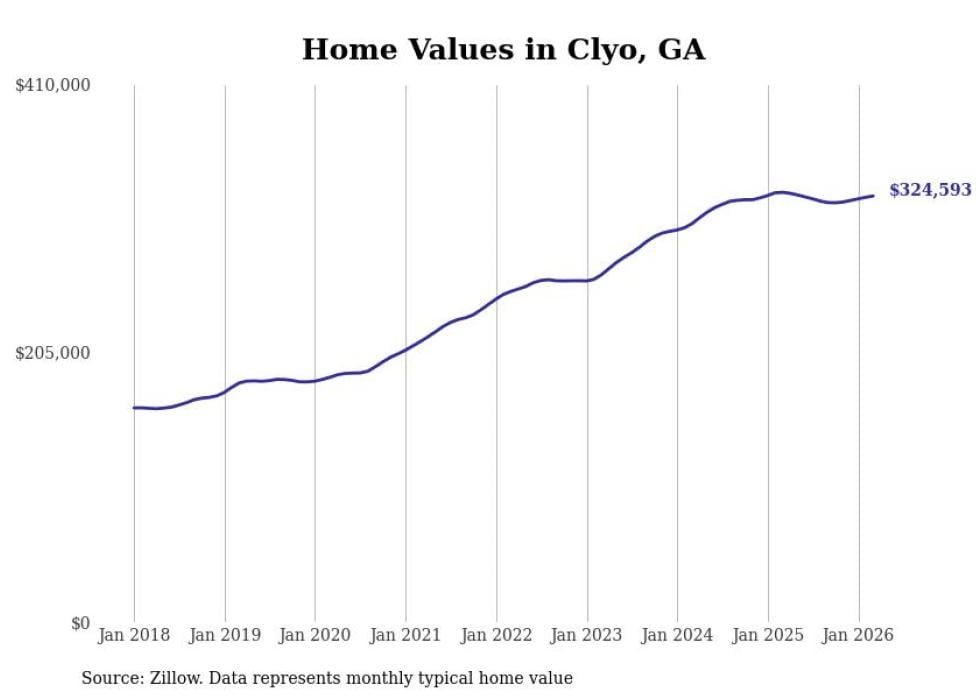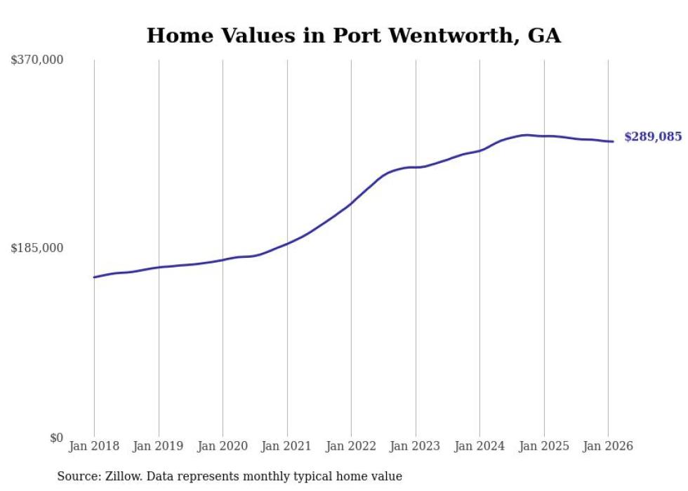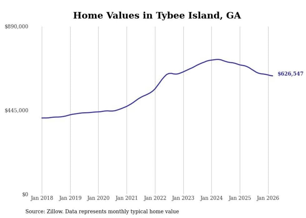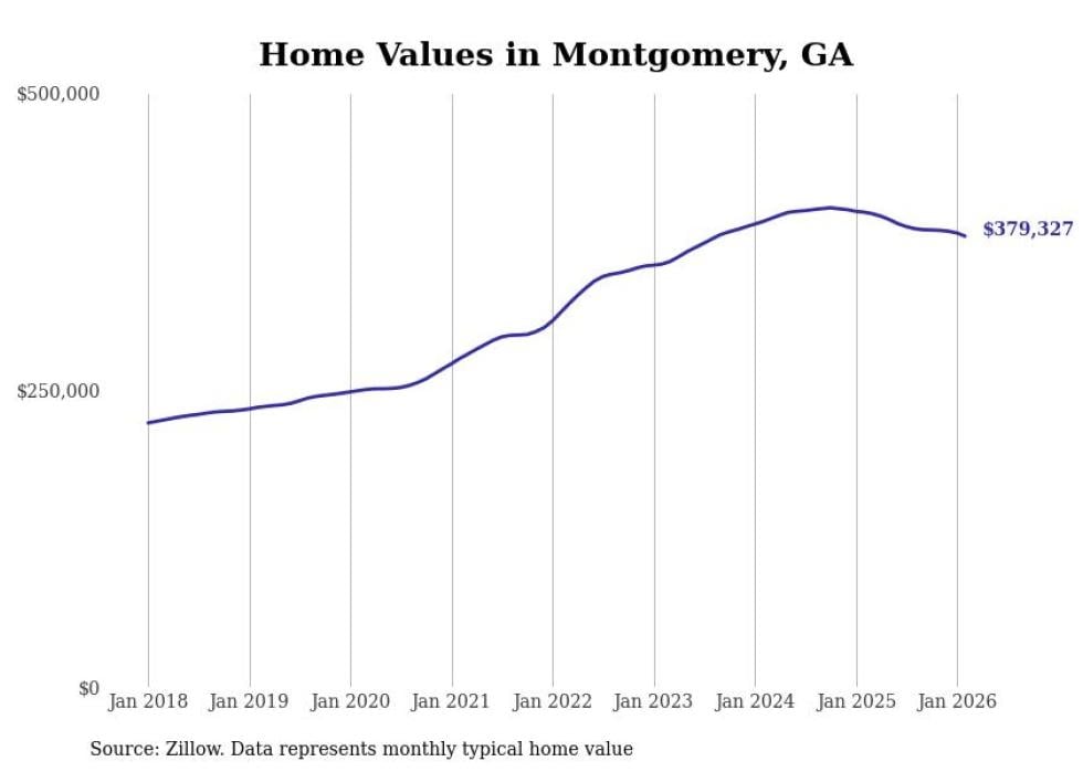 Stacker compiled a list of cities with the most expensive homes in the Savannah metro area using data from Zillow. Charts show the monthly typical home value since January 2018. All 16 cities and towns with data available were included in the list.