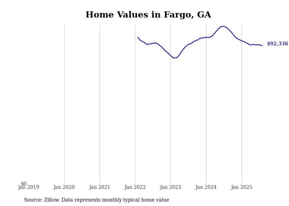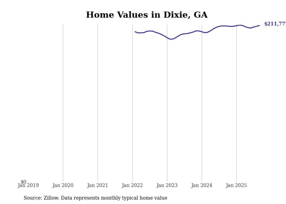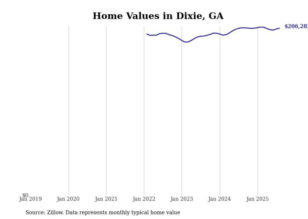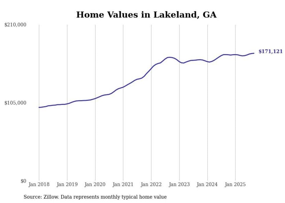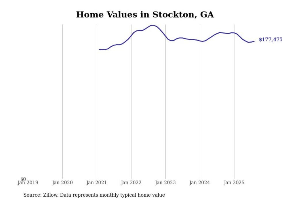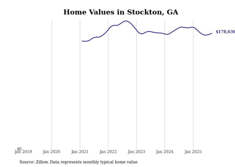 Stacker compiled a list of cities with the most expensive homes in the Valdosta metro area using data from Zillow. Charts show the monthly typical home value since January 2018. All 17 cities and towns with data available were included in the list.