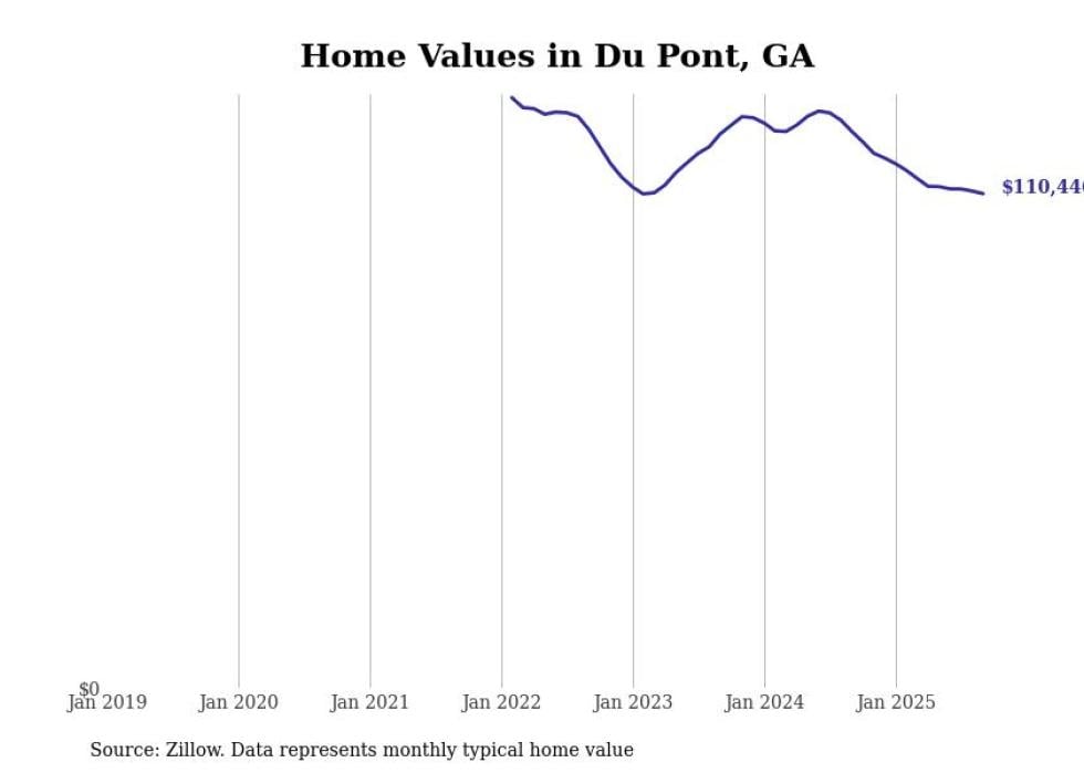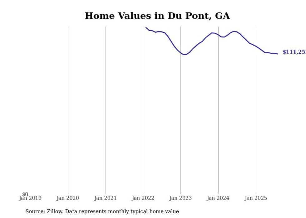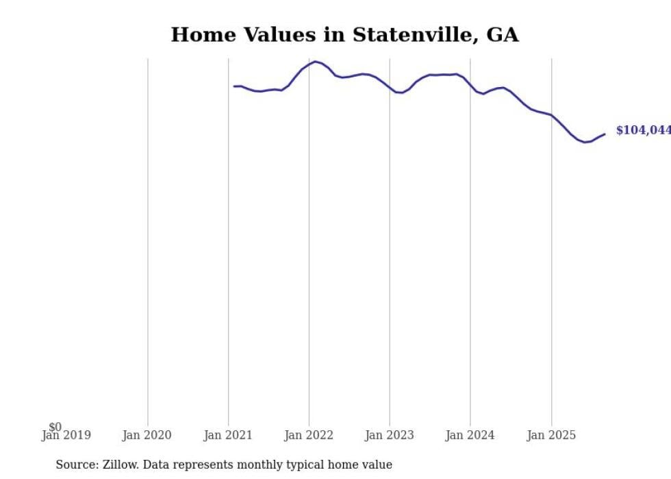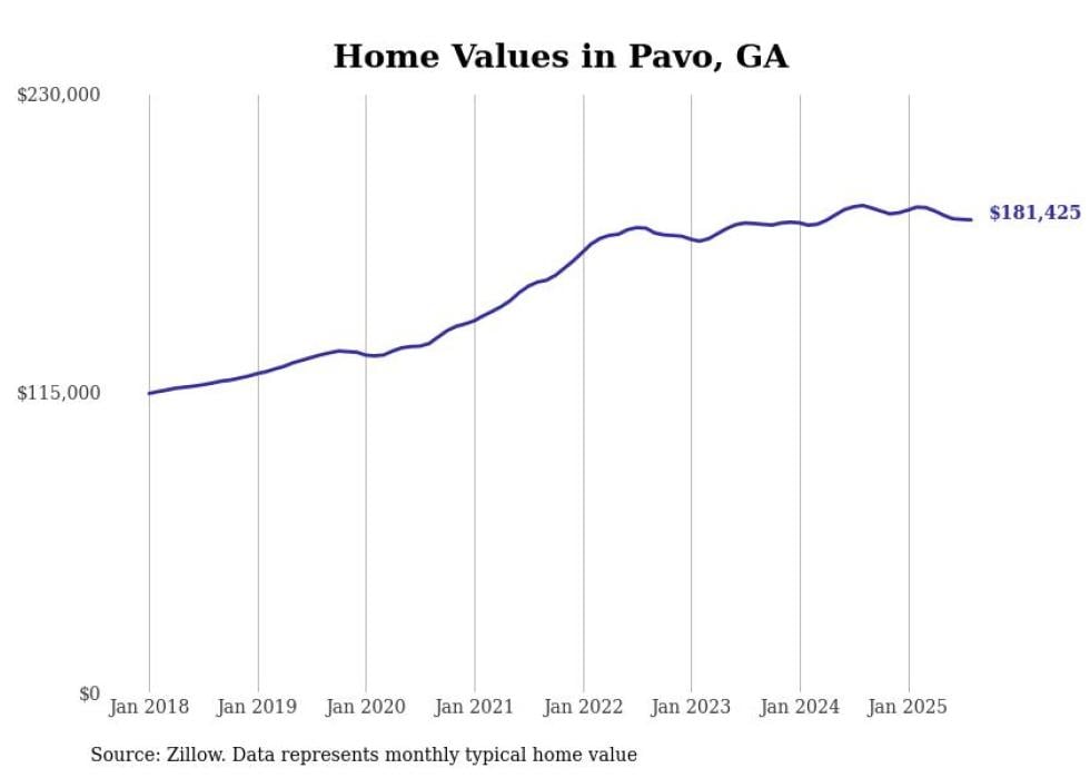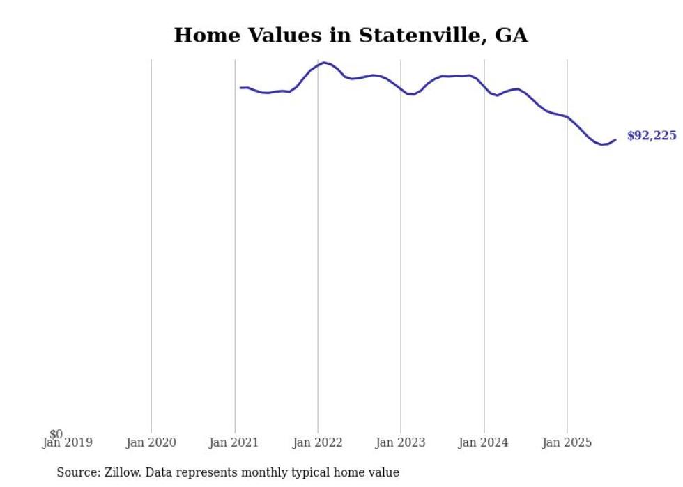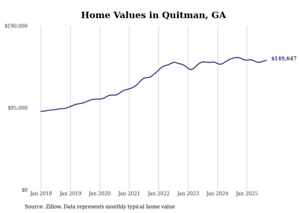 Stacker compiled a list of cities with the most expensive homes in the Valdosta metro area using data from Zillow. Charts show the monthly typical home value since January 2018. All 17 cities and towns with data available were included in the list.