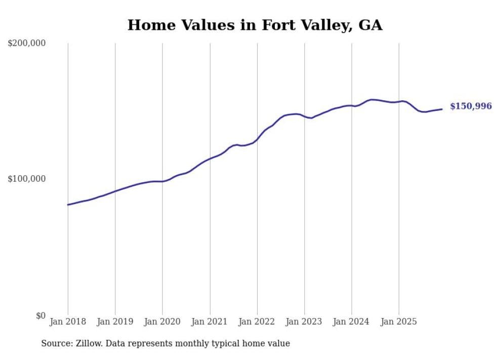 Cities with the fastest-growing home prices in the Warner Robins metro area