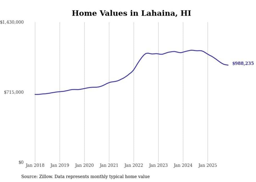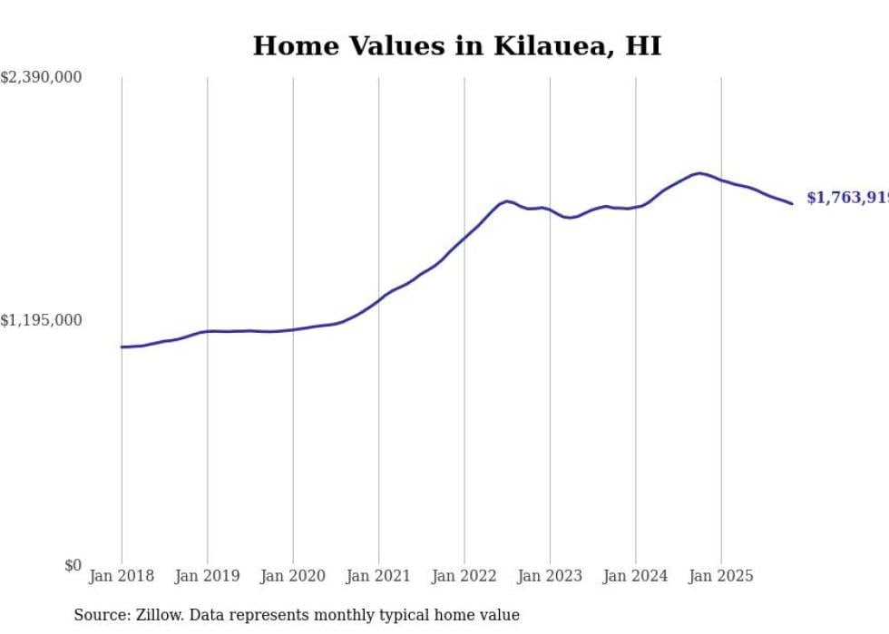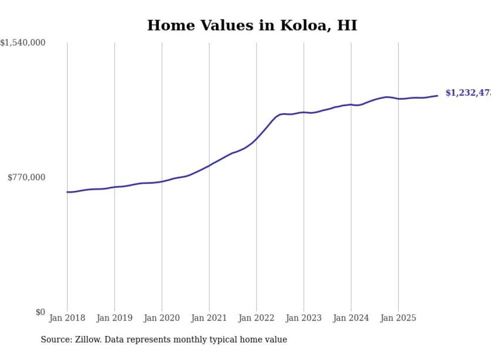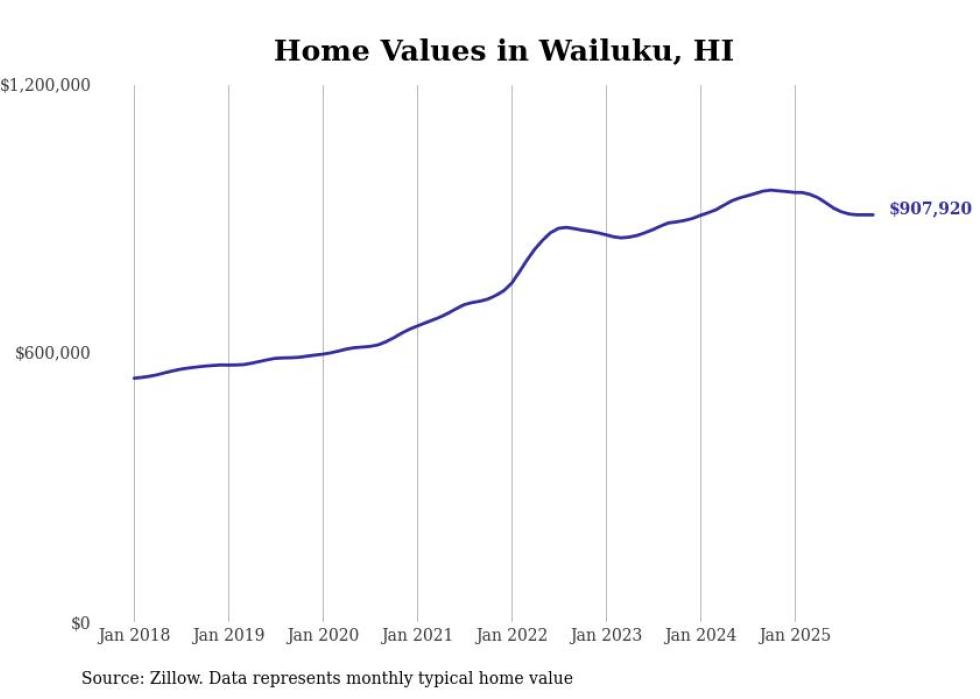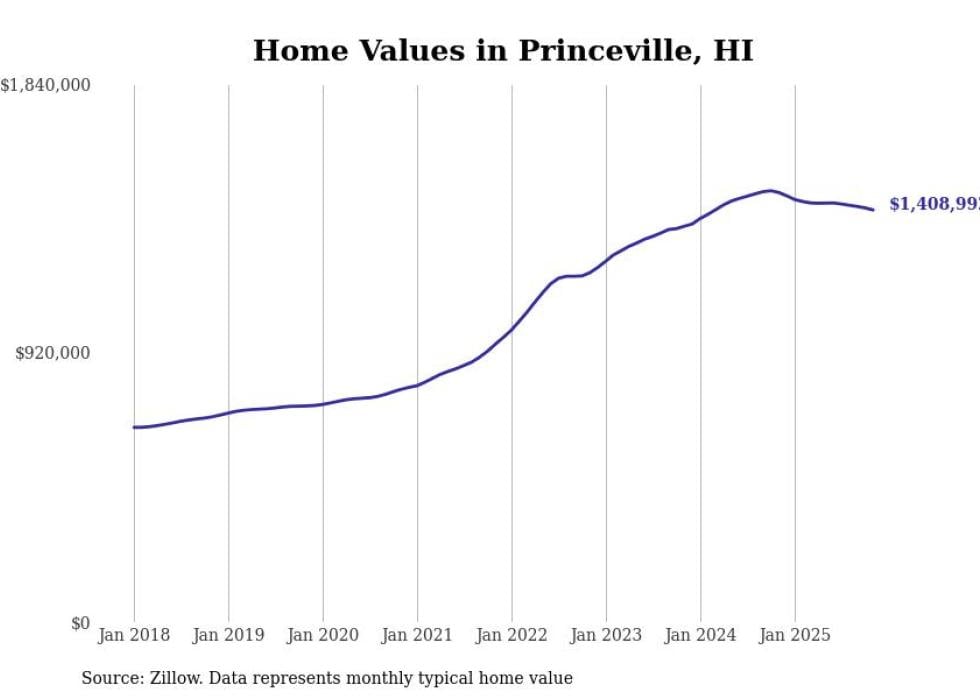 Stacker compiled a list of cities with the most expensive homes in Hawaii using data from Zillow. Cities are ranked by the Zillow Home Values Index for all homes as of November 2025. The charts in this story were created automatically using Matplotlib.