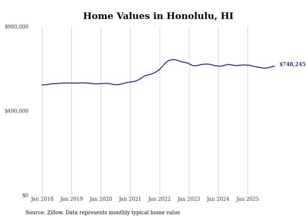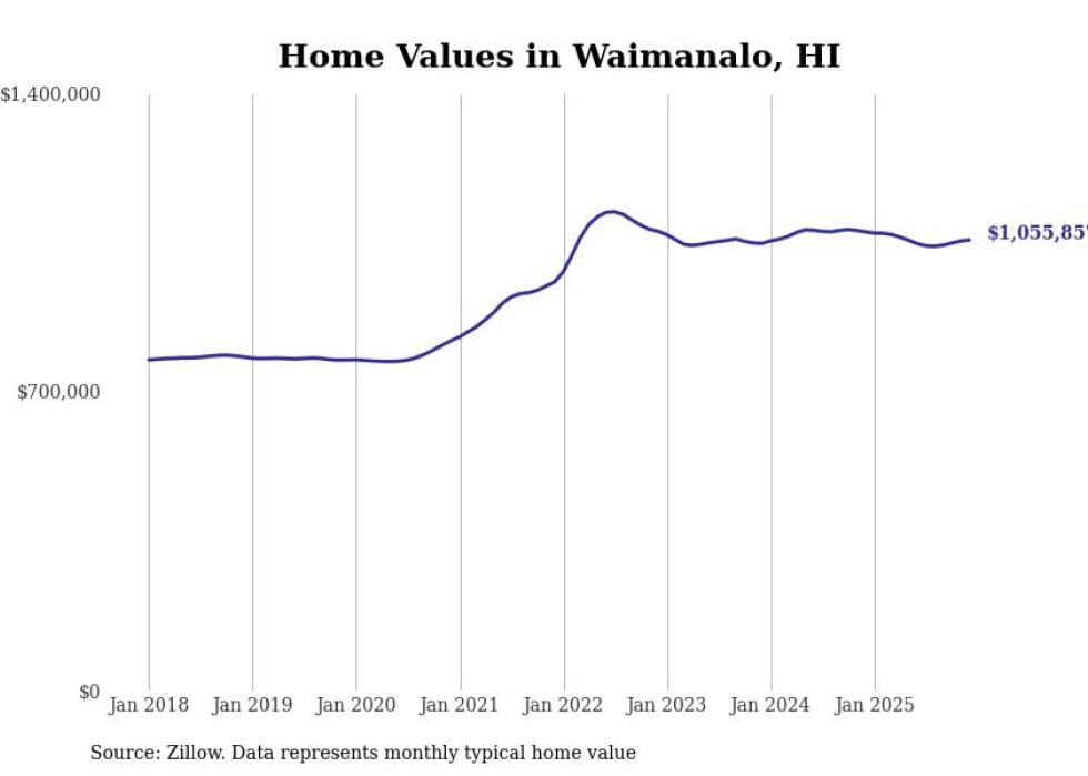 Stacker compiled a list of cities with the most expensive homes in the Urban Honolulu, HI metro area using data from Zillow. Charts show the monthly typical home value since January 2018.