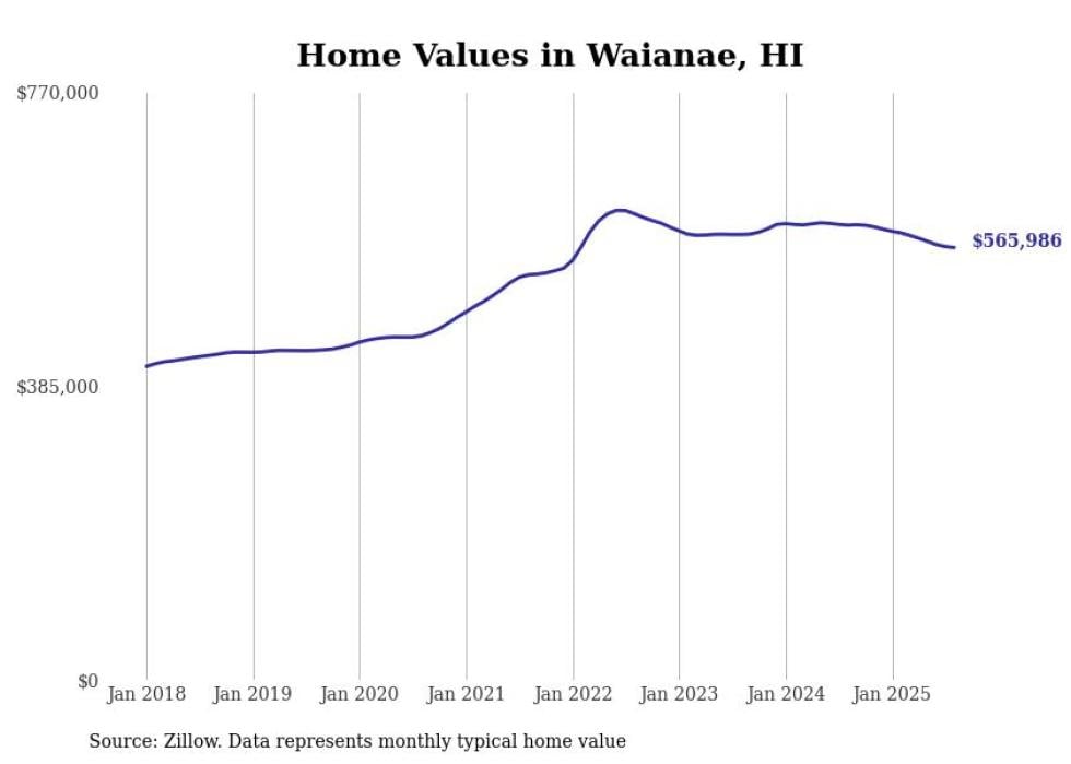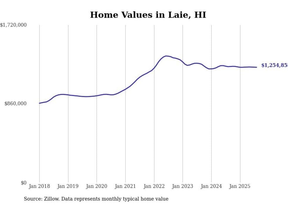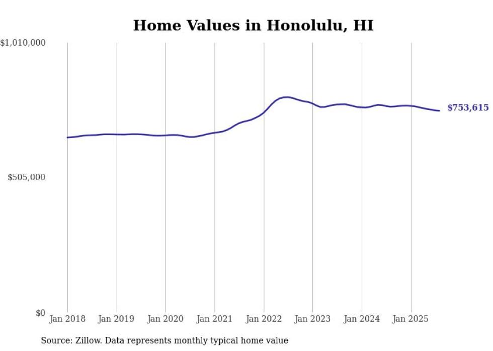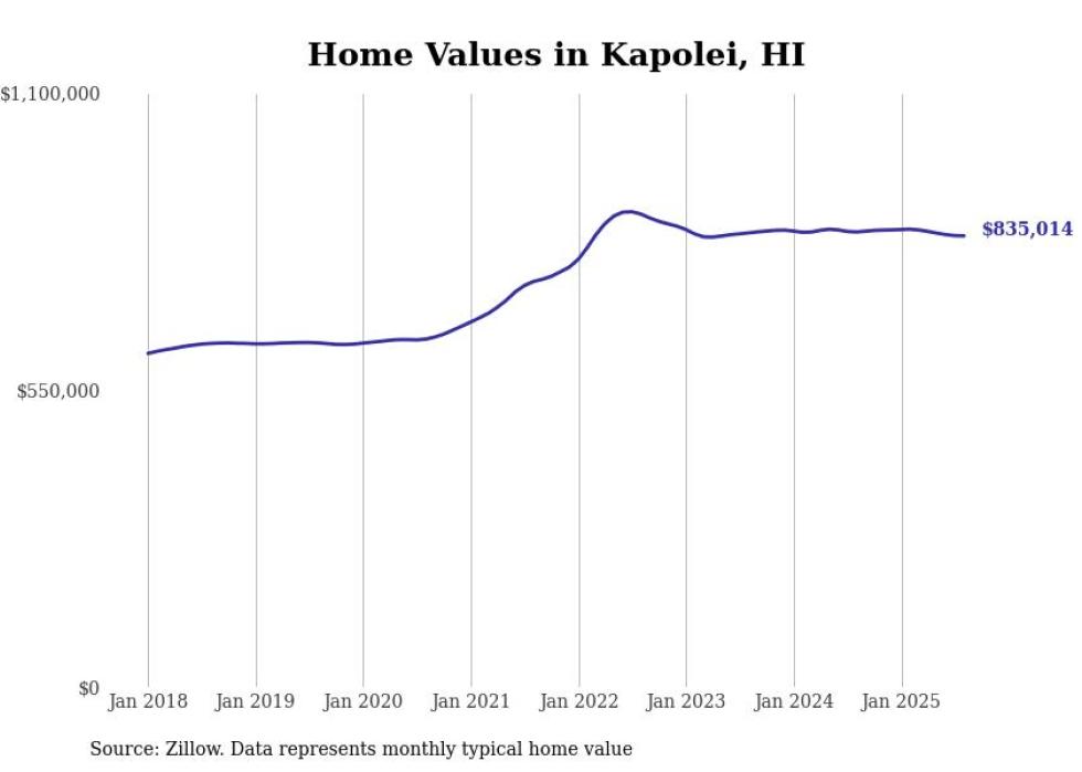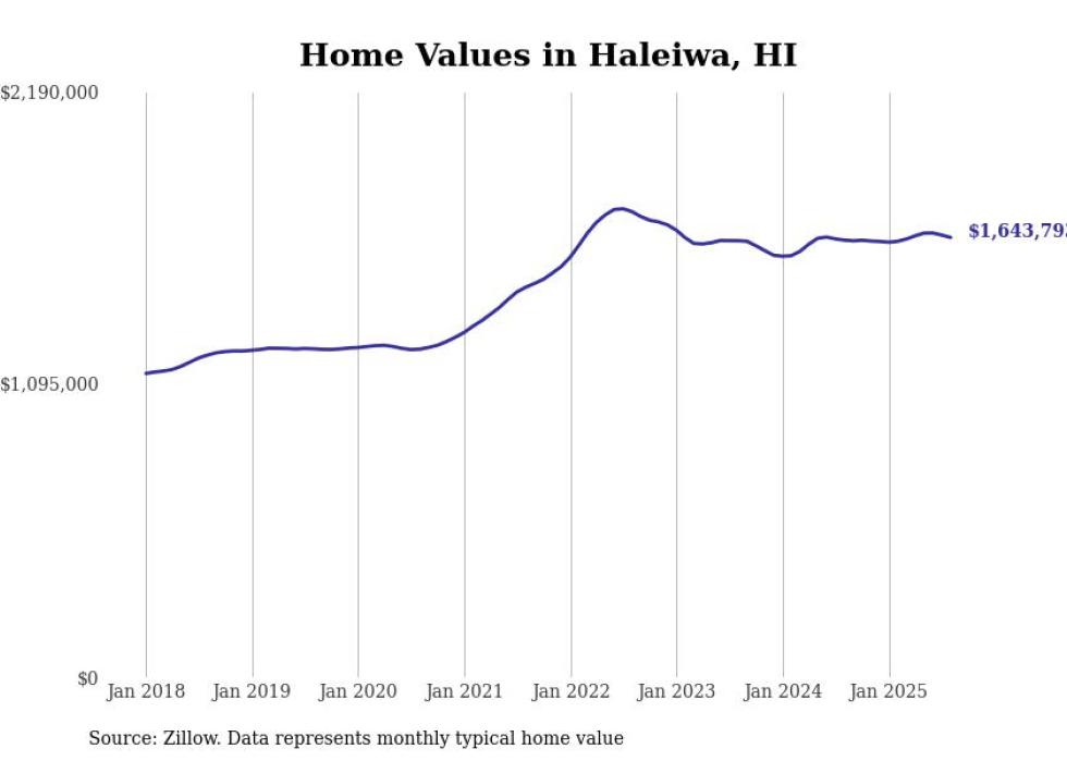 Stacker compiled a list of cities with the most expensive homes in the Honolulu metro area using data from Zillow. Charts show the monthly typical home value since January 2018. All 18 cities and towns with data available were included in the list.