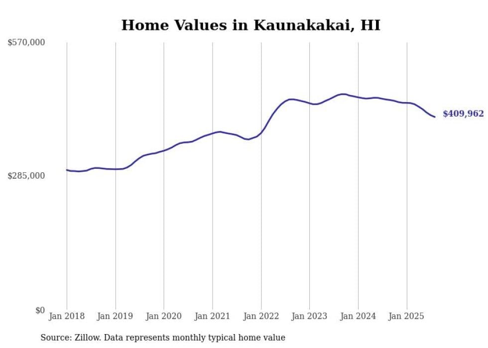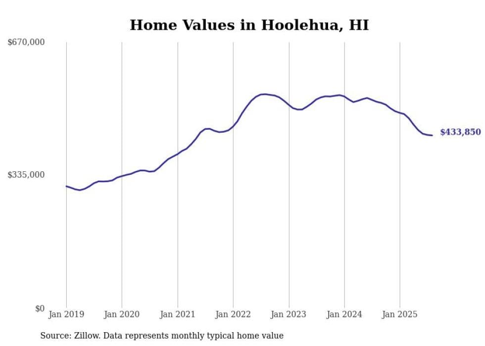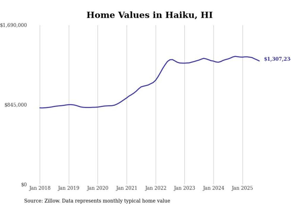 Stacker compiled a list of cities with the most expensive homes in the Kahului metro area using data from Zillow. Charts show the monthly typical home value since January 2018. All 13 cities and towns with data available were included in the list.
