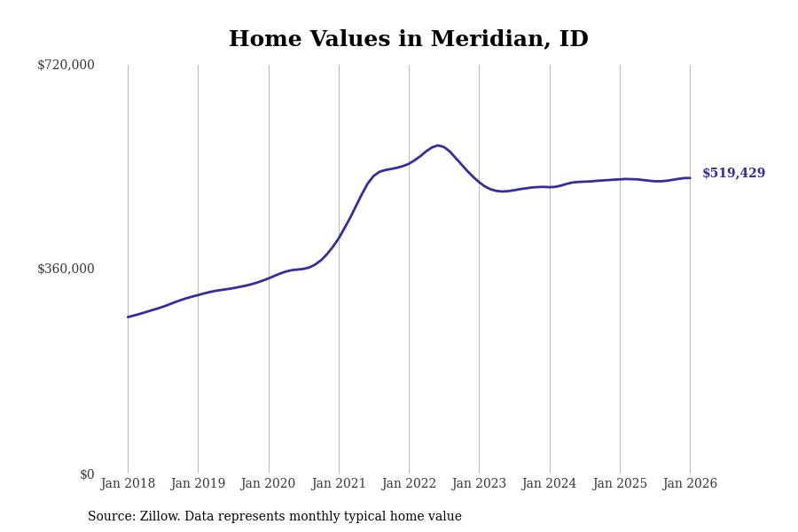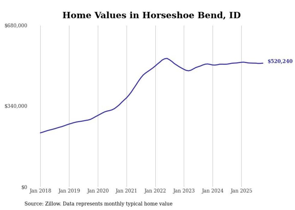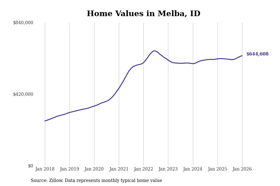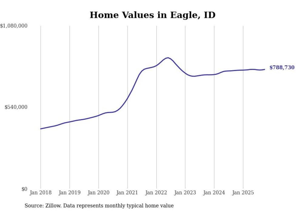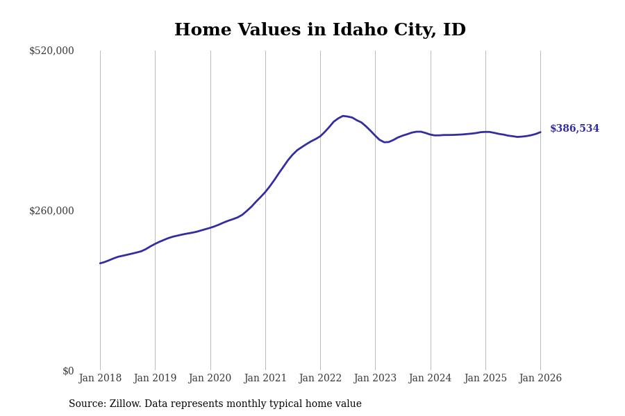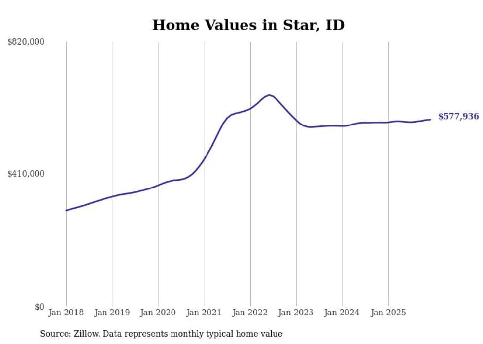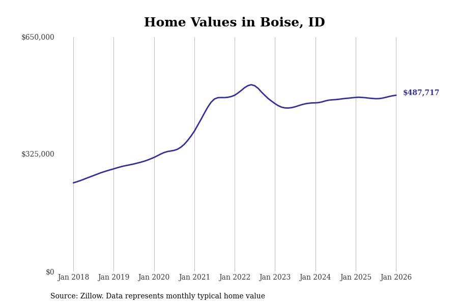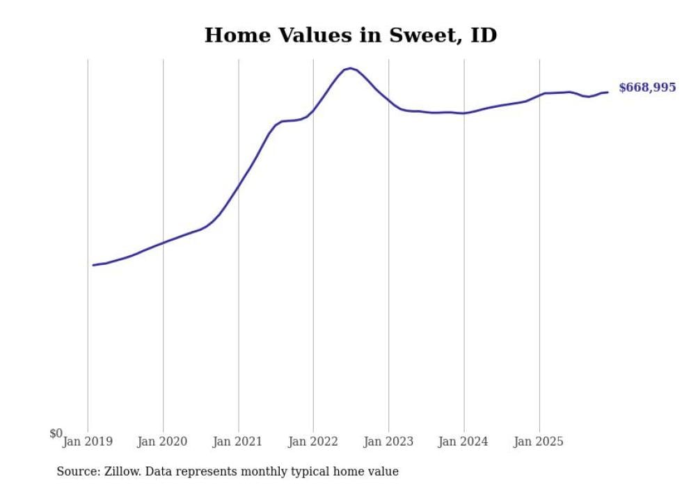 Stacker compiled a list of cities with the most expensive homes in the Boise City, ID metro area using data from Zillow. Charts show the monthly typical home value since January 2018.