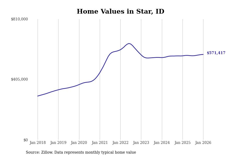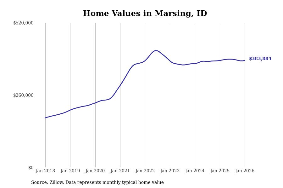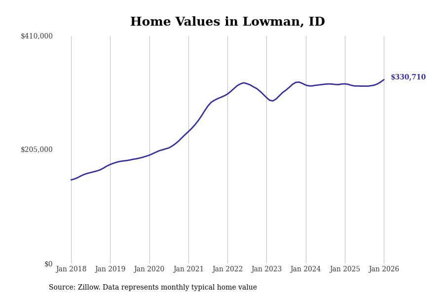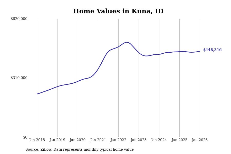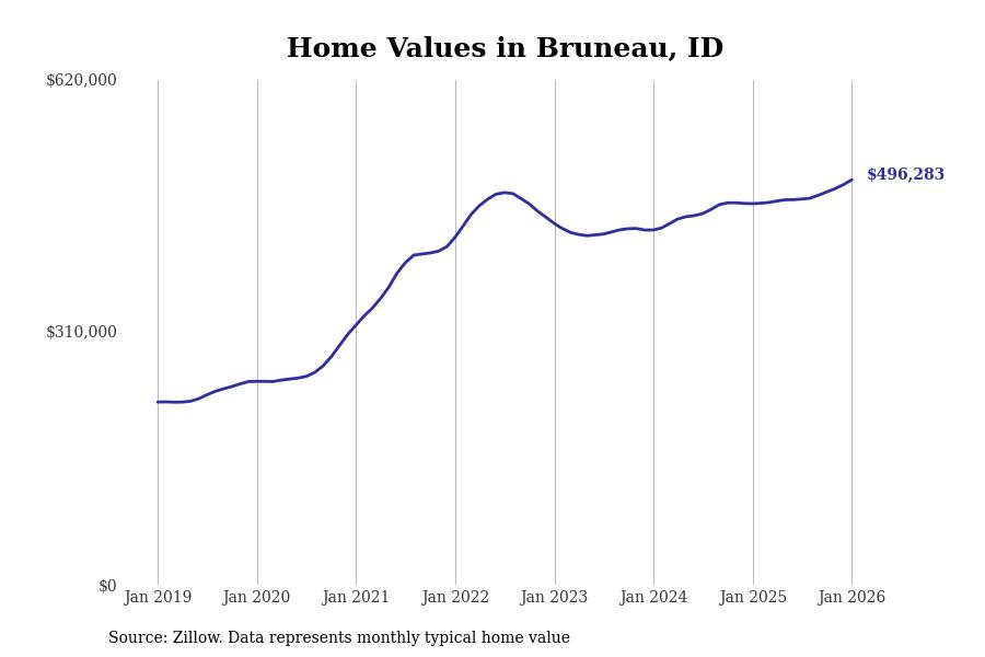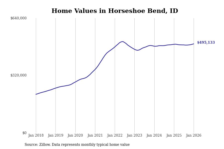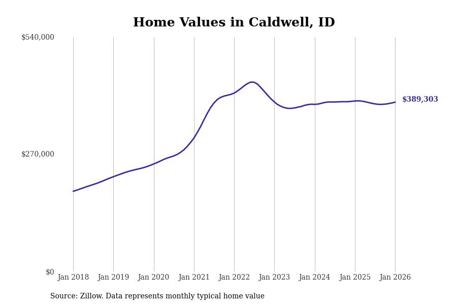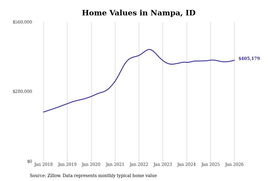 Stacker compiled a list of cities with the most expensive homes in the Boise City, ID metro area using data from Zillow. Charts show the monthly typical home value since January 2018.
