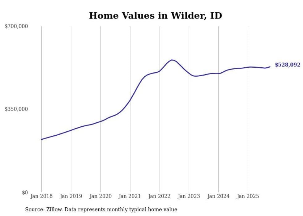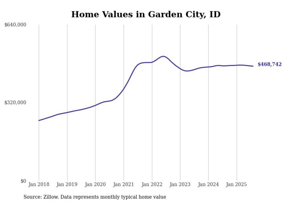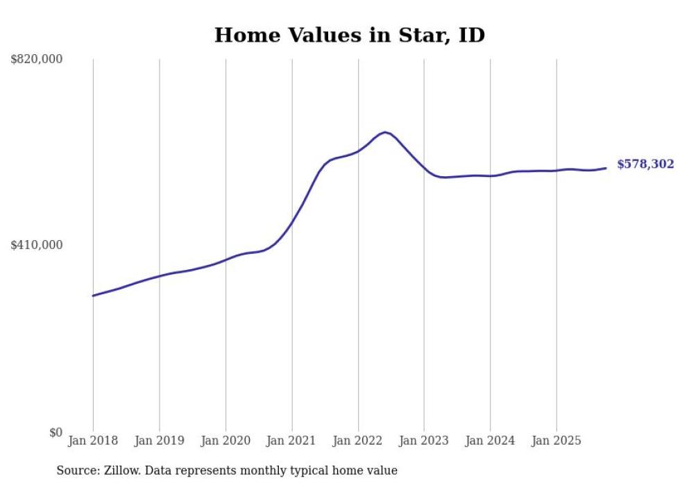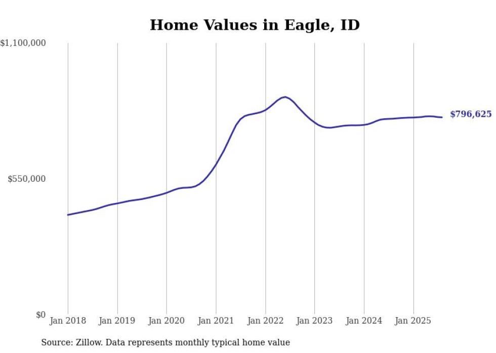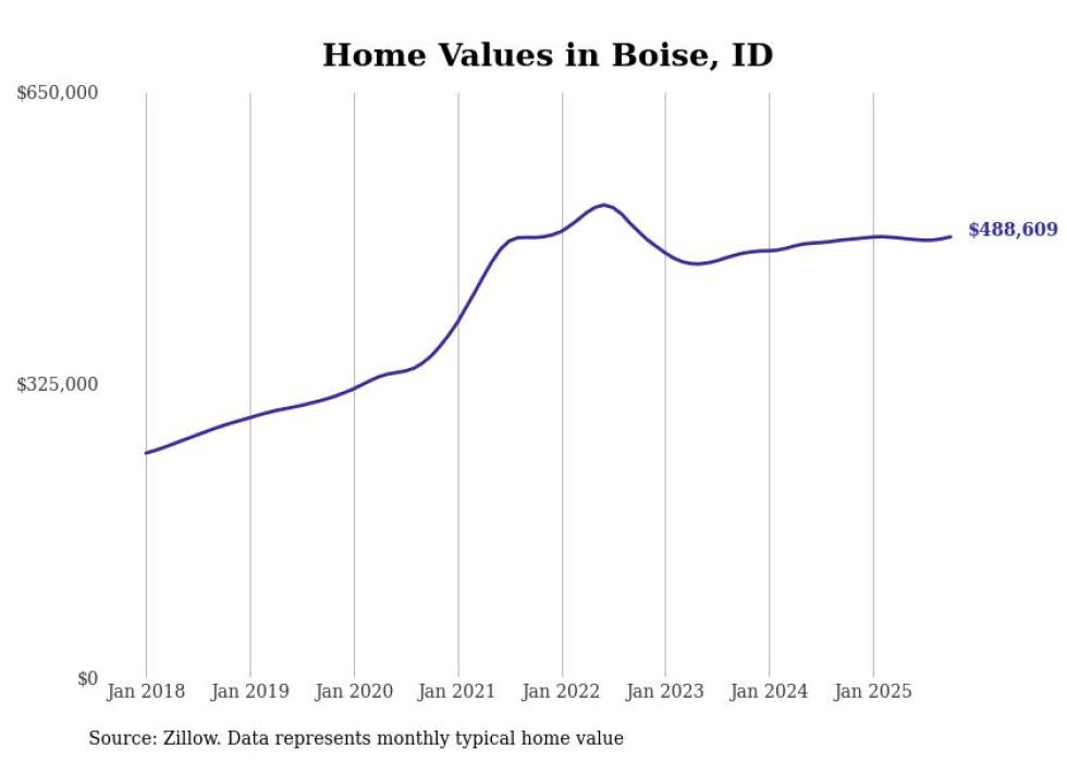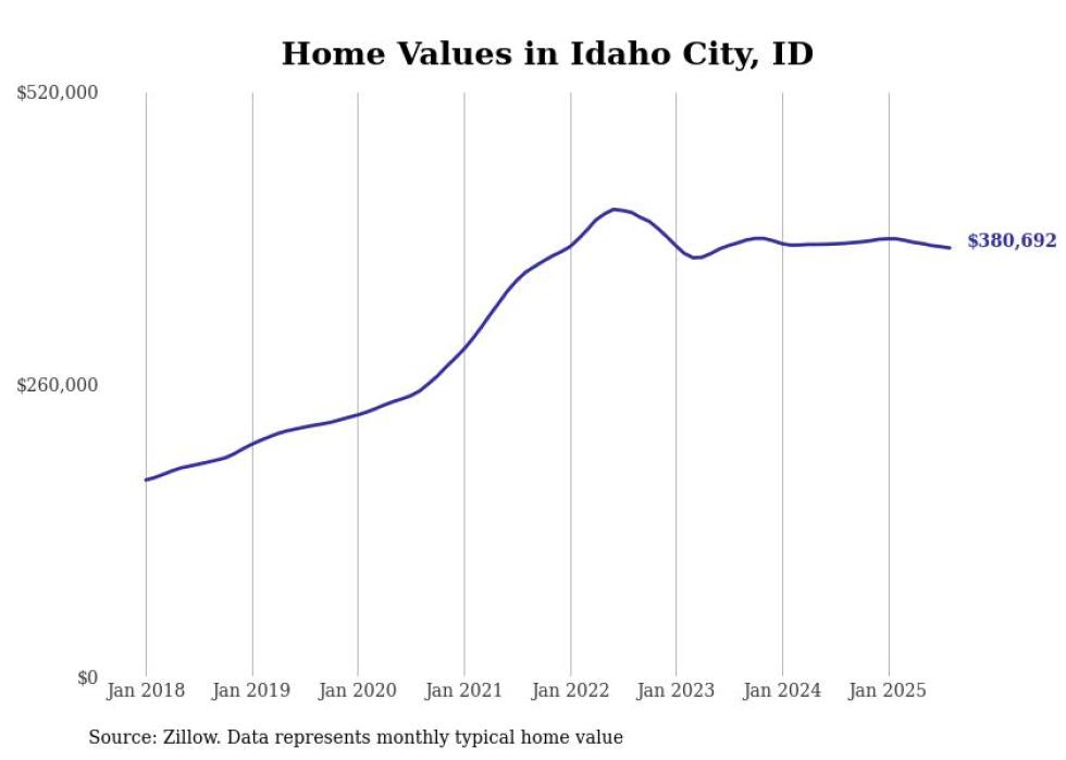 Stacker compiled a list of cities with the most expensive homes in the Boise metro area using data from Zillow. Charts show the monthly typical home value since January 2018. All 24 cities and towns with data available were included in the list.