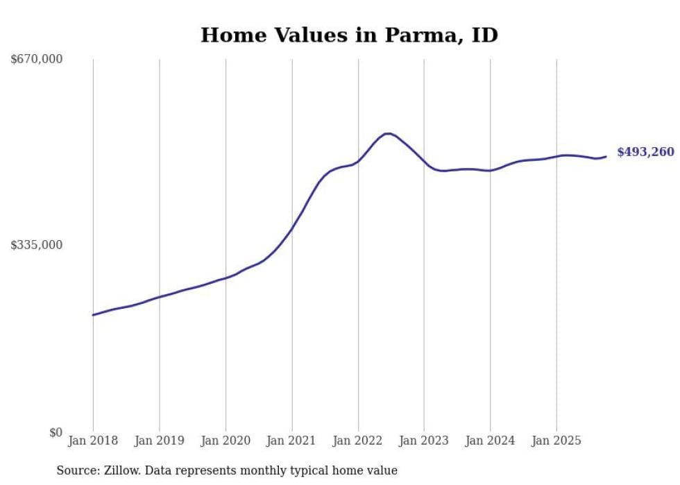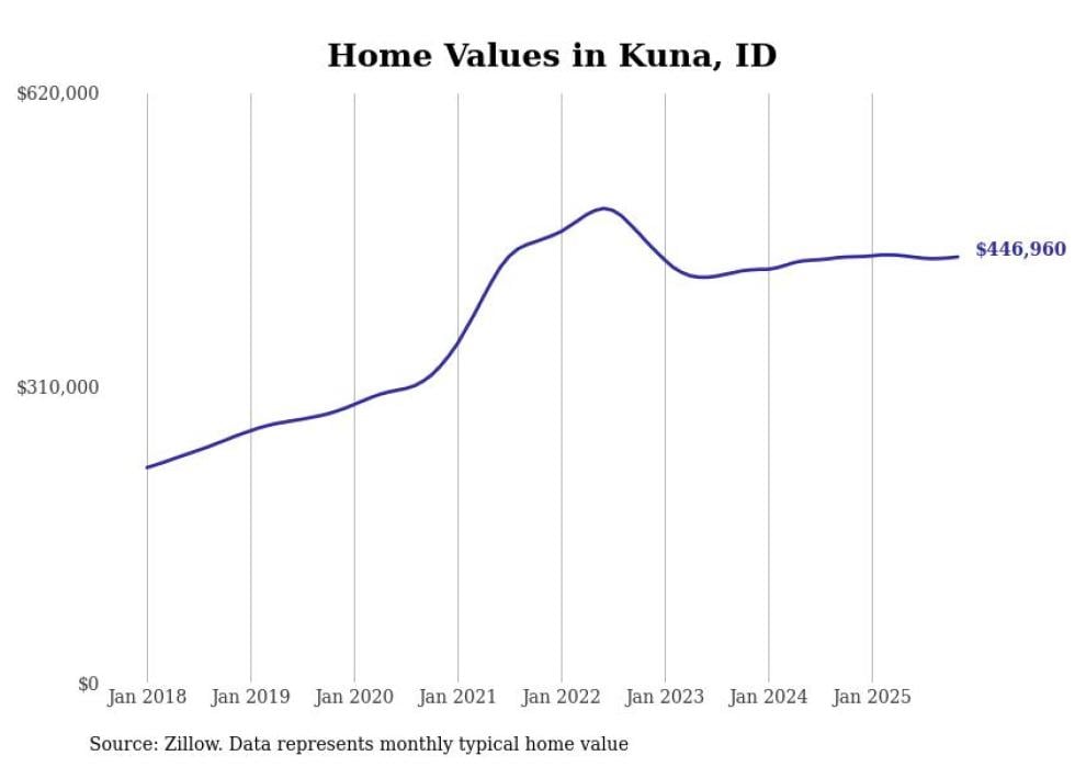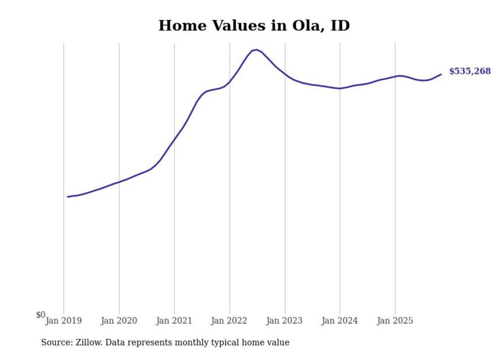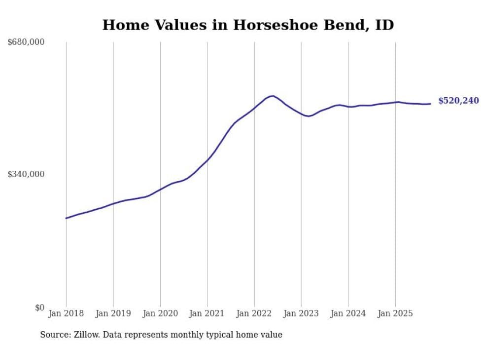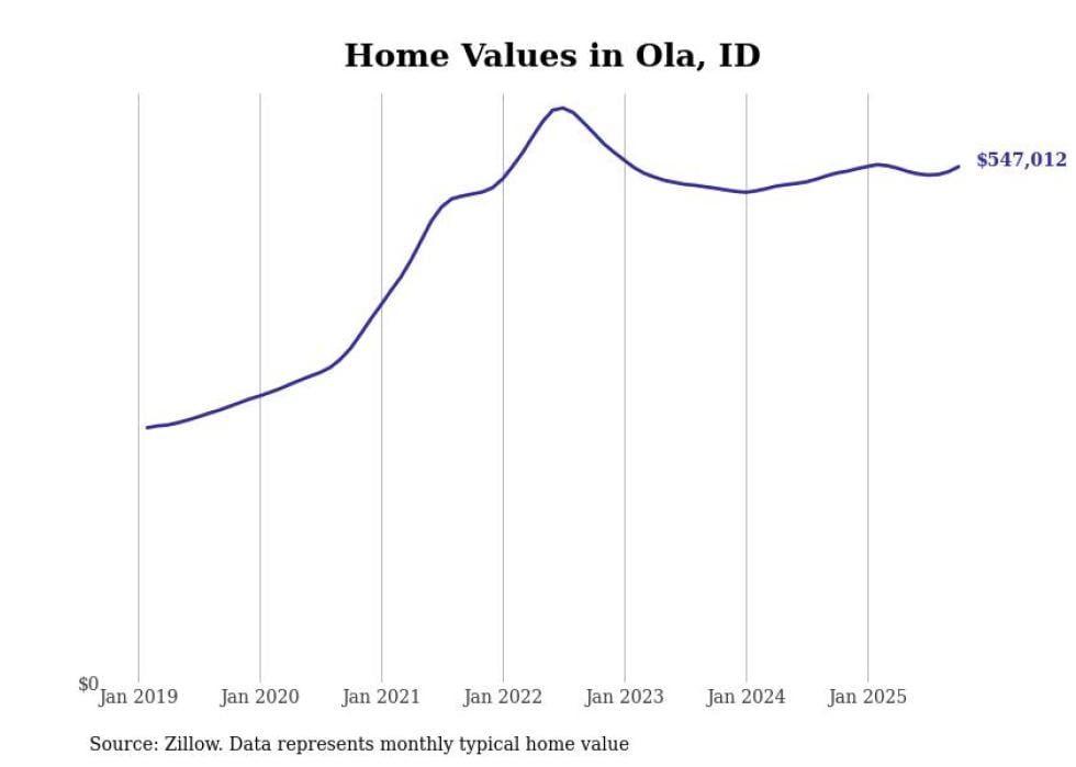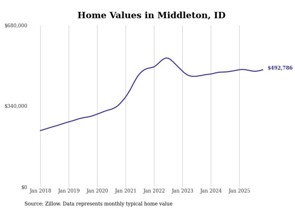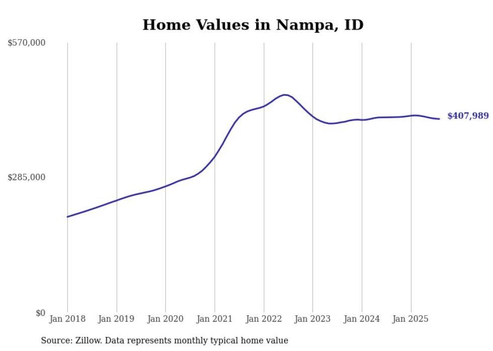 Stacker compiled a list of cities with the most expensive homes in the Boise metro area using data from Zillow. Charts show the monthly typical home value since January 2018. All 24 cities and towns with data available were included in the list.