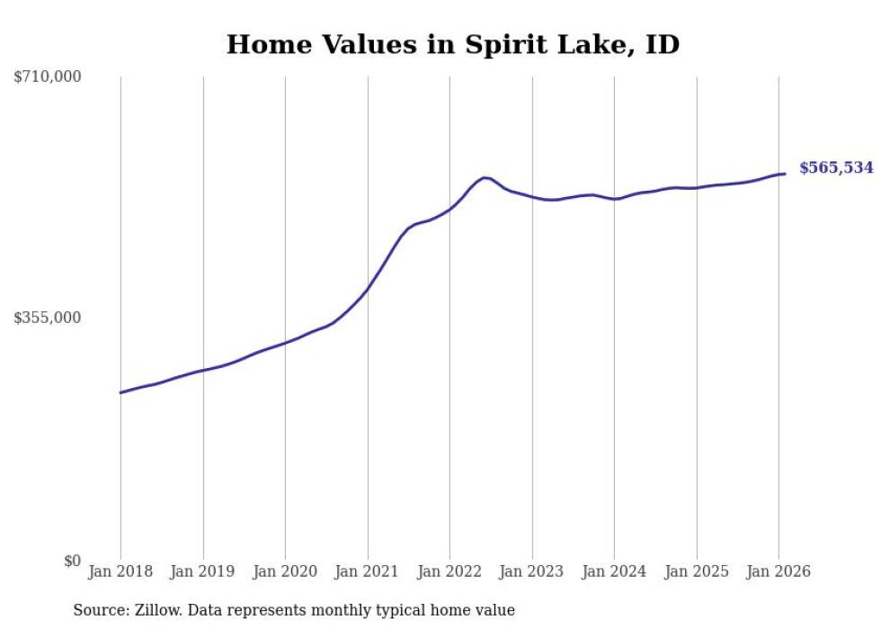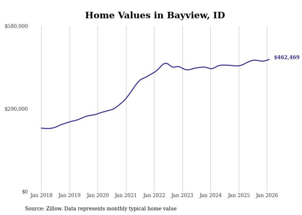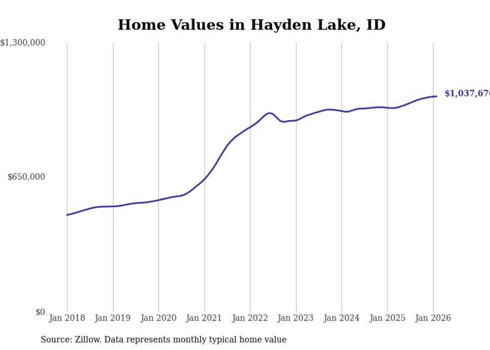 Stacker compiled a list of cities with the most expensive homes in the Coeur d'Alene, ID metro area using data from Zillow. Charts show the monthly typical home value since January 2018.