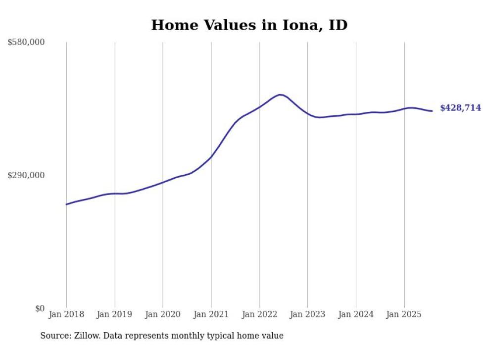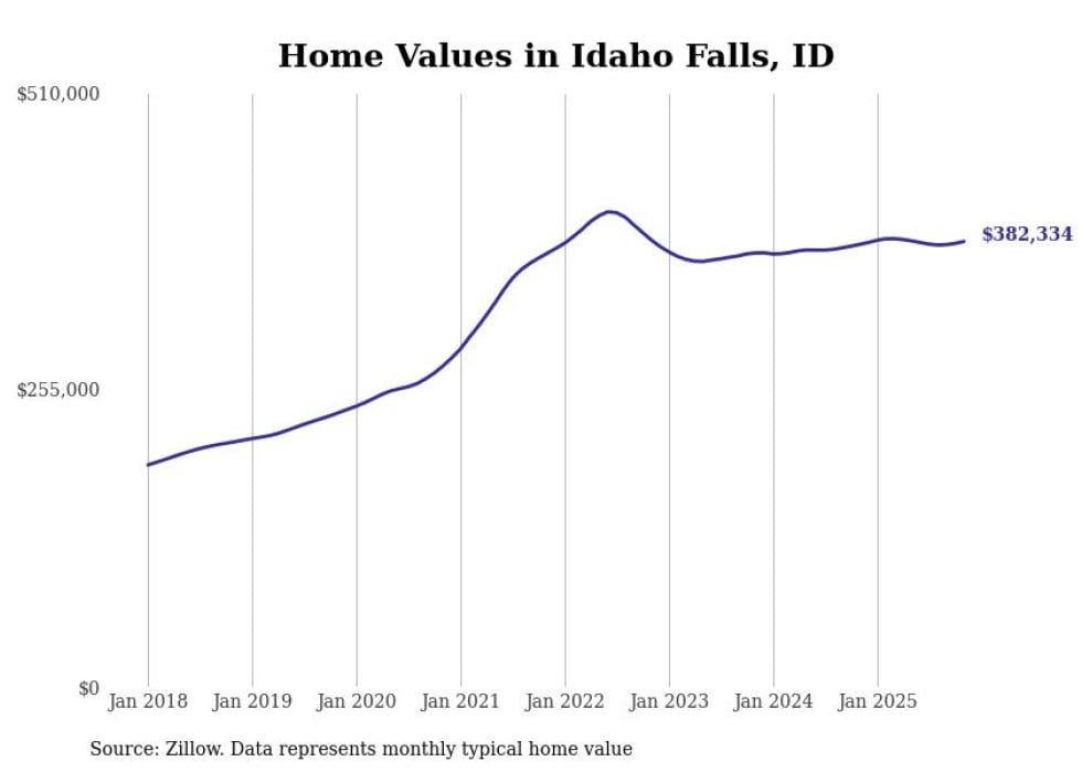 Stacker compiled a list of cities with the most expensive homes in the Idaho Falls metro area using data from Zillow. Charts show the monthly typical home value since January 2018. All 11 cities and towns with data available were included in the list.